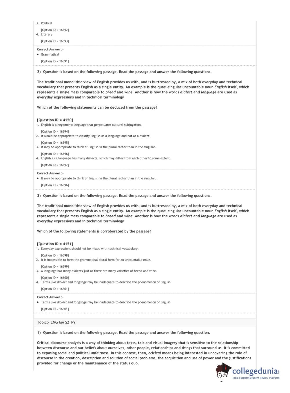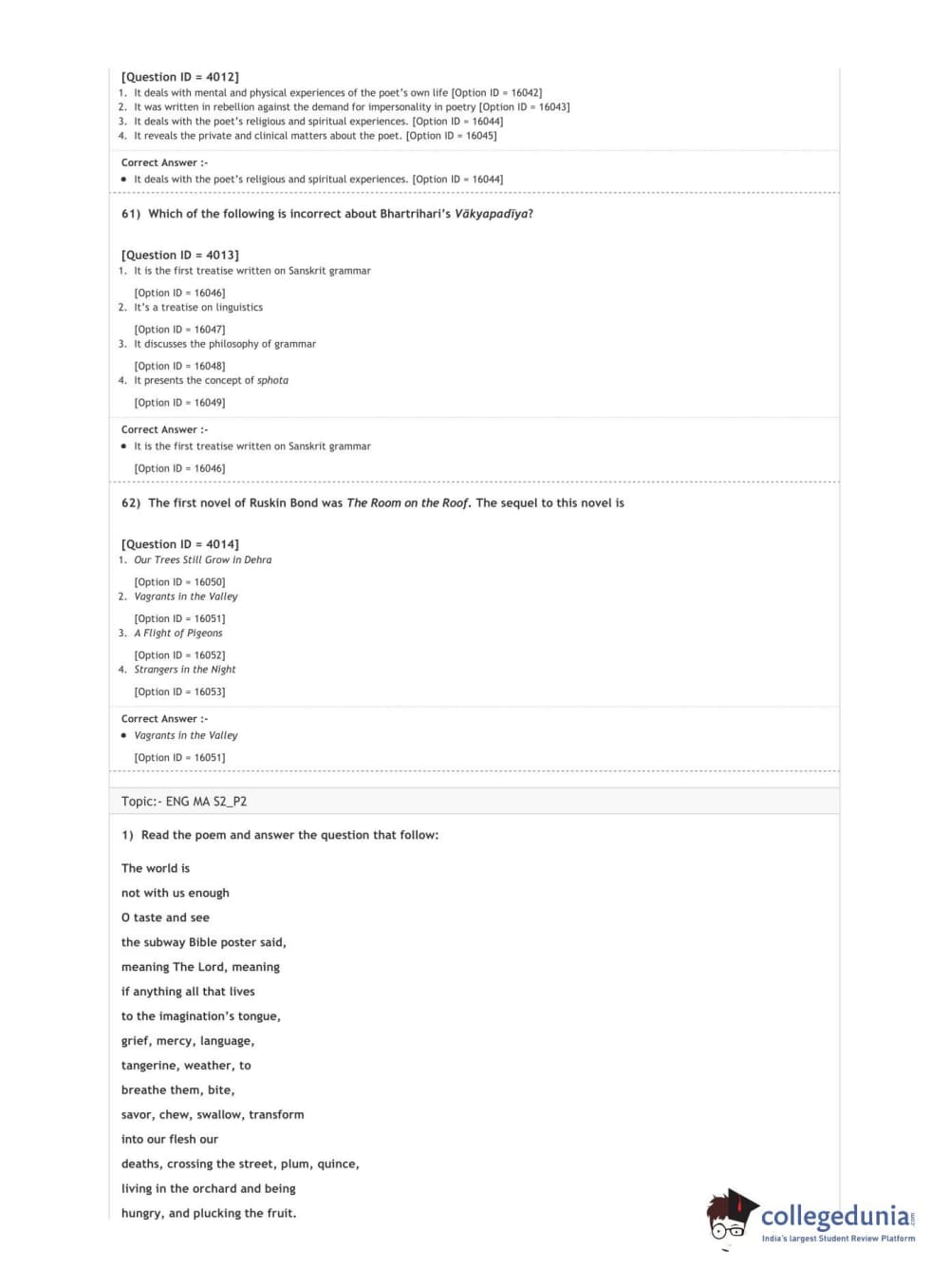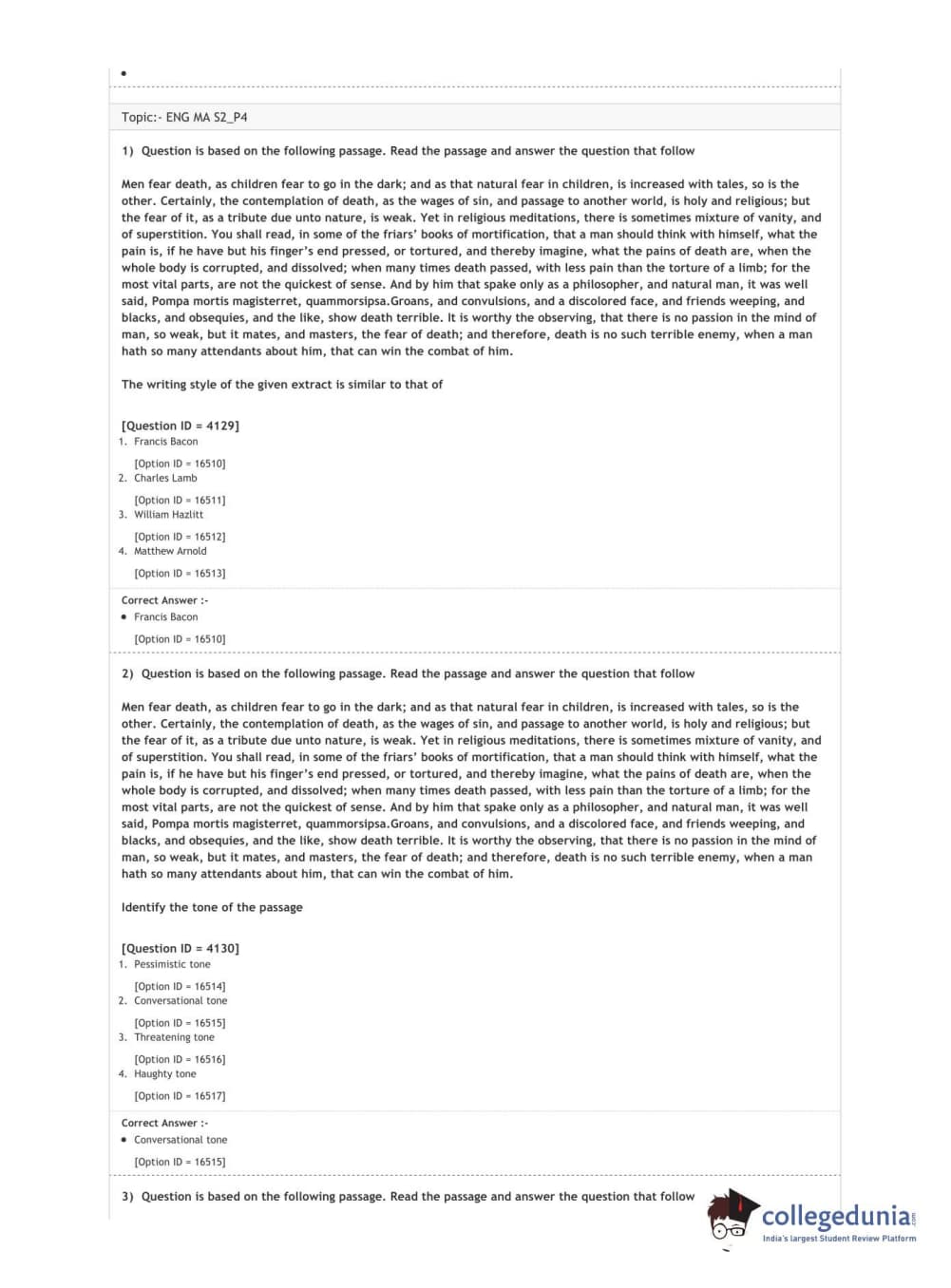 DUET 2020 M.A. English Question paper with answer key pdf conducted on June 9, 2020 in Shift 1 is available for download. The exam was successfully organized by National Testing Agency (NTA). The question paper comprised a total of 100 questions.