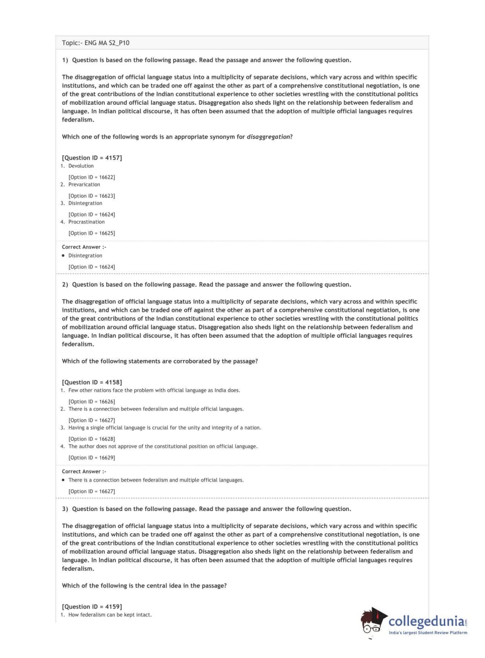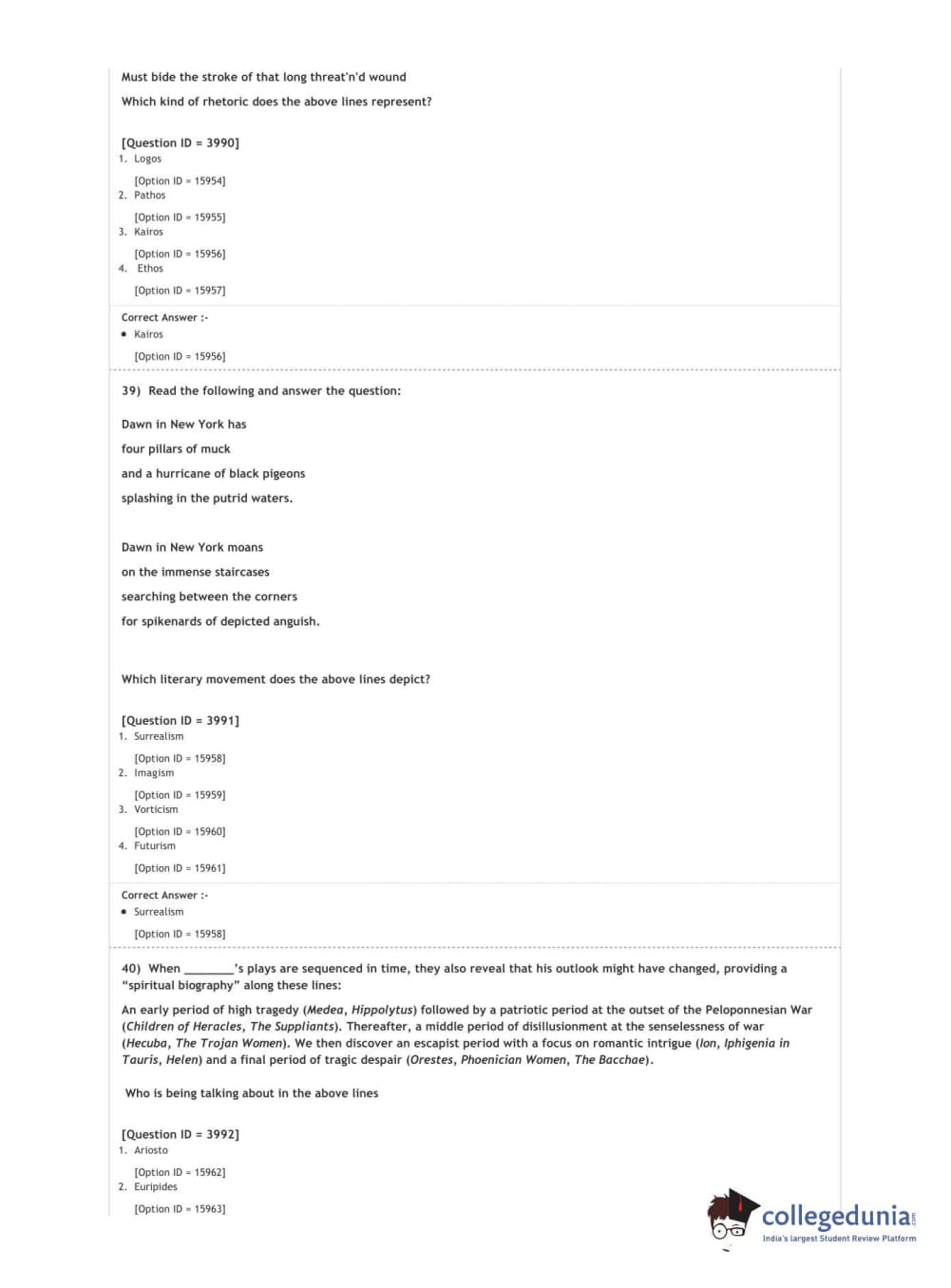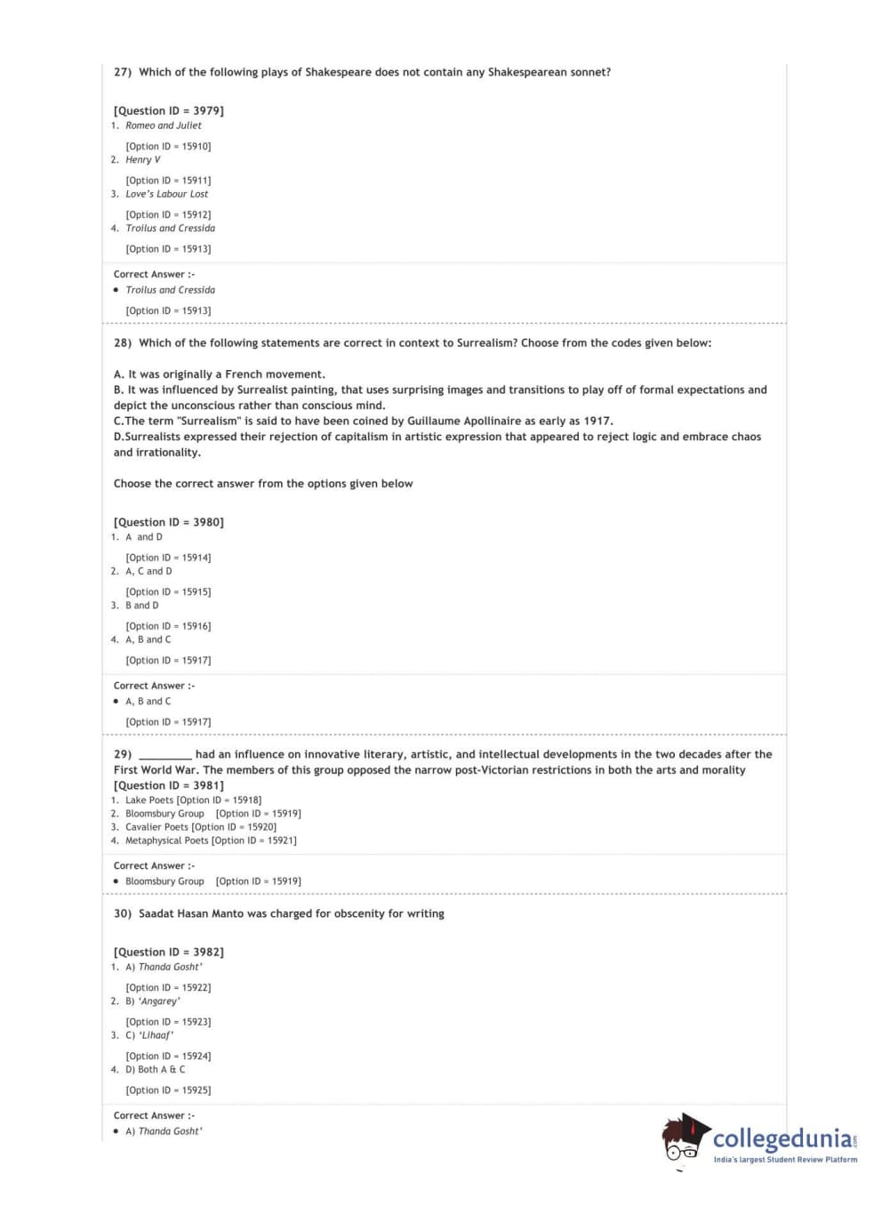 DUET 2020 M.A. English Question paper with answer key pdf conducted on June 9, 2020 in Shift 1 is available for download. The exam was successfully organized by National Testing Agency (NTA). The question paper comprised a total of 100 questions.