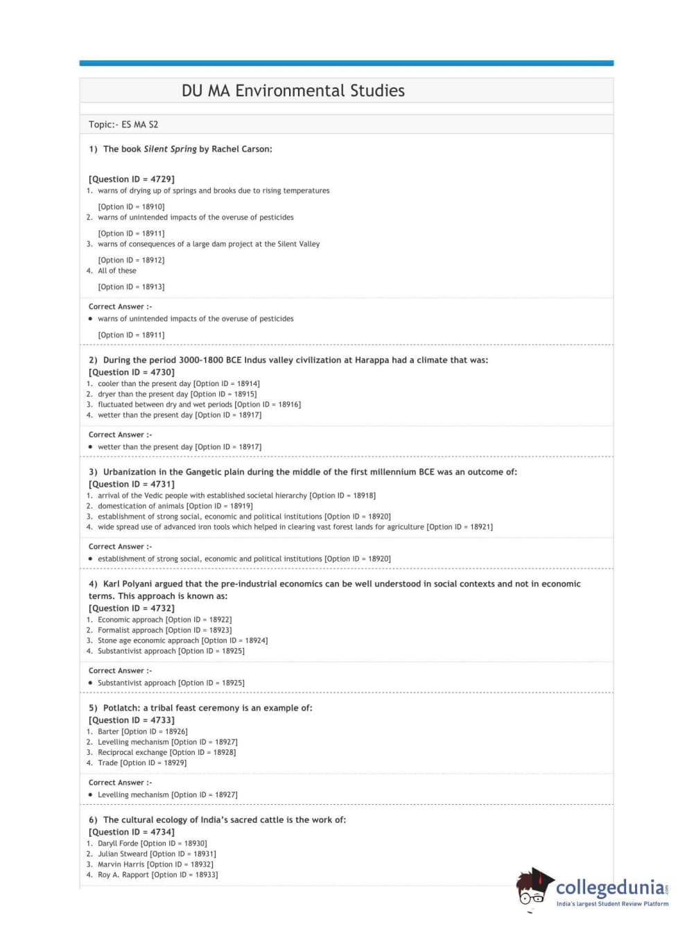 | DUET 2020 M.A. Environmental Studies | Download PDF |