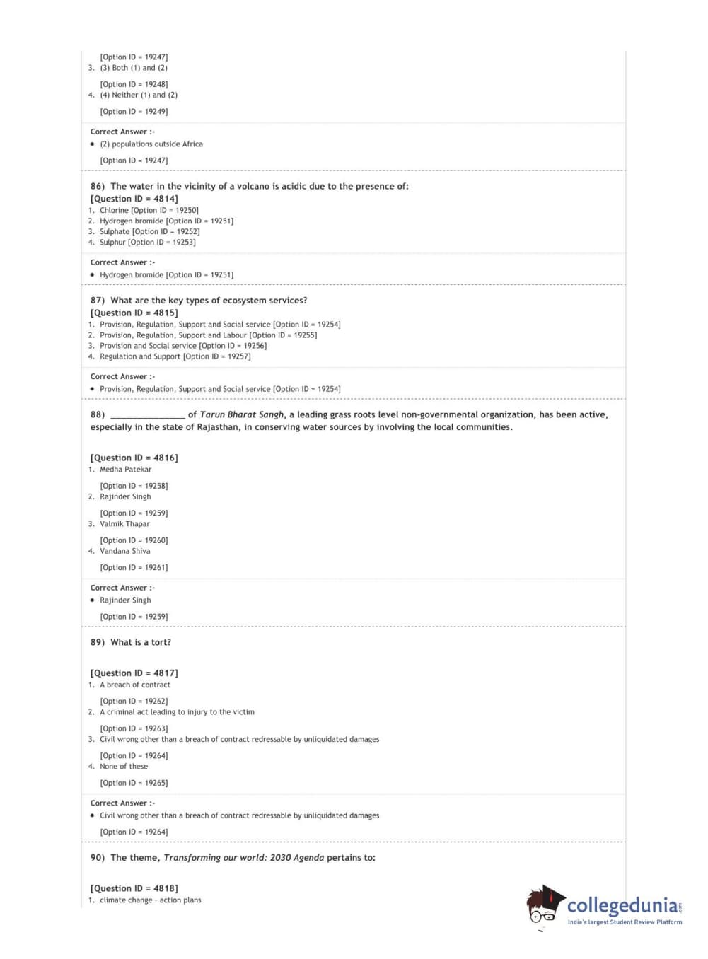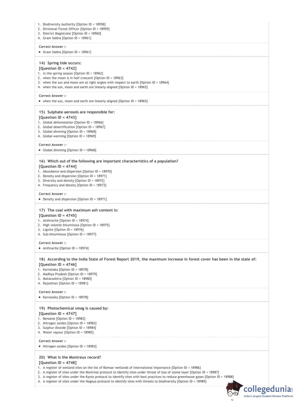 DUET 2020 M.A. Environmental Studies Question paper with answer key pdf conducted on June 9, 2020 in Shift 1 is available for download. The exam was successfully organized by National Testing Agency (NTA). The question paper comprised a total of 100 questions.