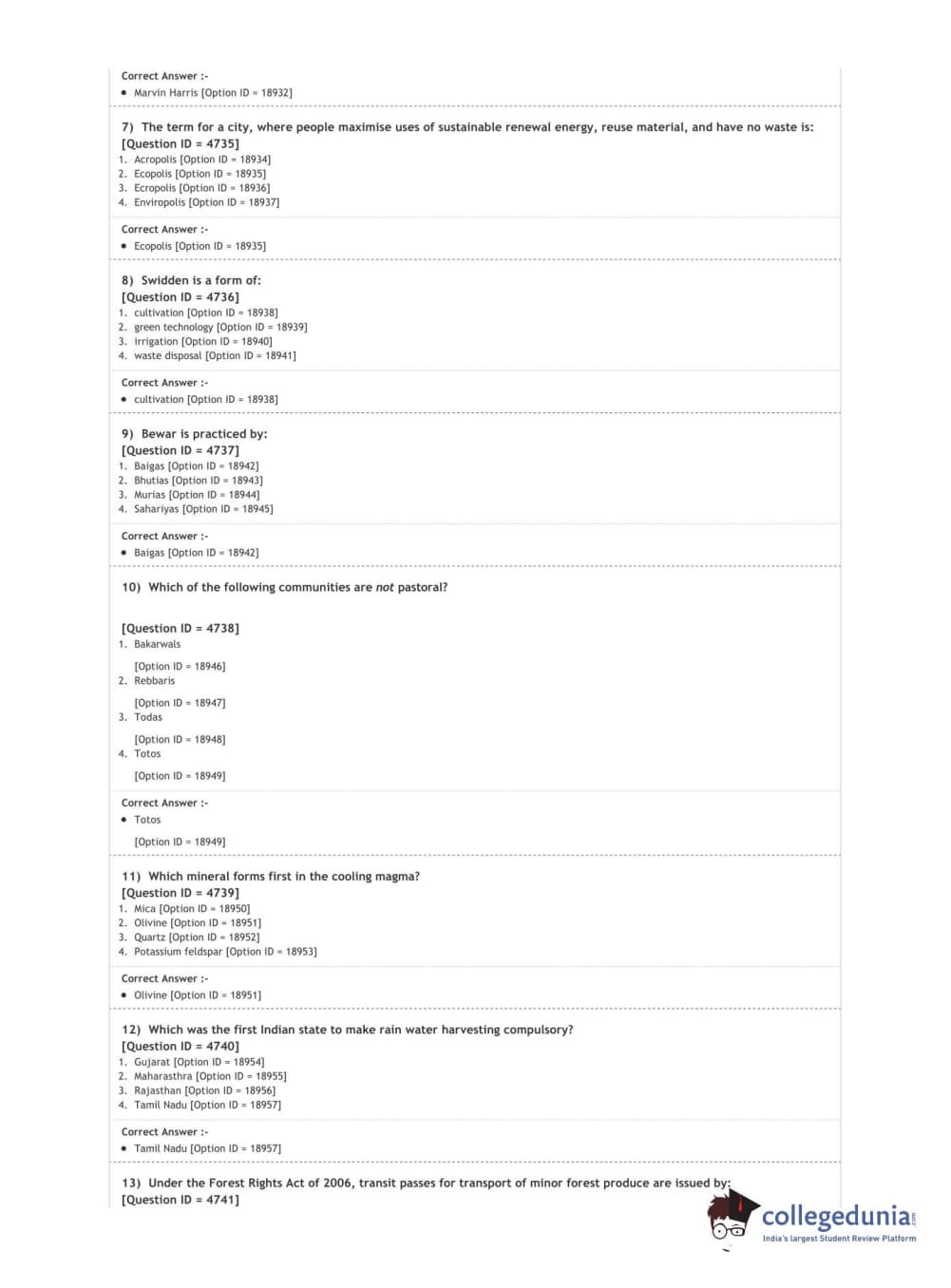 DUET 2020 M.A. Environmental Studies Question Paper with Answer Key PDF Shift 1