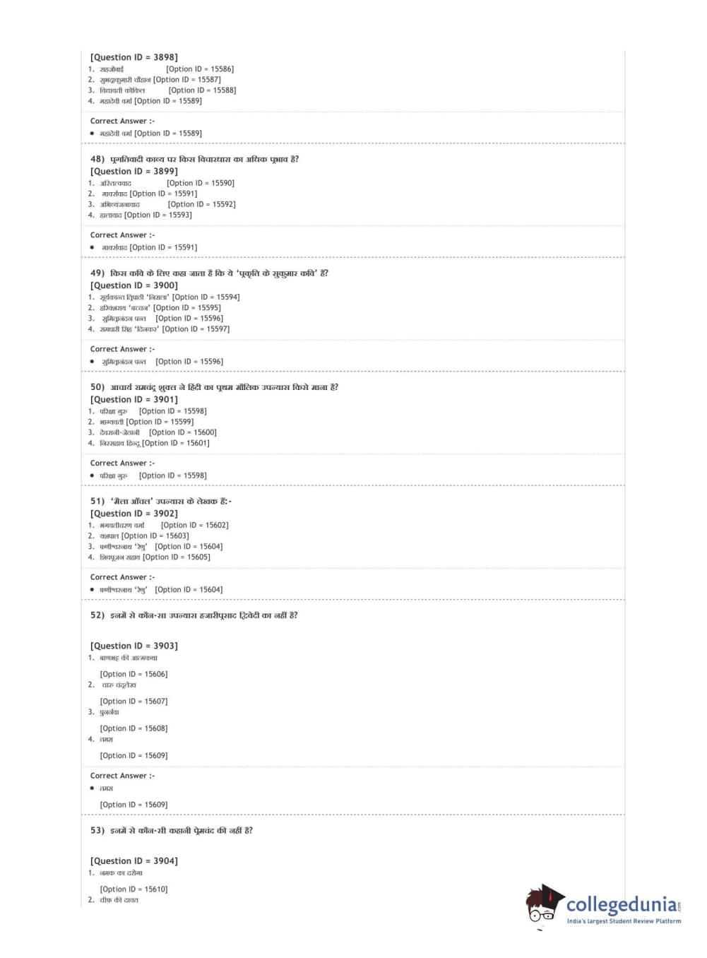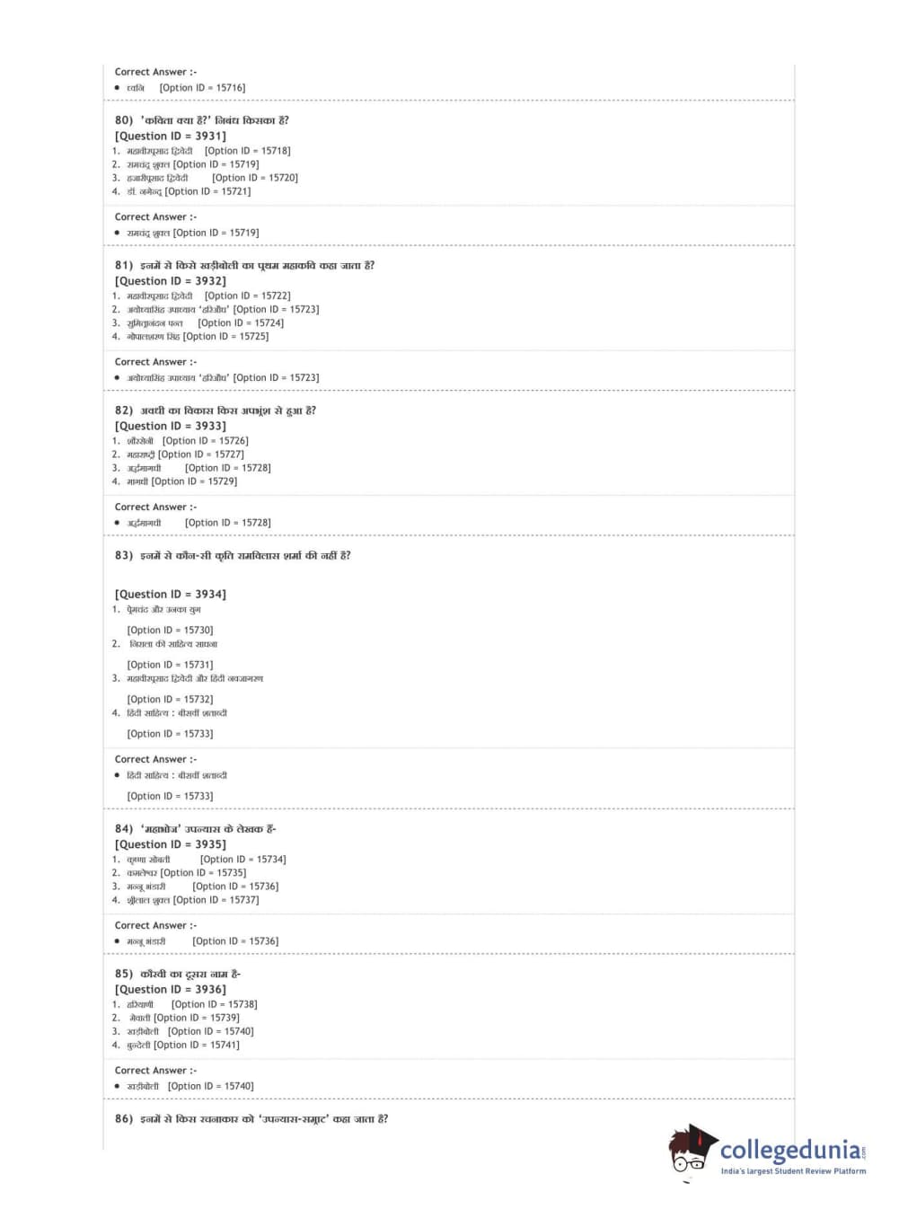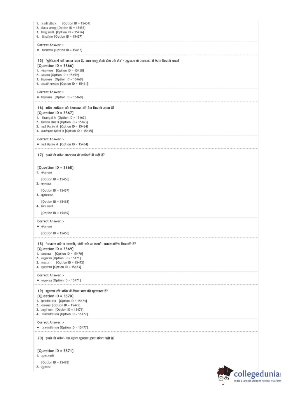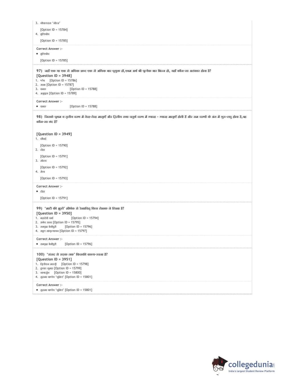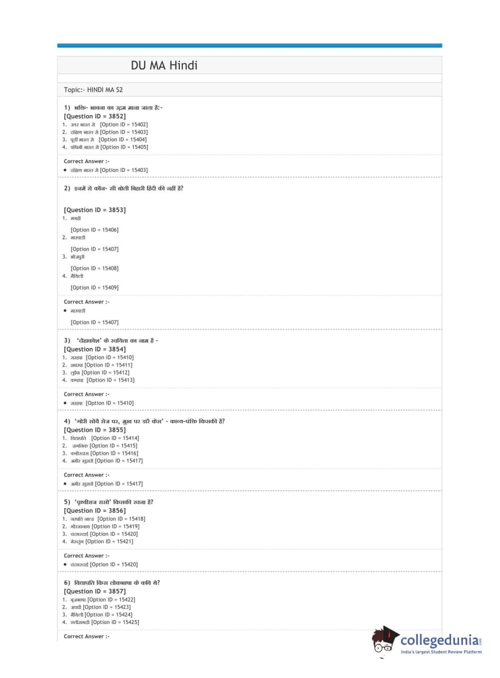 DUET 2020 M.A. Hindi Question Paper with Answer Key PDF Shift 3