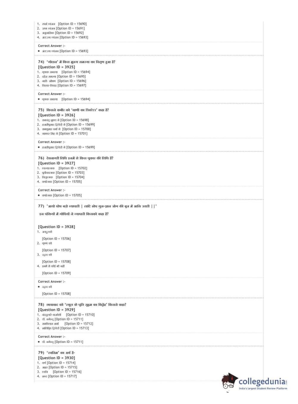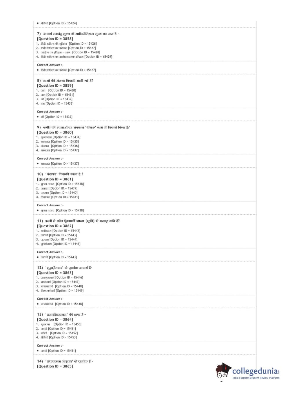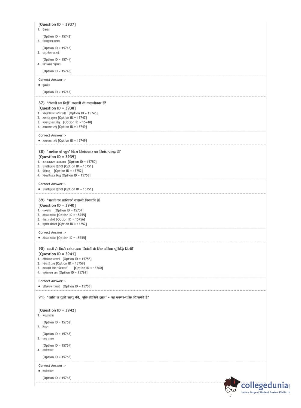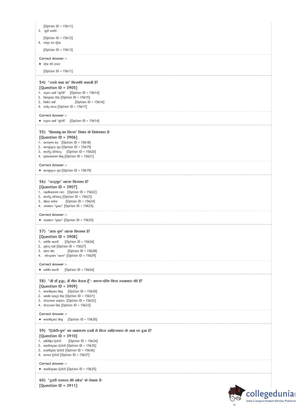 DUET 2020 M.A. Hindi Question Paper with Answer Key PDF Shift 3