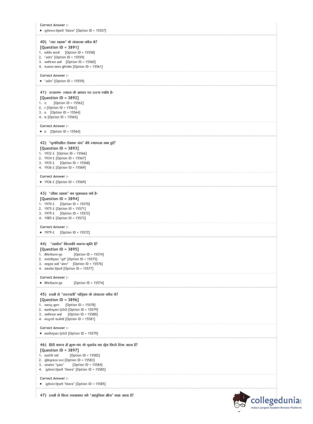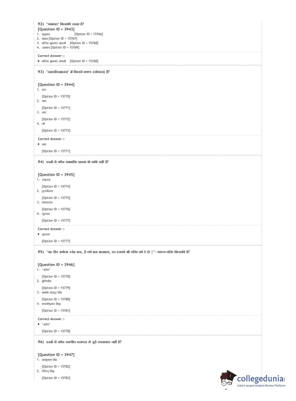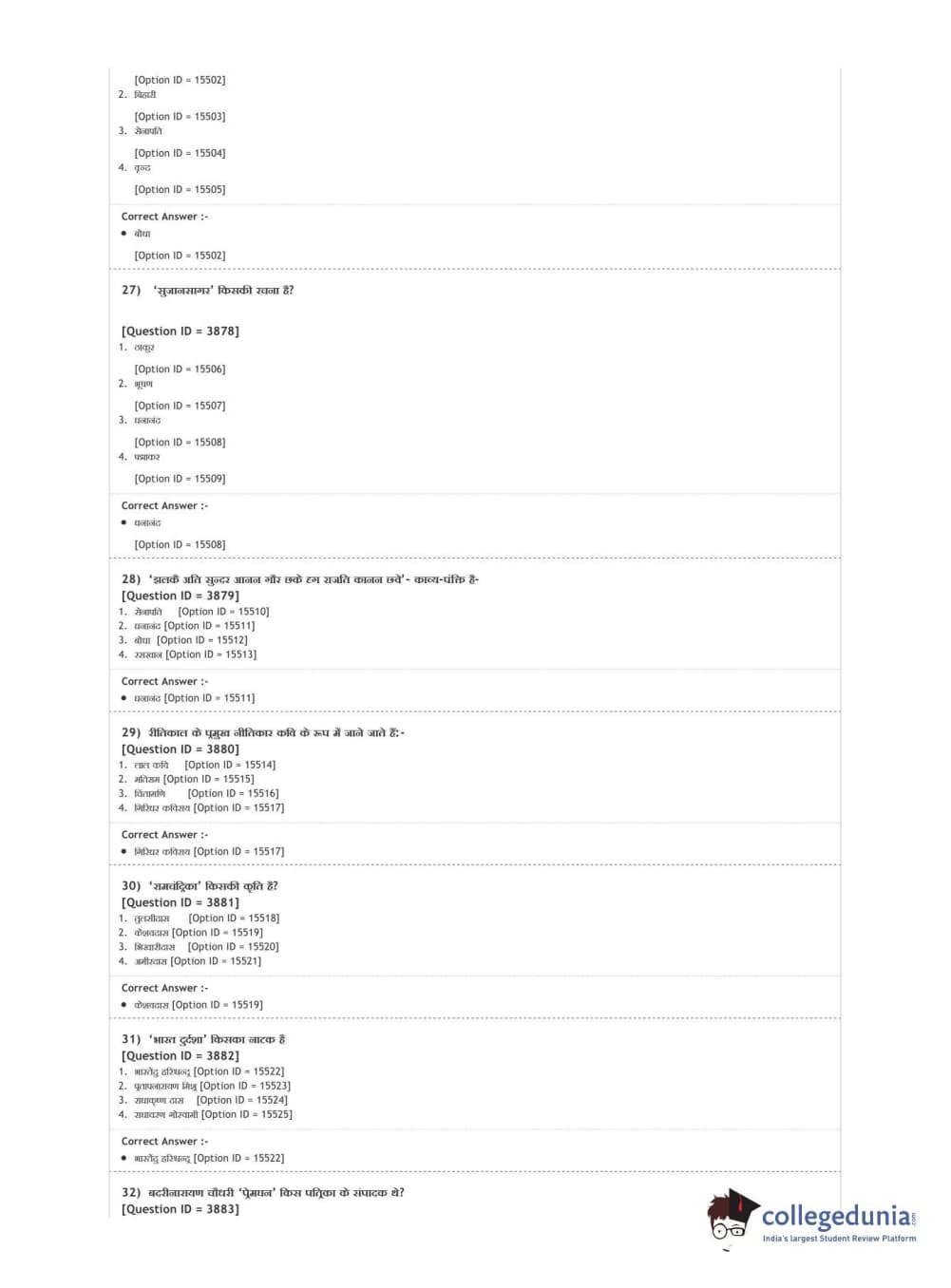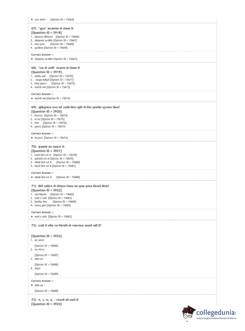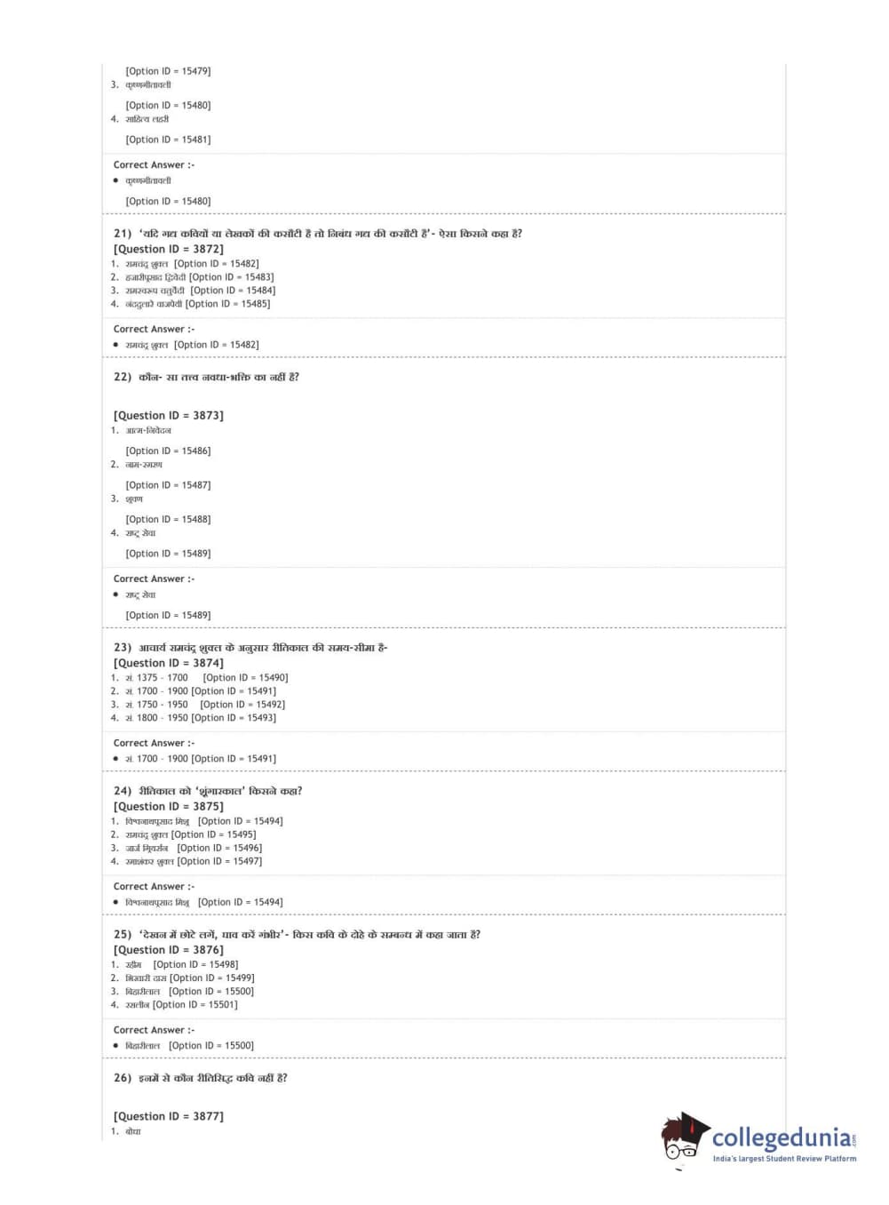 DUET 2020 M.A. Hindi Question Paper with Answer Key PDF Shift 3