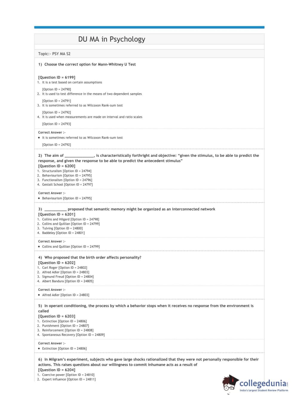 | DUET 2020 M.A. in Psychology | Download PDF |