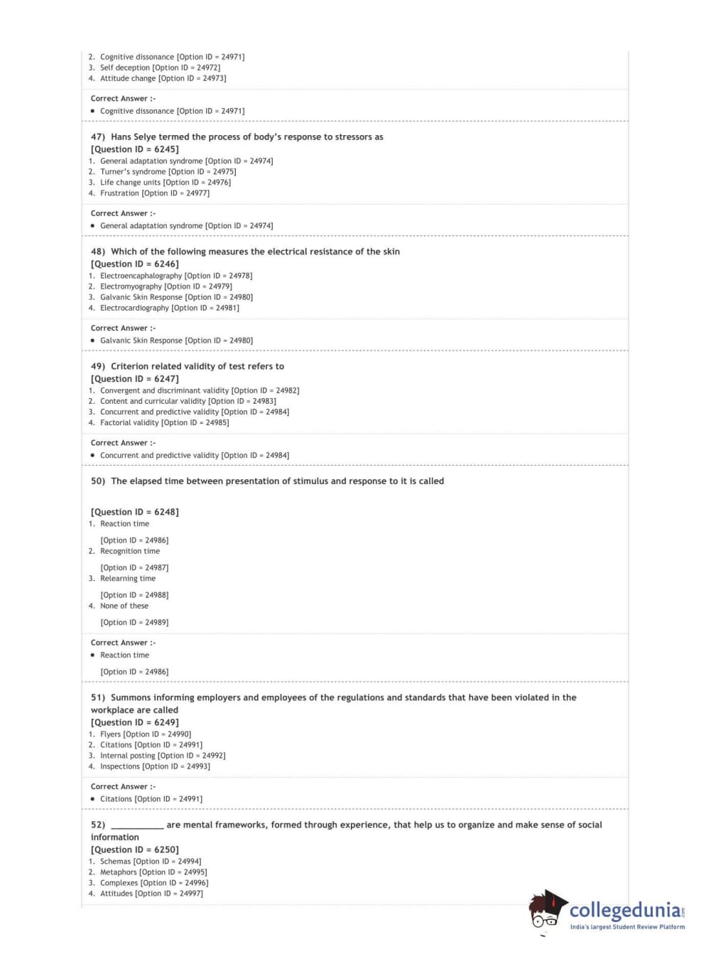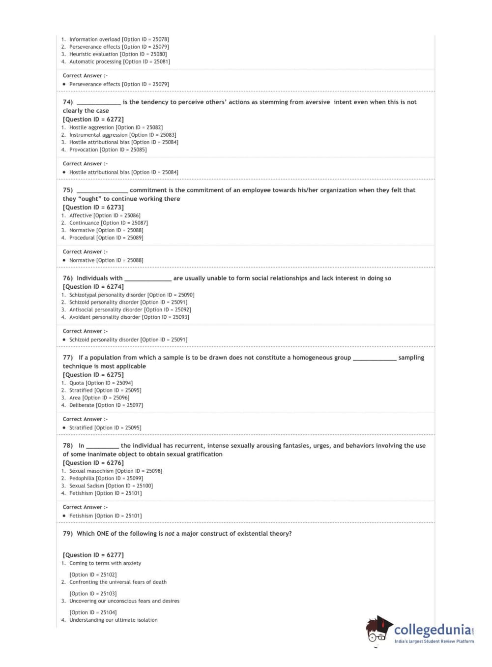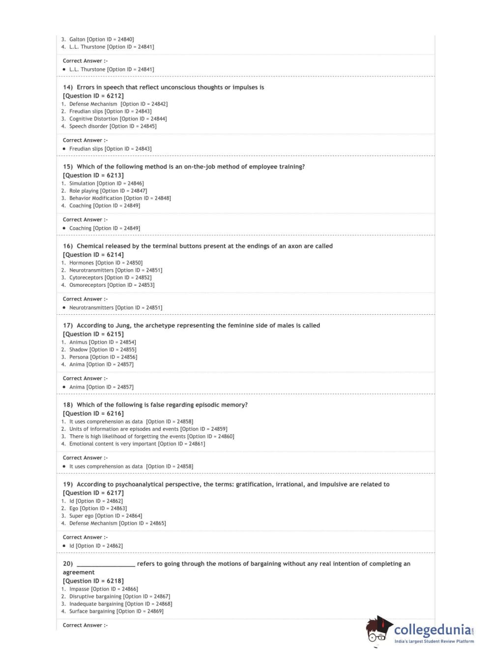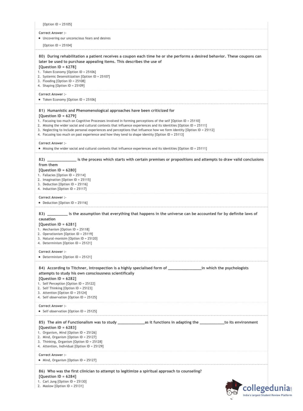 DUET 2020 M.A. in Psychology Question Paper with Answer Key PDF Shift 3