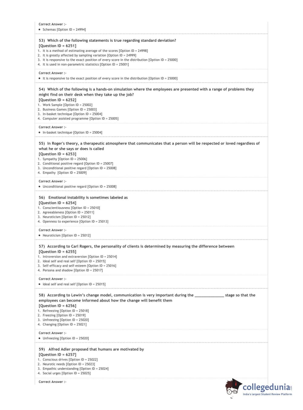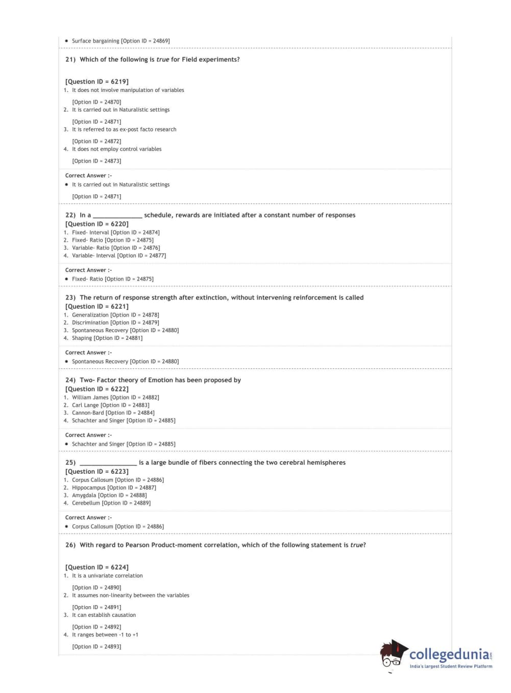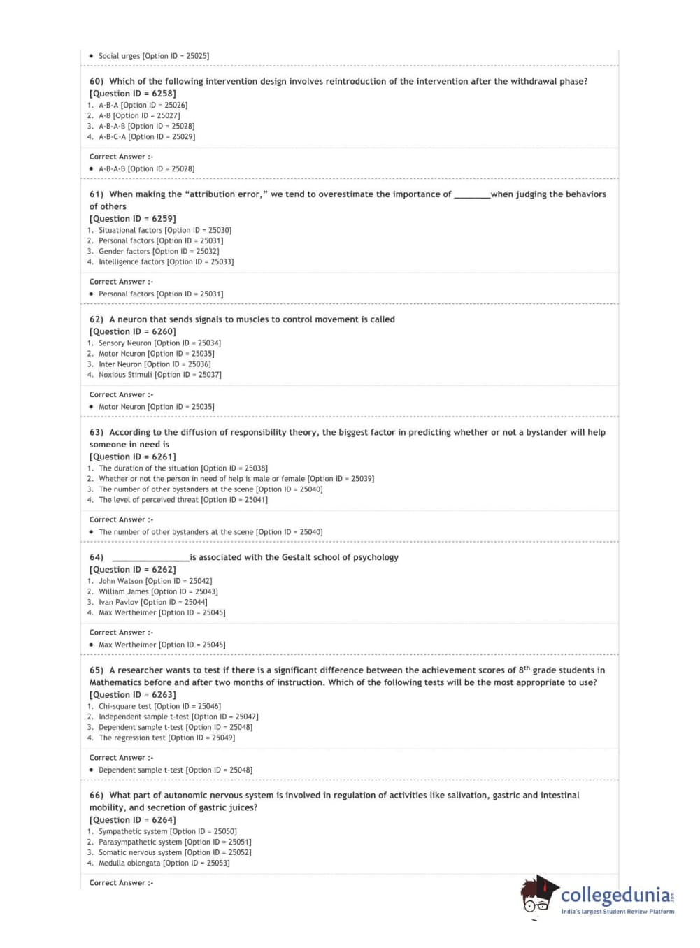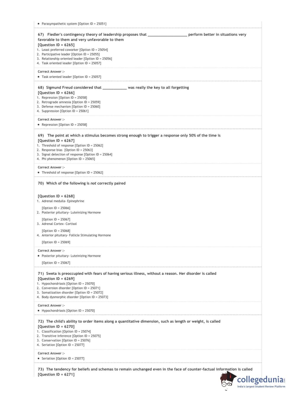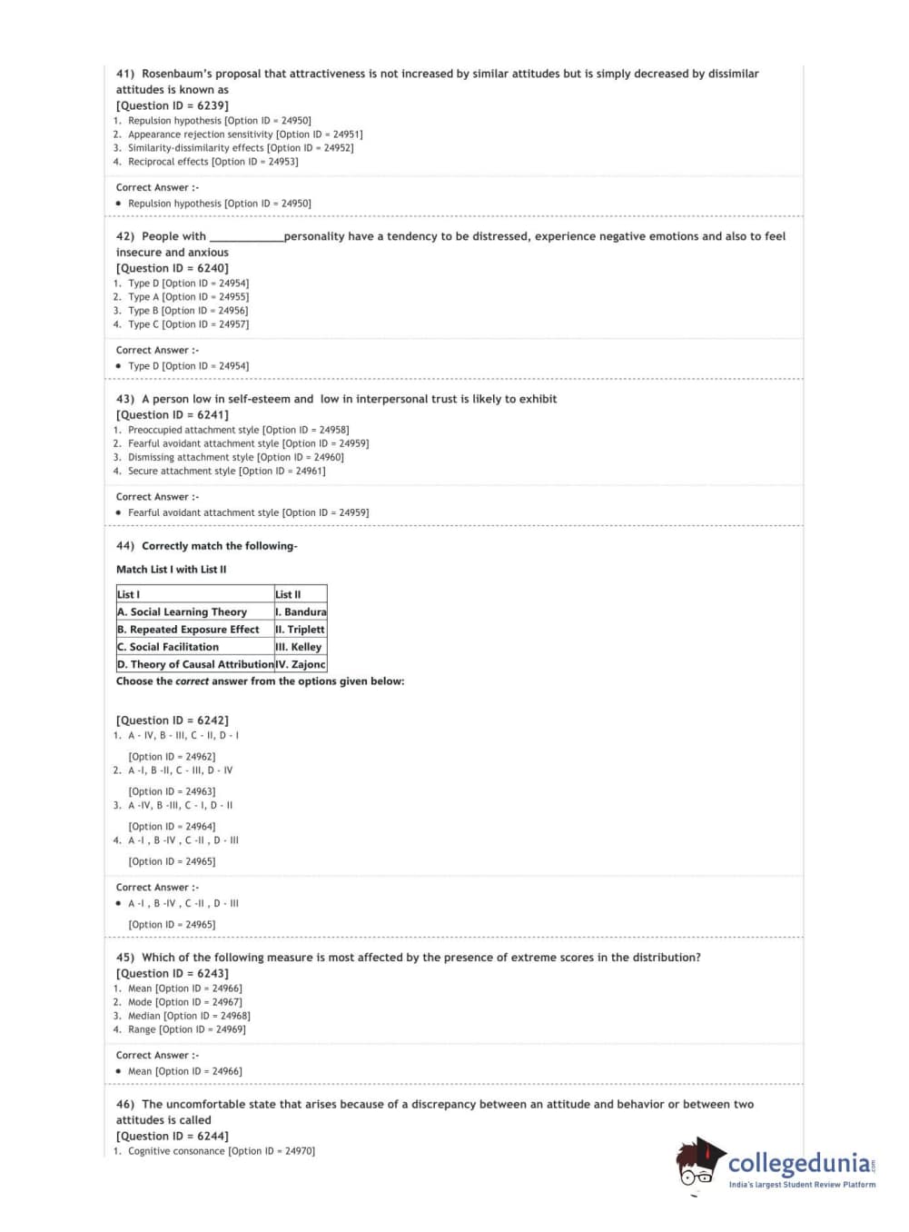 DUET 2020 M.A. in Psychology Question Paper with Answer Key PDF Shift 3
