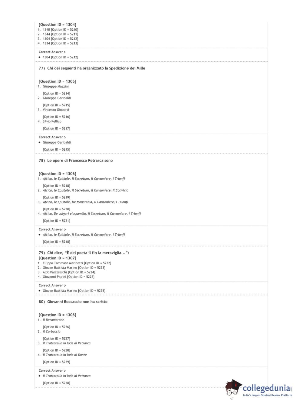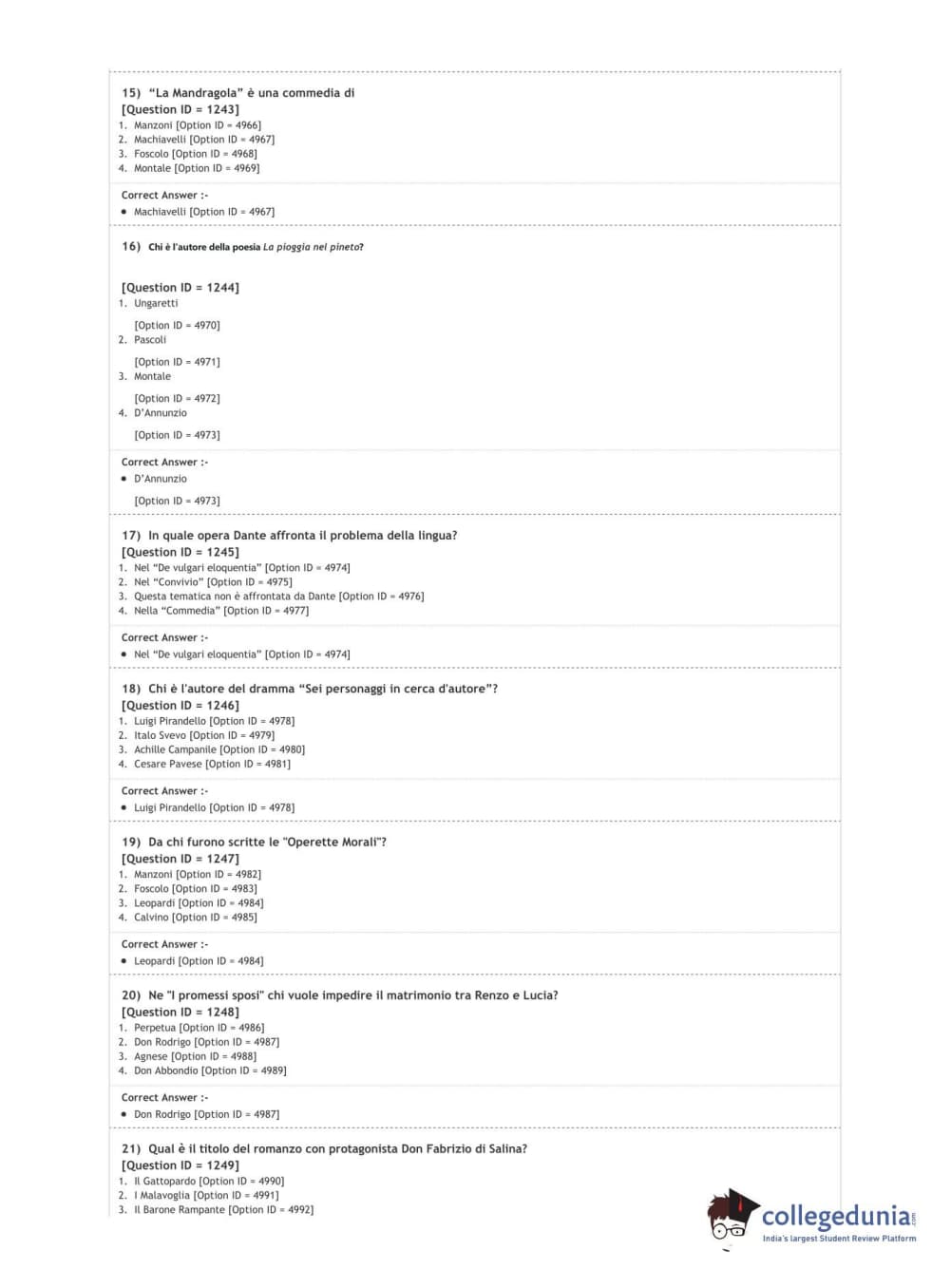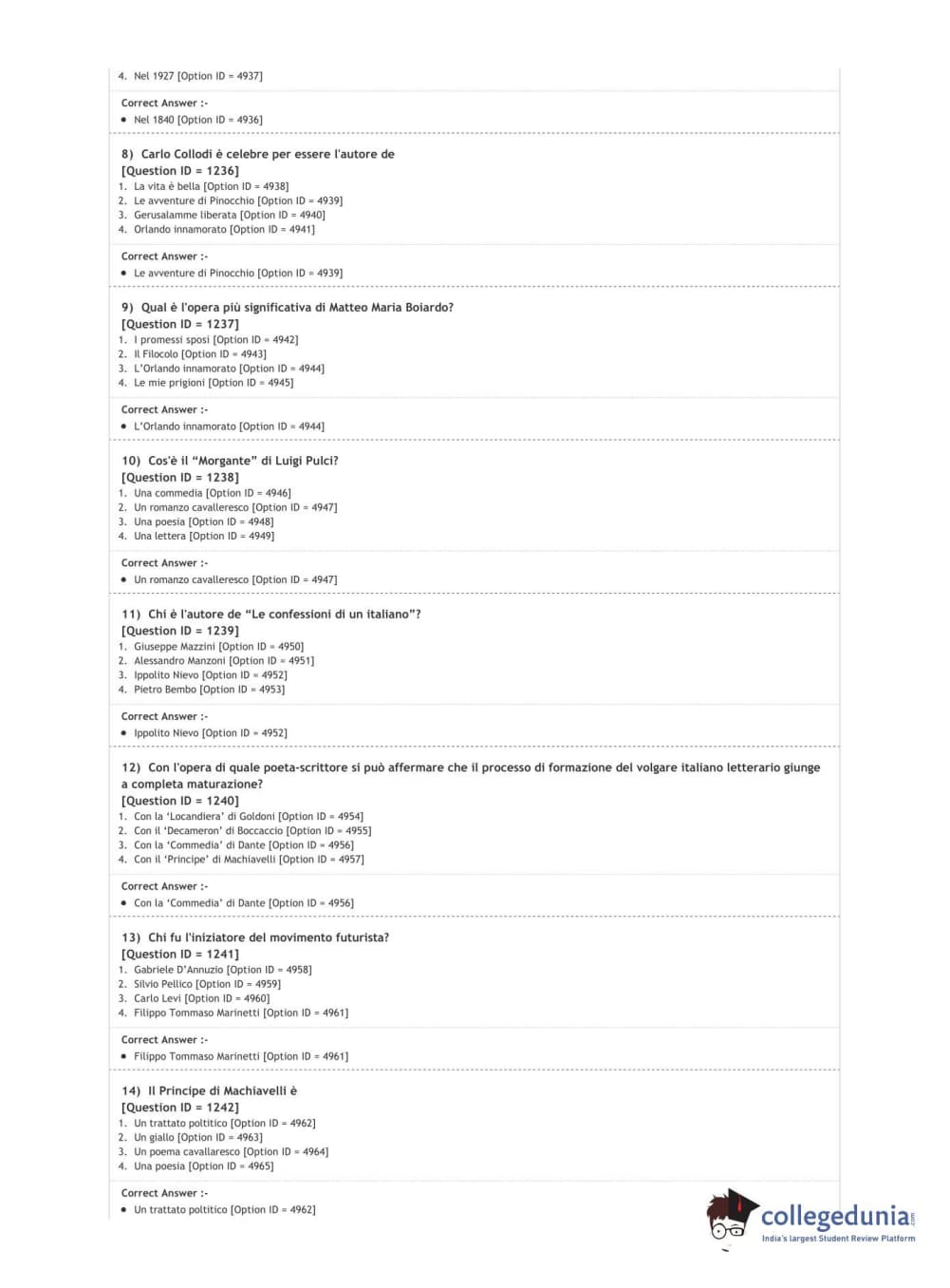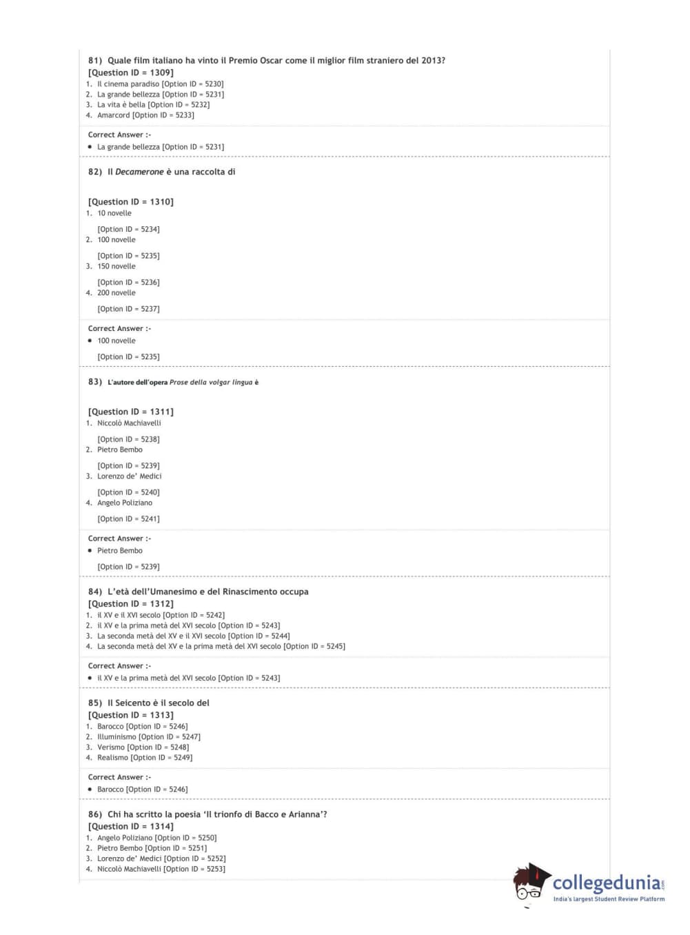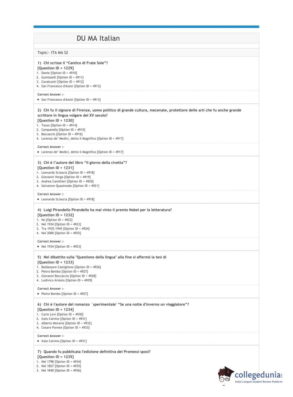 DUET 2020 M.A. Italian Question Paper with Answer Key PDF Shift 2
