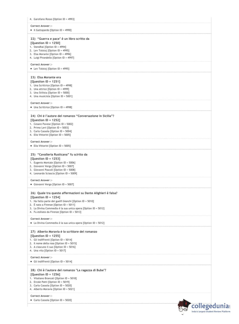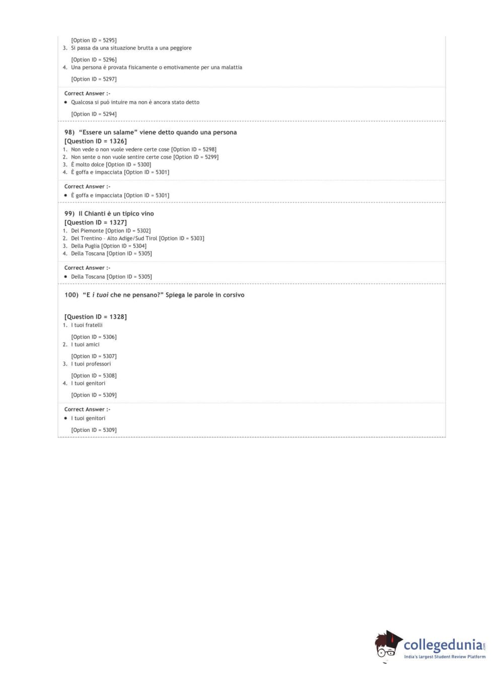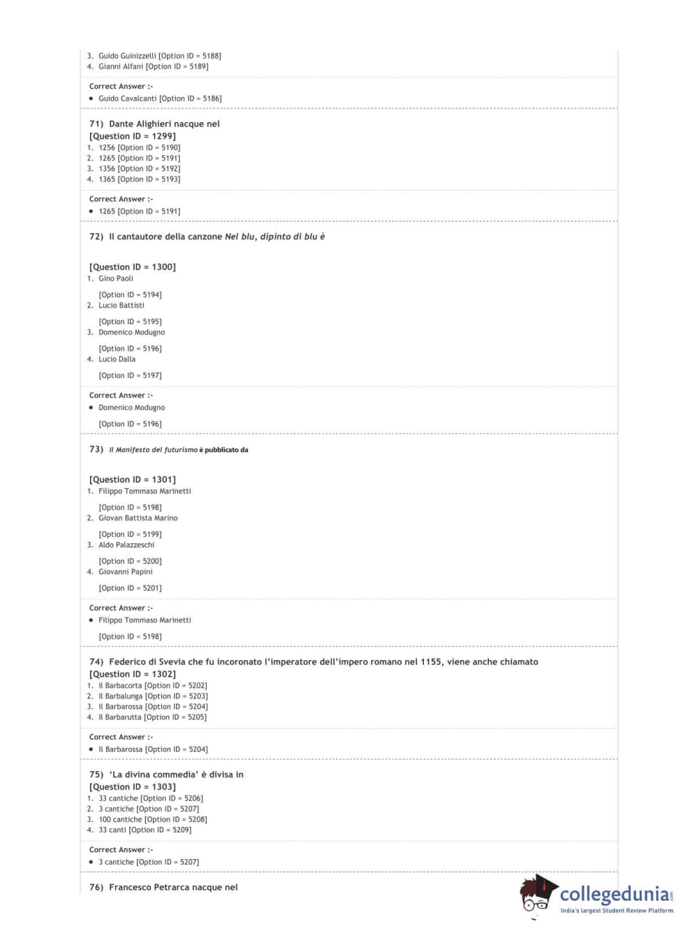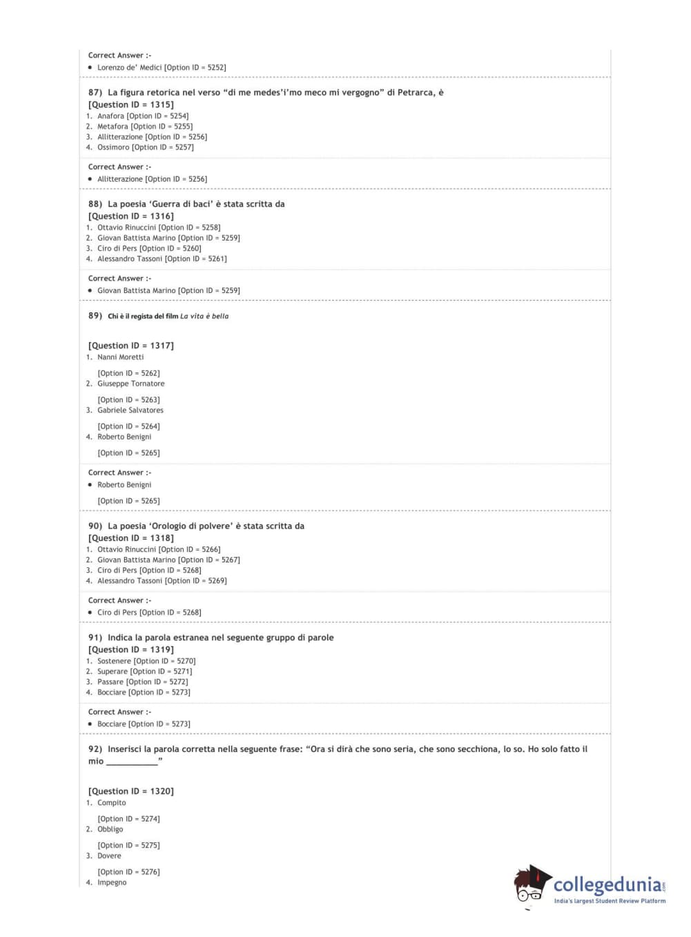 DUET 2020 M.A. Italian Question Paper with Answer Key PDF Shift 2
