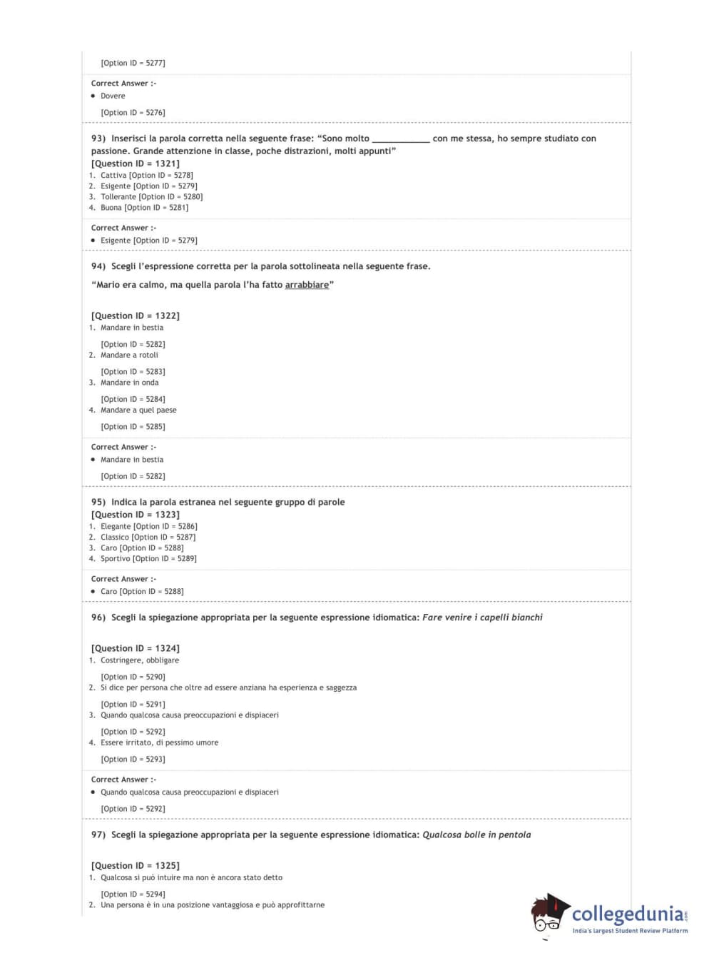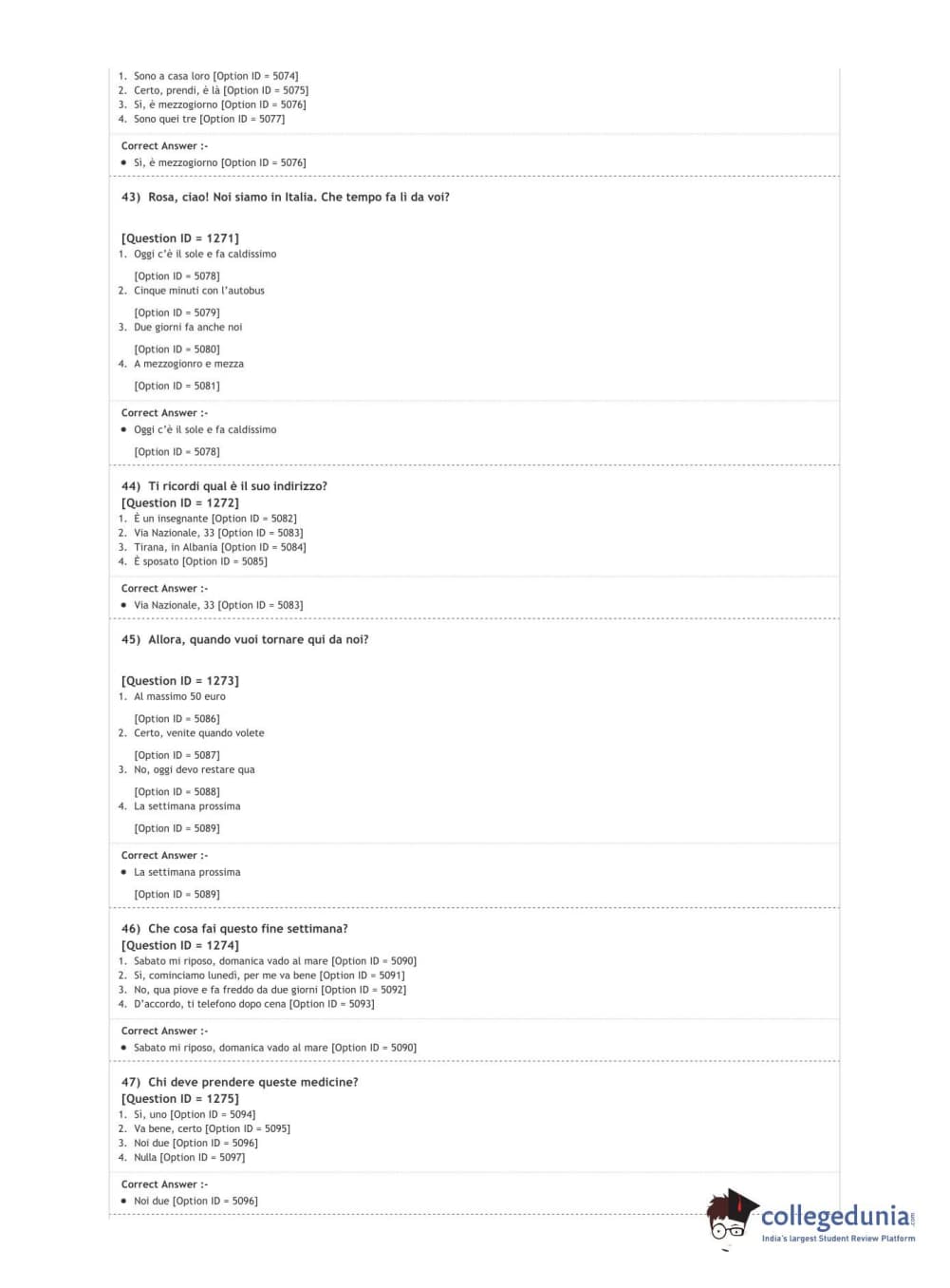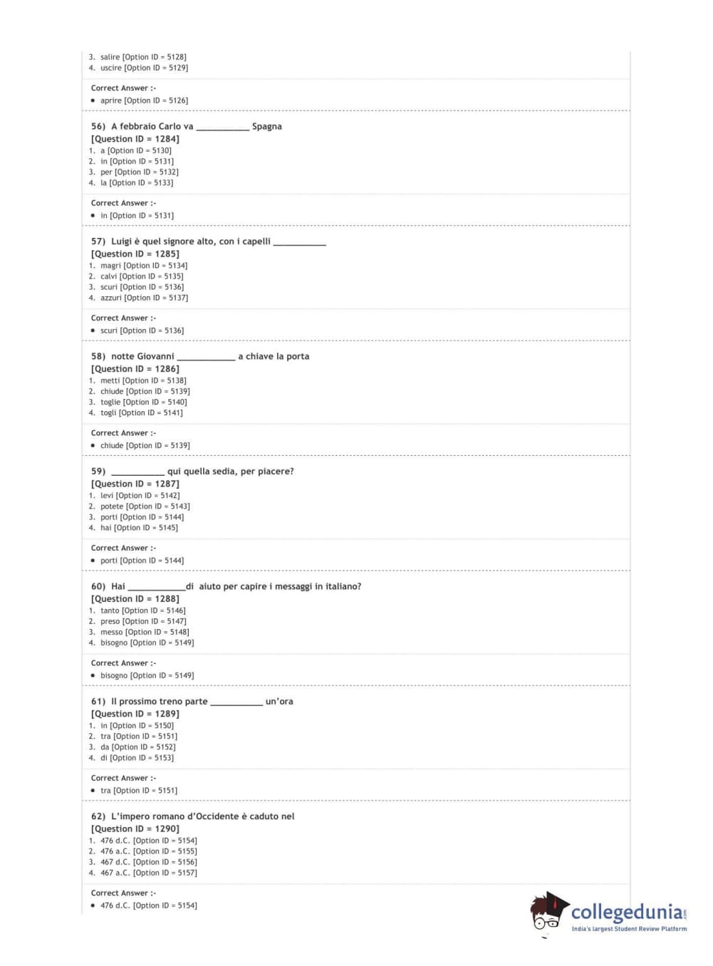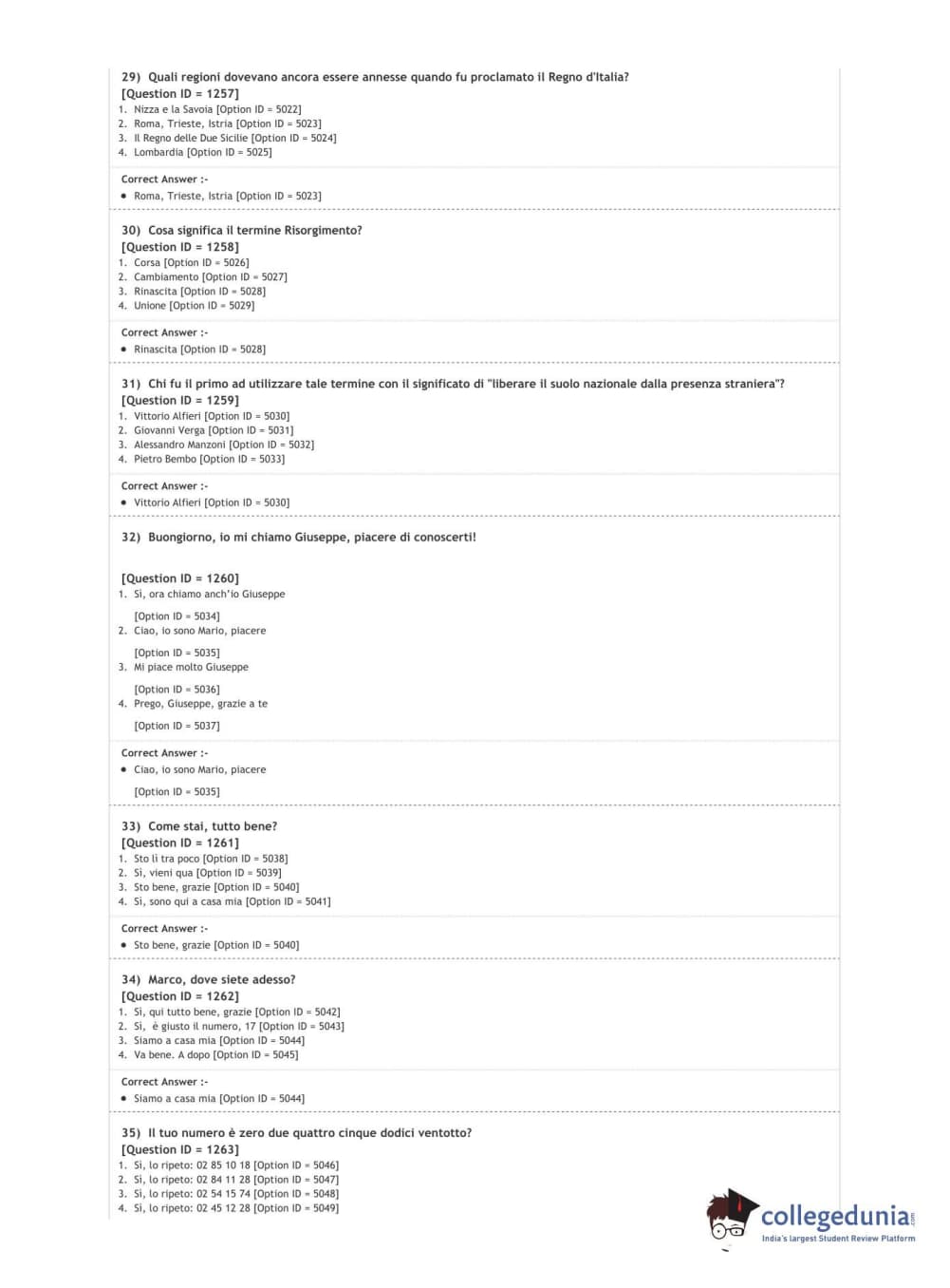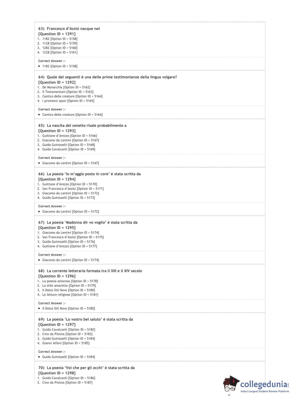 DUET 2020 M.A. Italian Question Paper with Answer Key PDF Shift 2