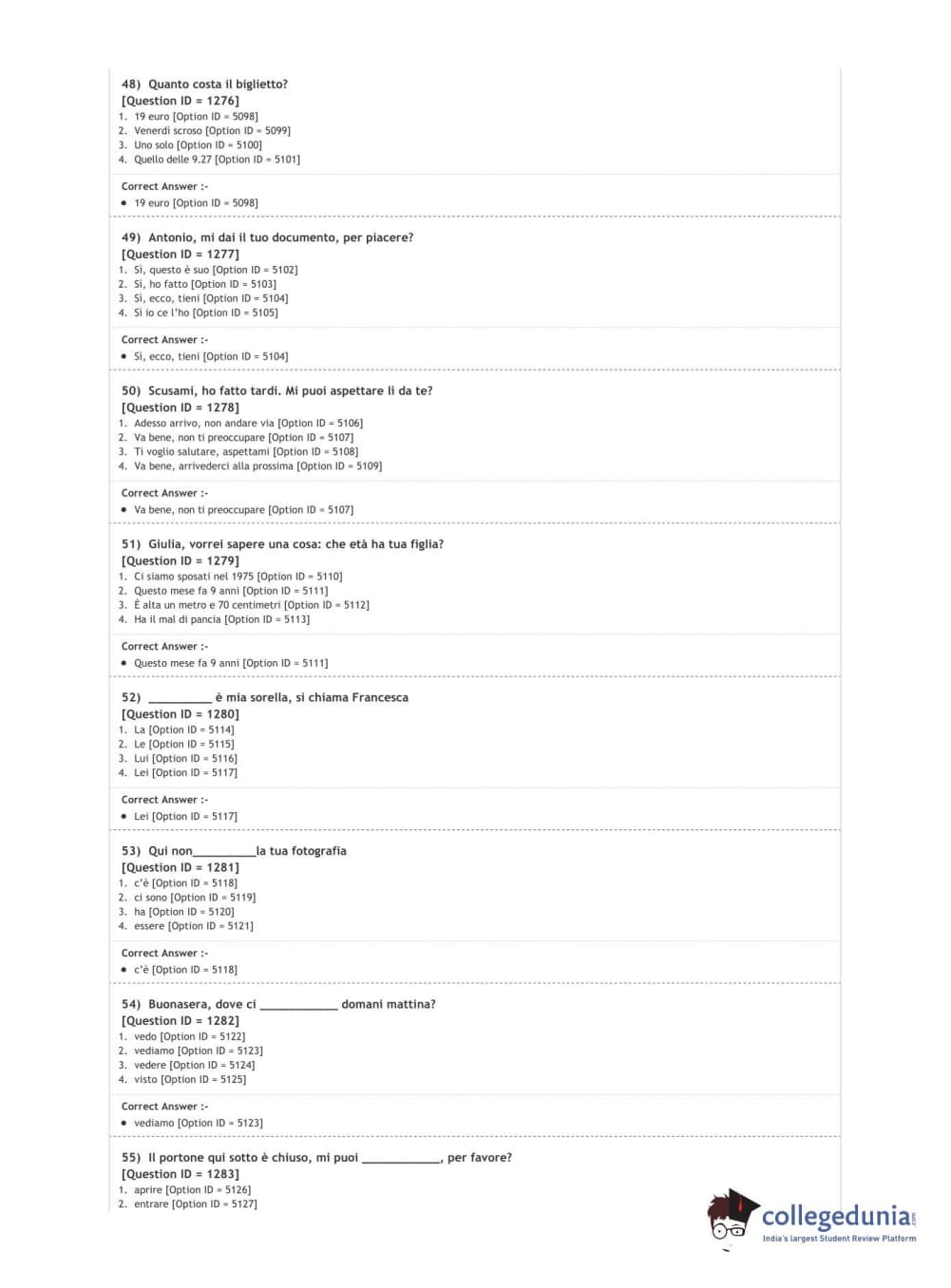 DUET 2020 M.A. Italian Question paper with answer key pdf conducted on June 9, 2020 in Shift 2 is available for download. The exam was successfully organized by National Testing Agency (NTA). The question paper comprised a total of 100 questions.