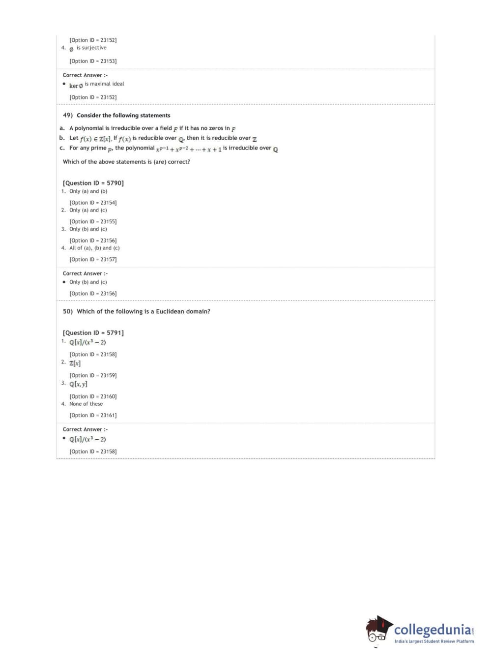 DUET 2020 M.A./M.Sc. Mathematics Question paper with answer key pdf conducted on November 9, 2020 in Shift 2 is available for download. The exam was successfully organized by National Testing Agency (NTA). The question paper comprised a total of 50 questions.