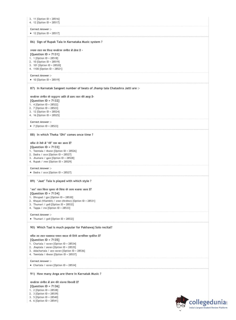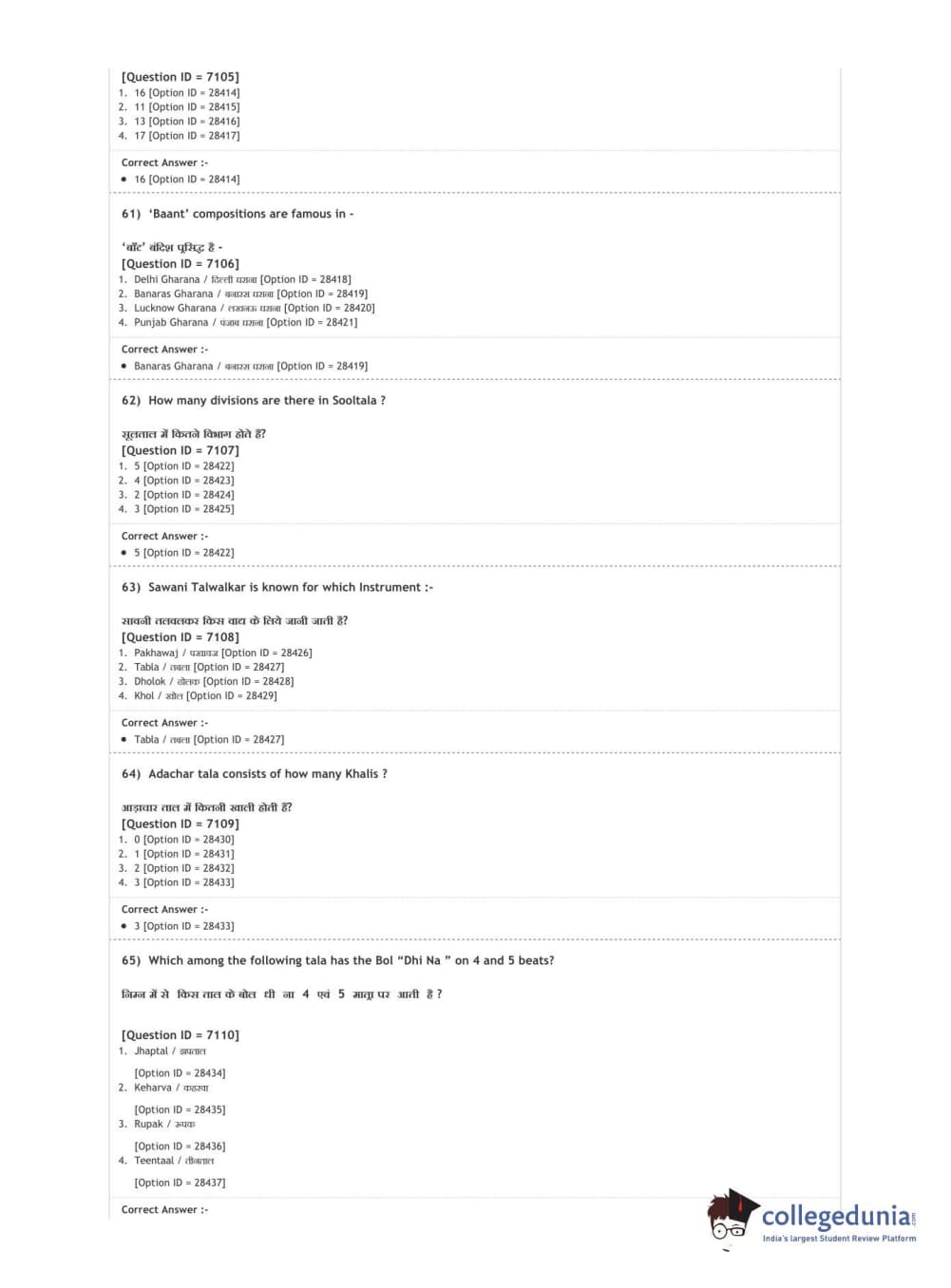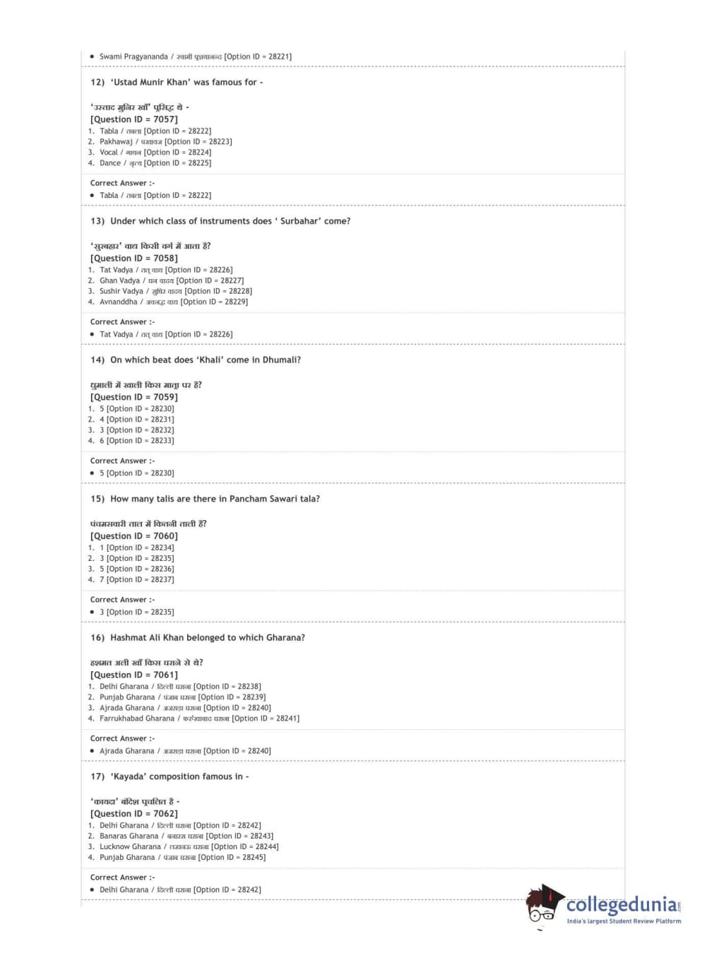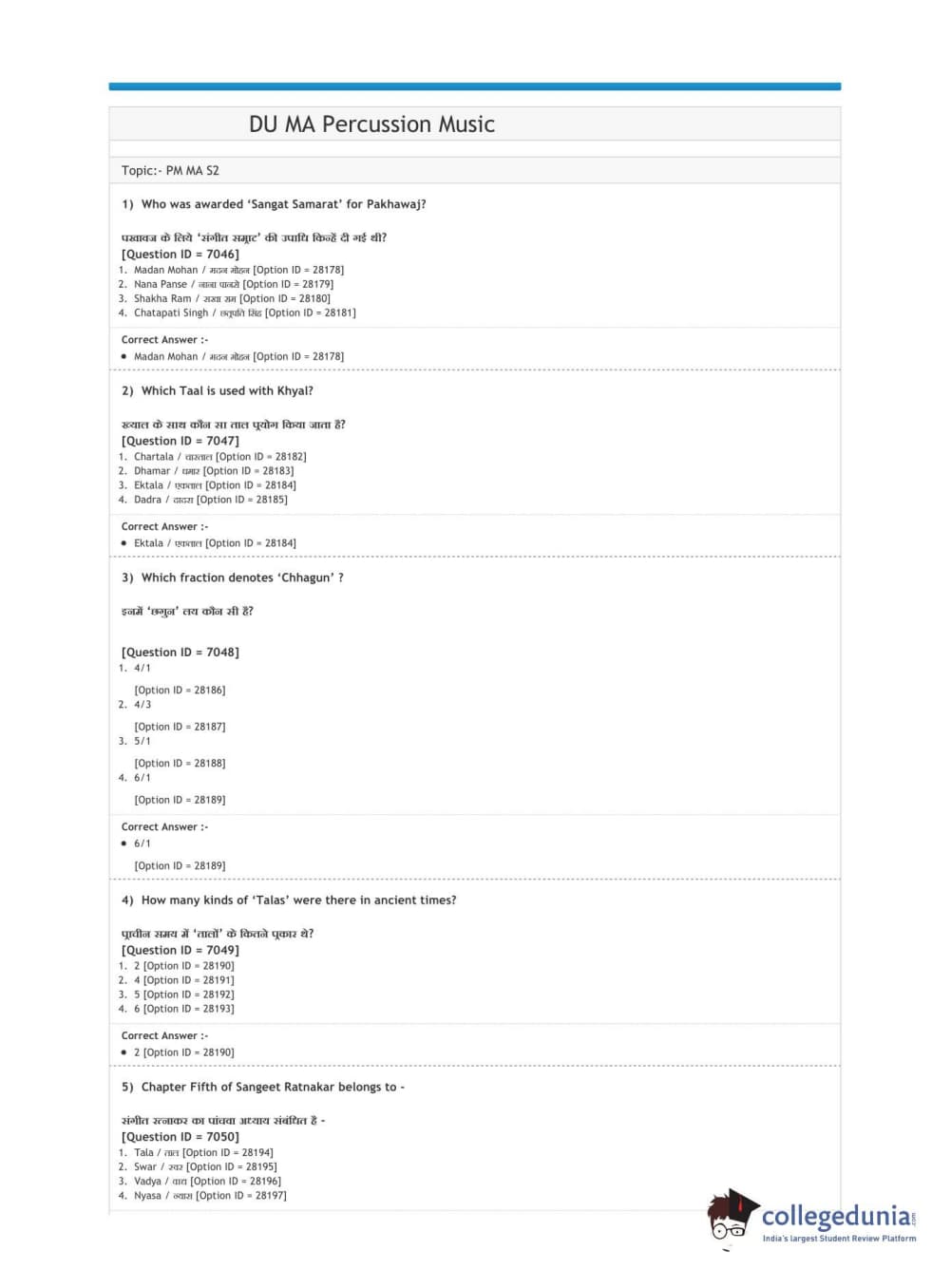 DUET 2020 M.A. Percussion Music Question paper with answer key pdf conducted on August 9, 2020 in Shift 3 is available for download. The exam was successfully organized by National Testing Agency (NTA). The question paper comprised a total of 100 questions.