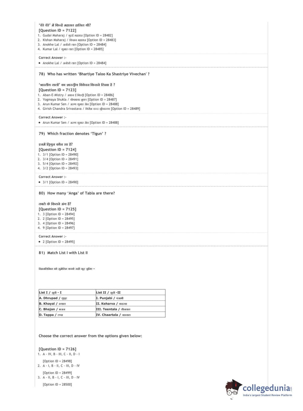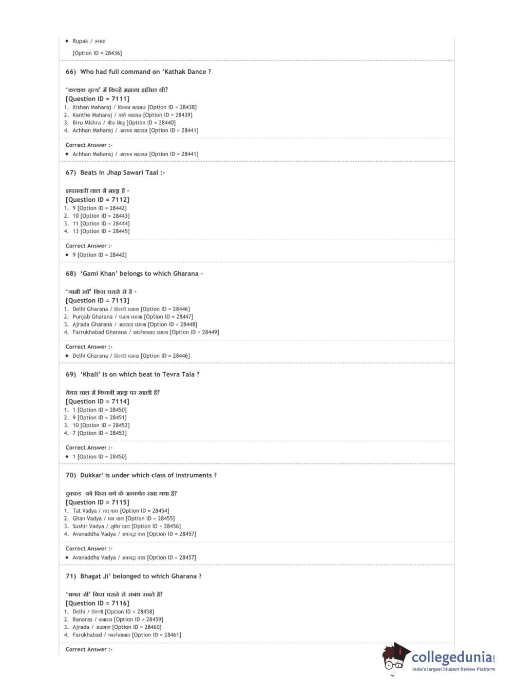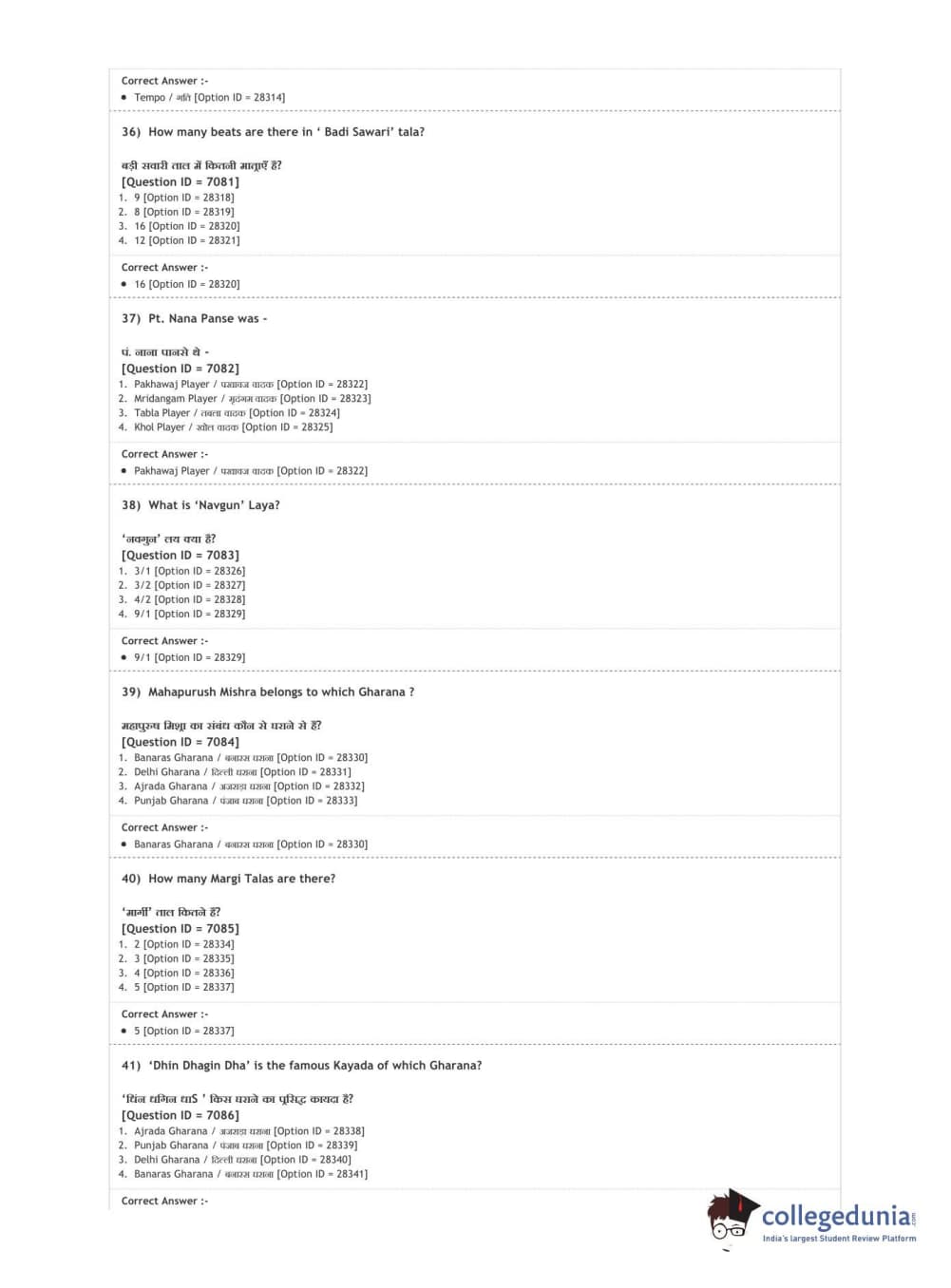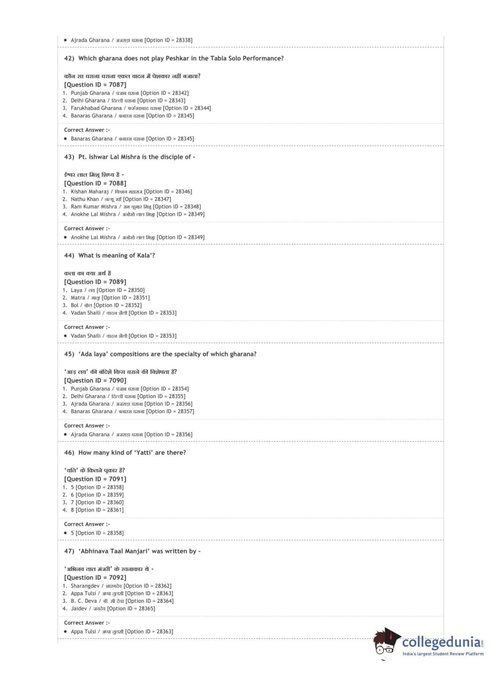 DUET 2020 M.A. Percussion Music Question paper with answer key pdf conducted on August 9, 2020 in Shift 3 is available for download. The exam was successfully organized by National Testing Agency (NTA). The question paper comprised a total of 100 questions.