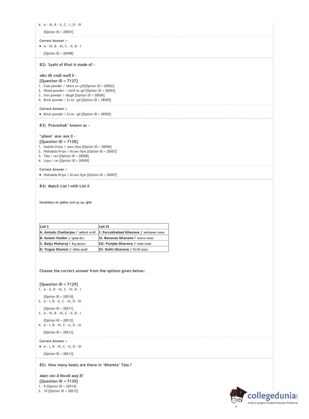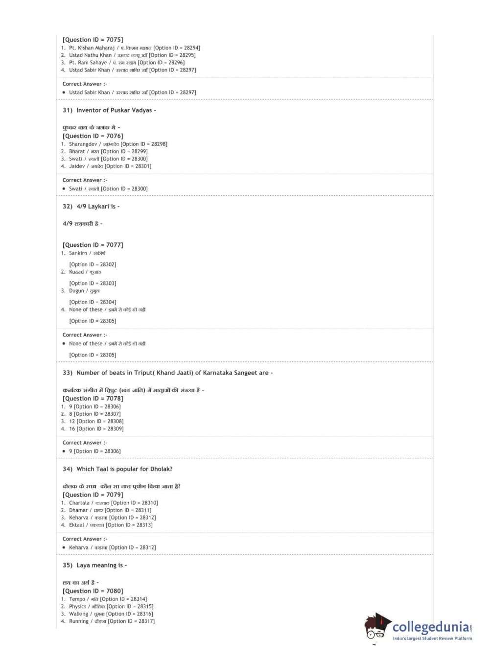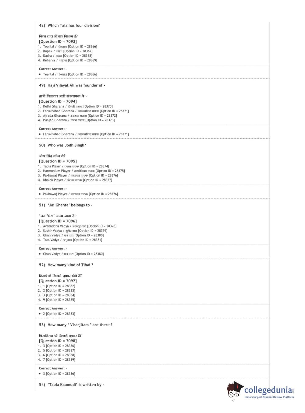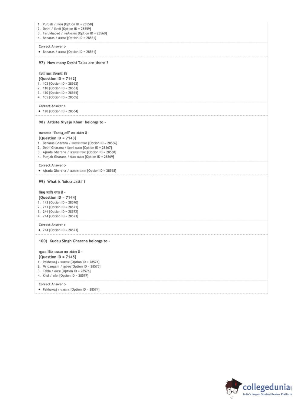DUET 2020 M.A. Percussion Music Question paper with answer key pdf conducted on August 9, 2020 in Shift 3 is available for download. The exam was successfully organized by National Testing Agency (NTA). The question paper comprised a total of 100 questions.