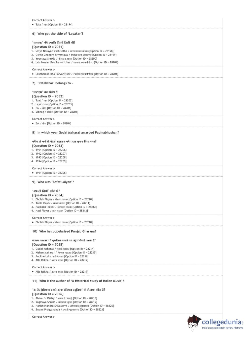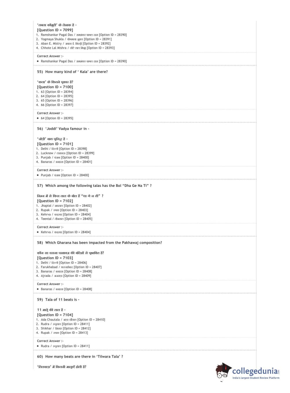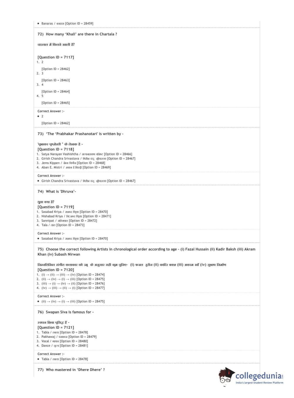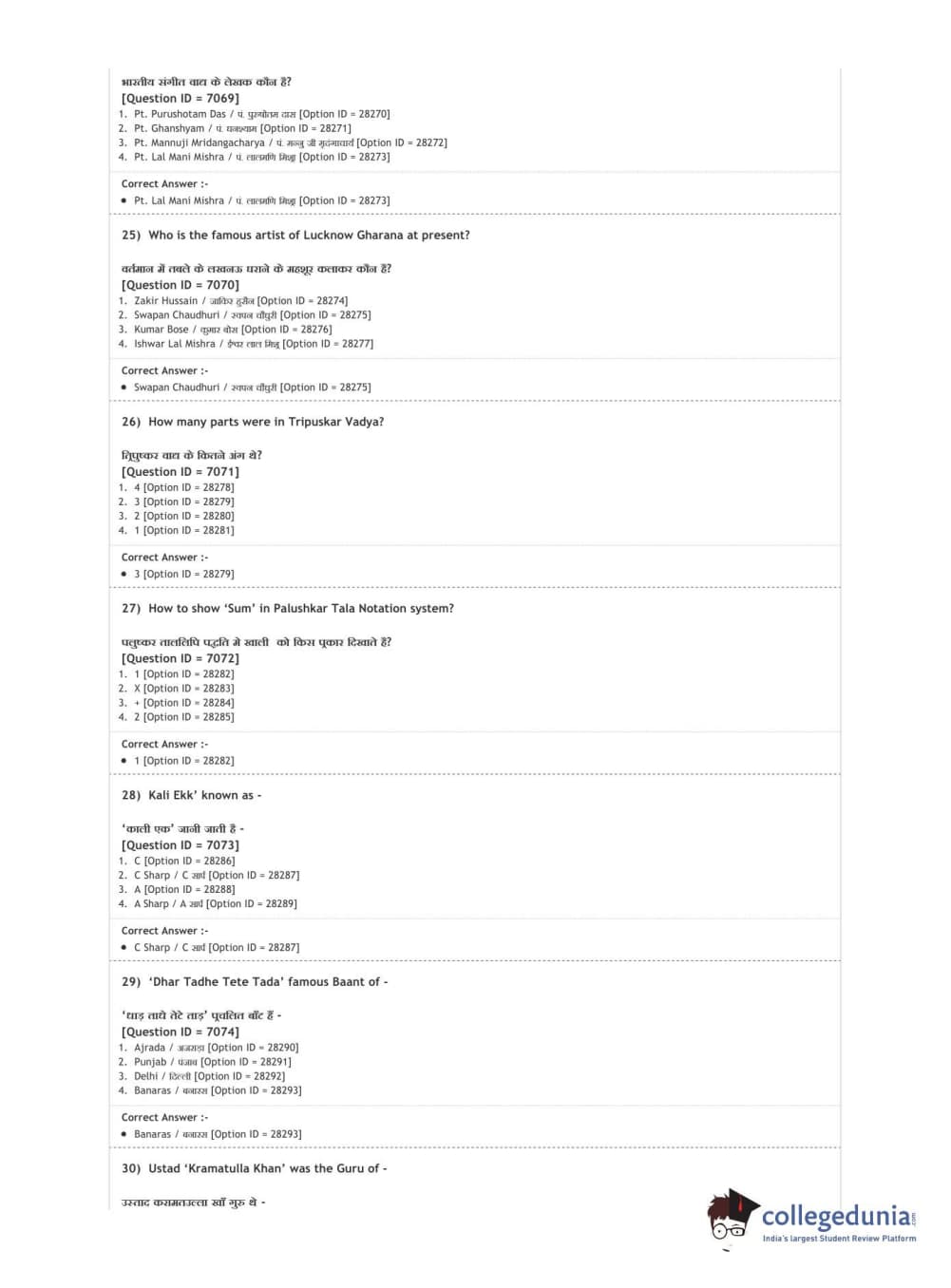 DUET 2020 M.A. Percussion Music Question paper with answer key pdf conducted on August 9, 2020 in Shift 3 is available for download. The exam was successfully organized by National Testing Agency (NTA). The question paper comprised a total of 100 questions.