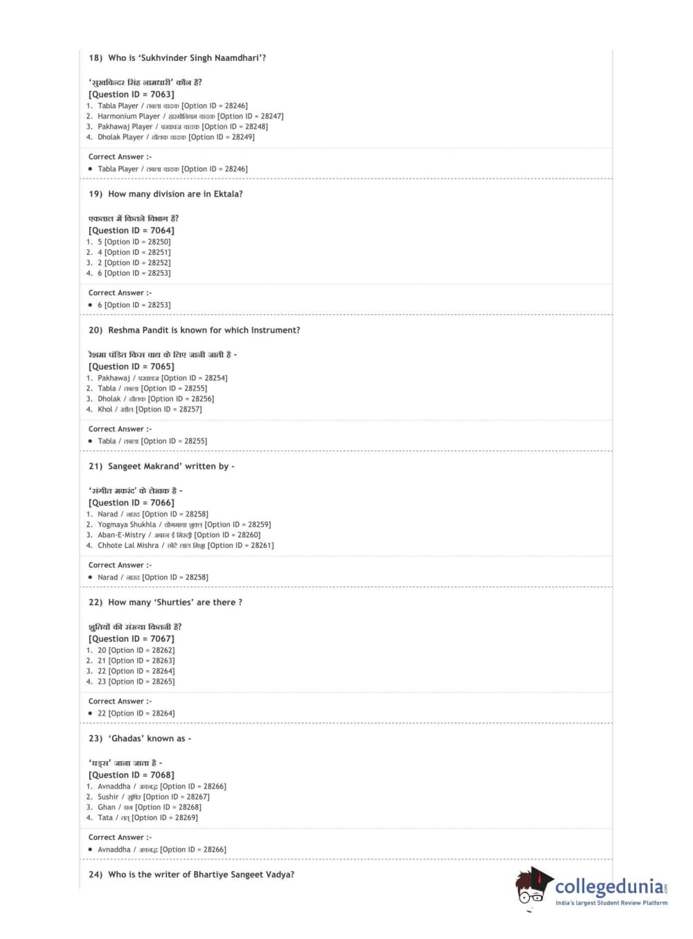 DUET 2020 M.A. Percussion Music Question Paper with Answer Key PDF Shift 3