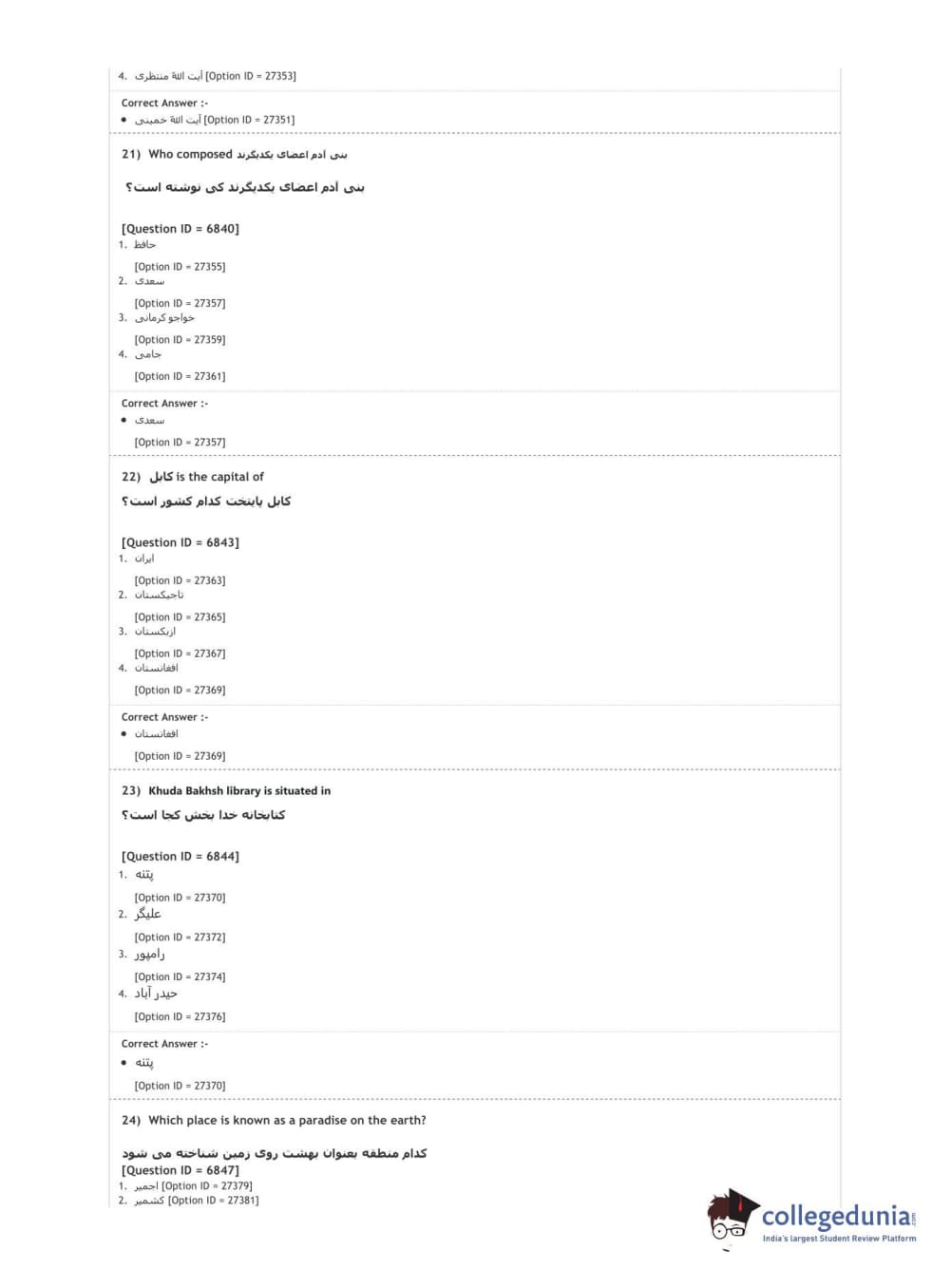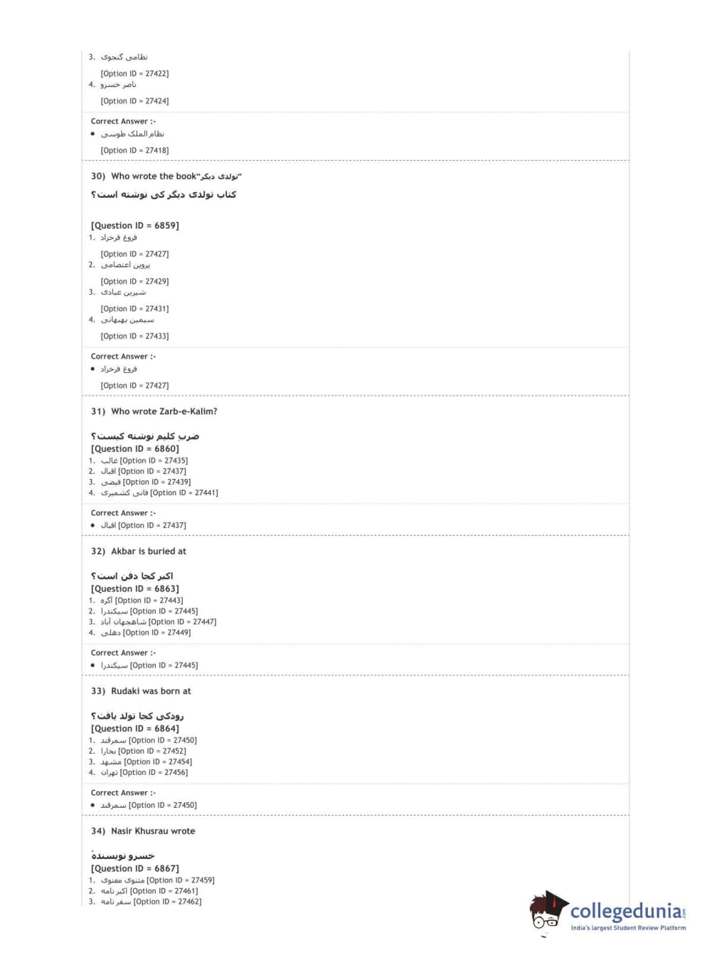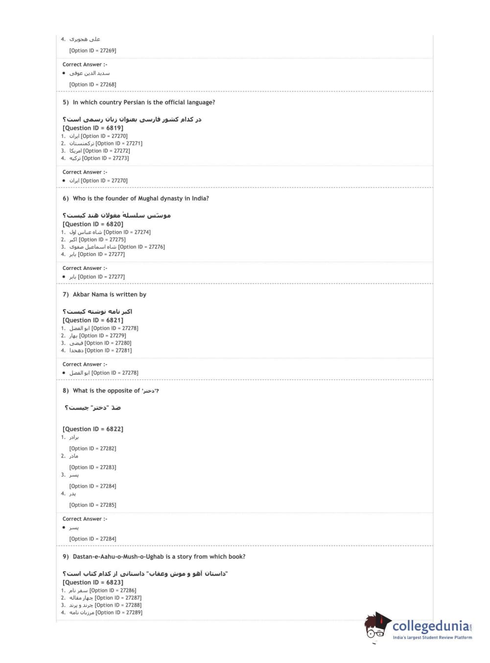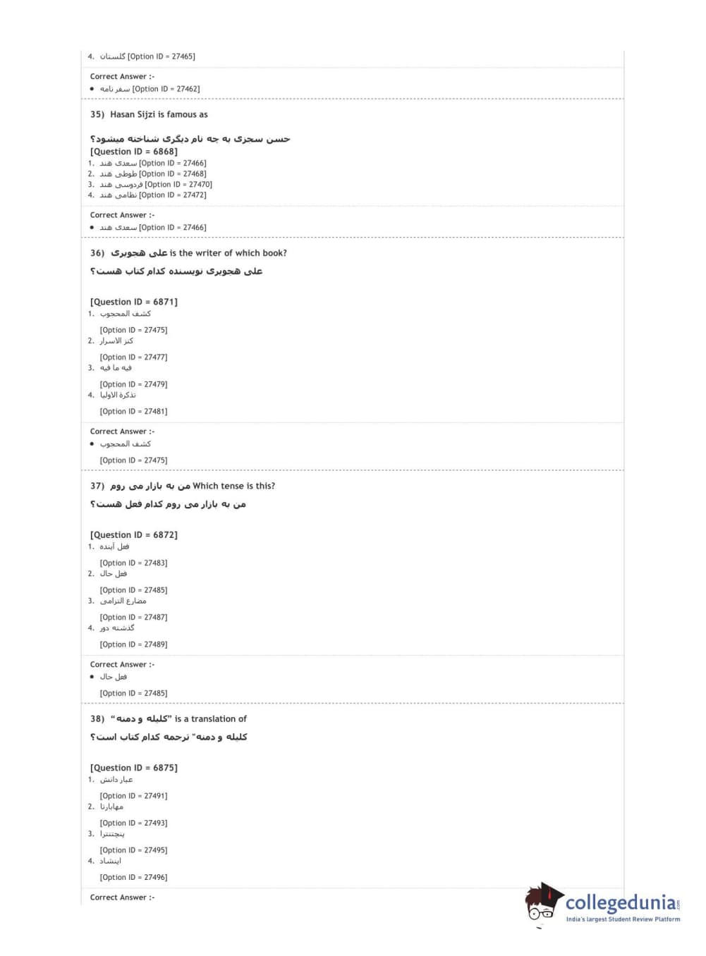 DUET 2020 M.A. Persian Question Paper with Answer Key PDF Shift 2
