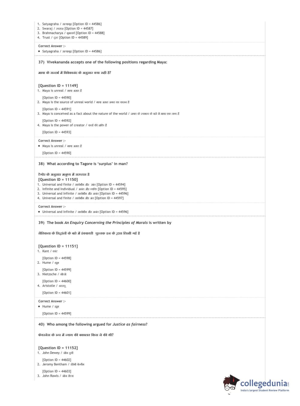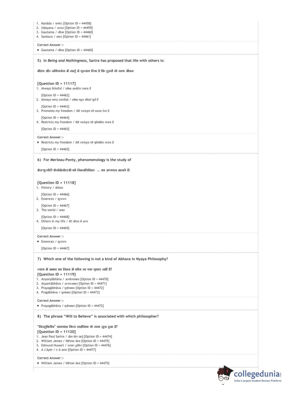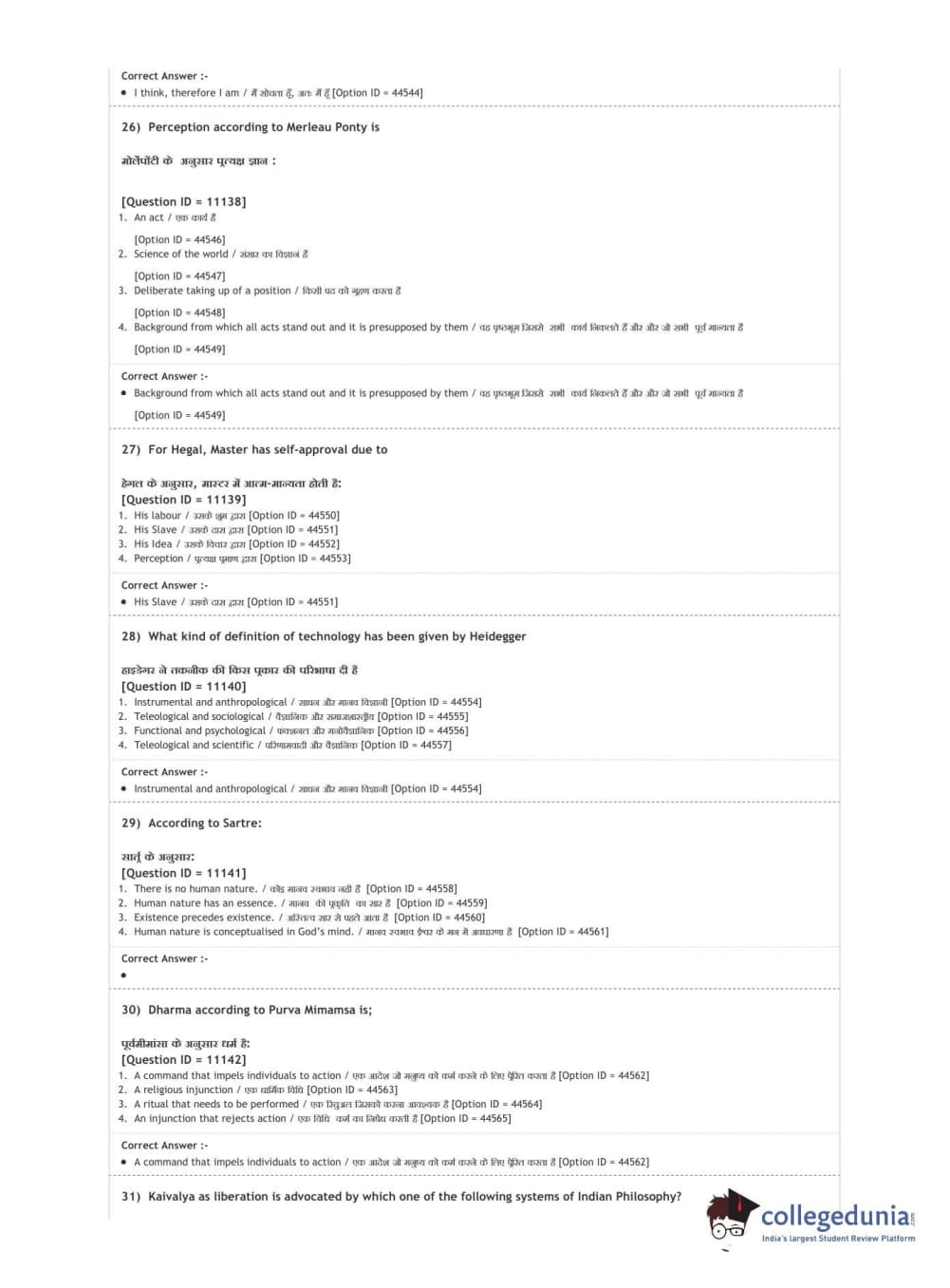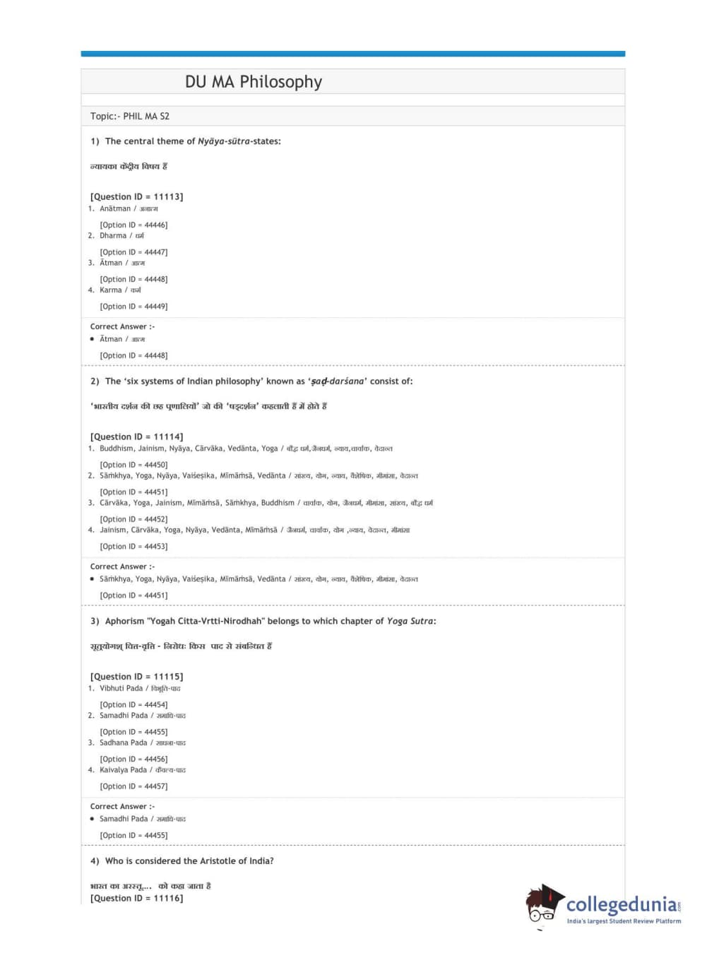 DUET 2020 M.A. Philosophy Question paper with answer key pdf conducted on October 9, 2020 in Shift 1 is available for download. The exam was successfully organized by National Testing Agency (NTA). The question paper comprised a total of 100 questions.