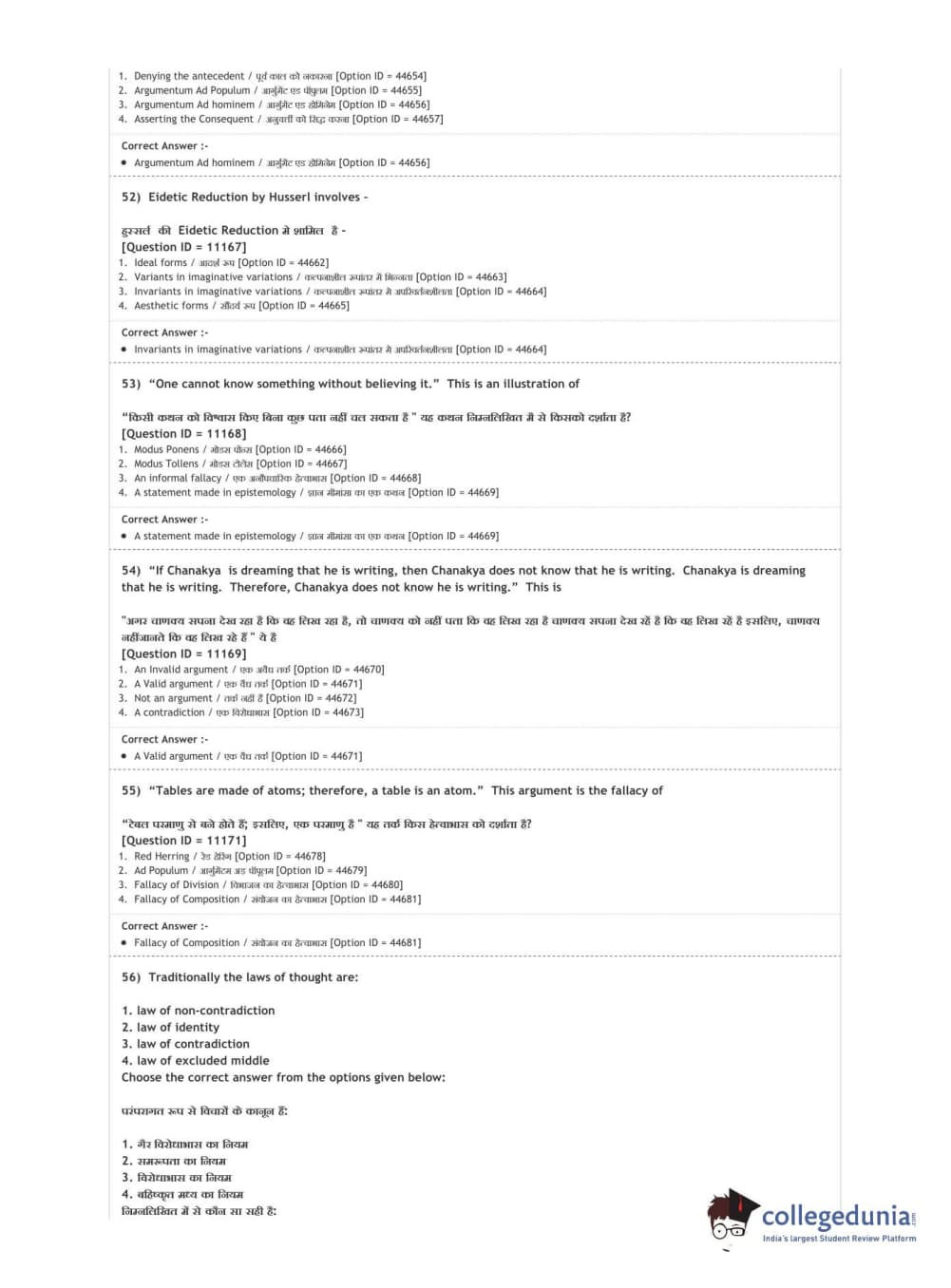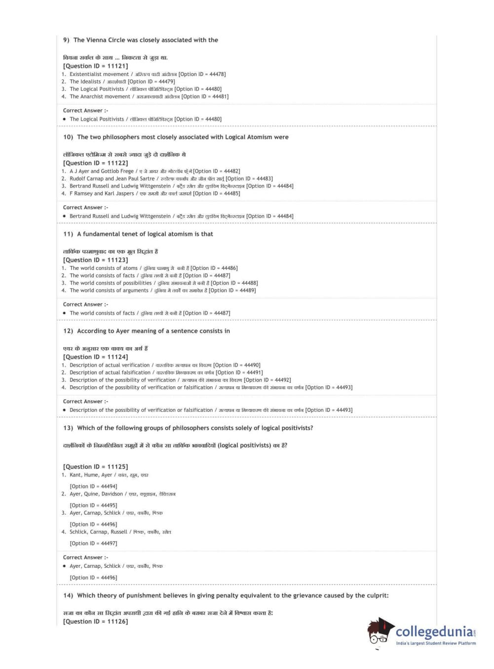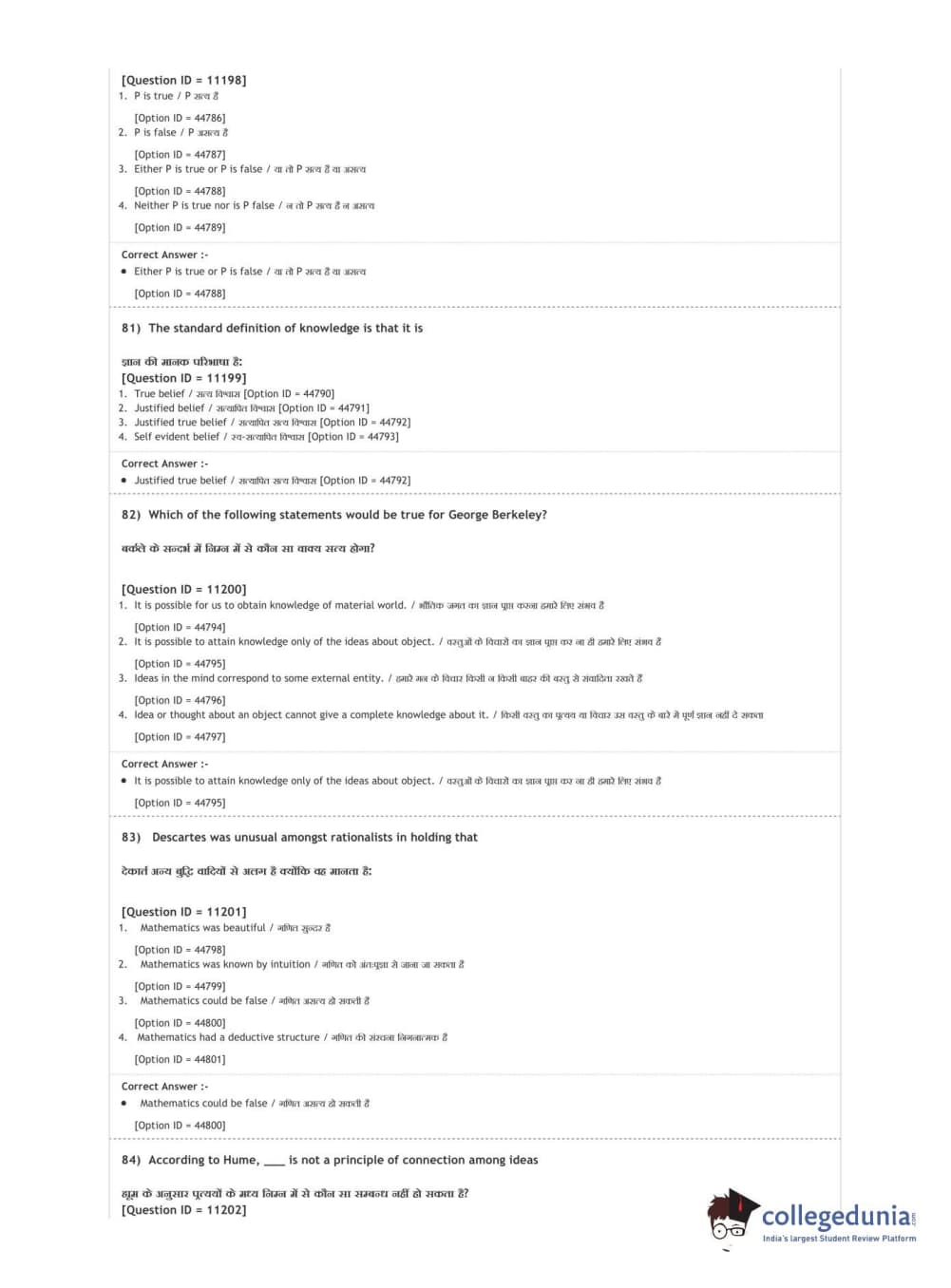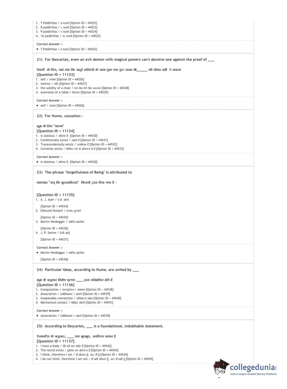 DUET 2020 M.A. Philosophy Question paper with answer key pdf conducted on October 9, 2020 in Shift 1 is available for download. The exam was successfully organized by National Testing Agency (NTA). The question paper comprised a total of 100 questions.
