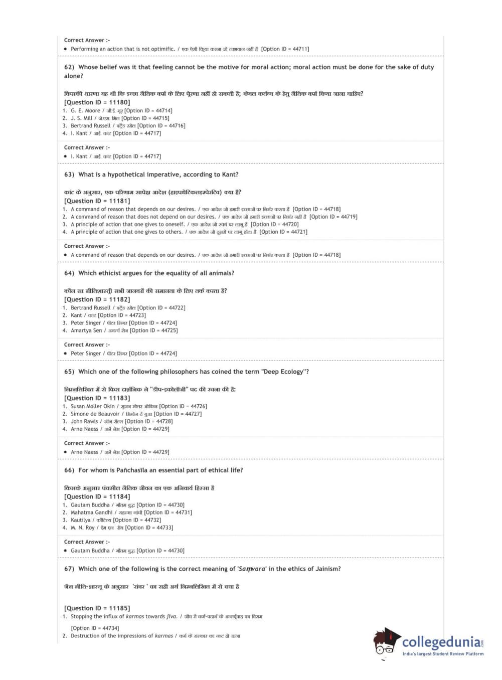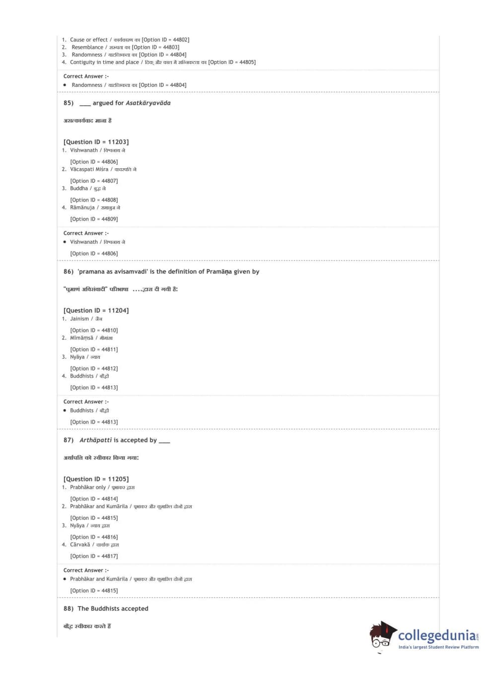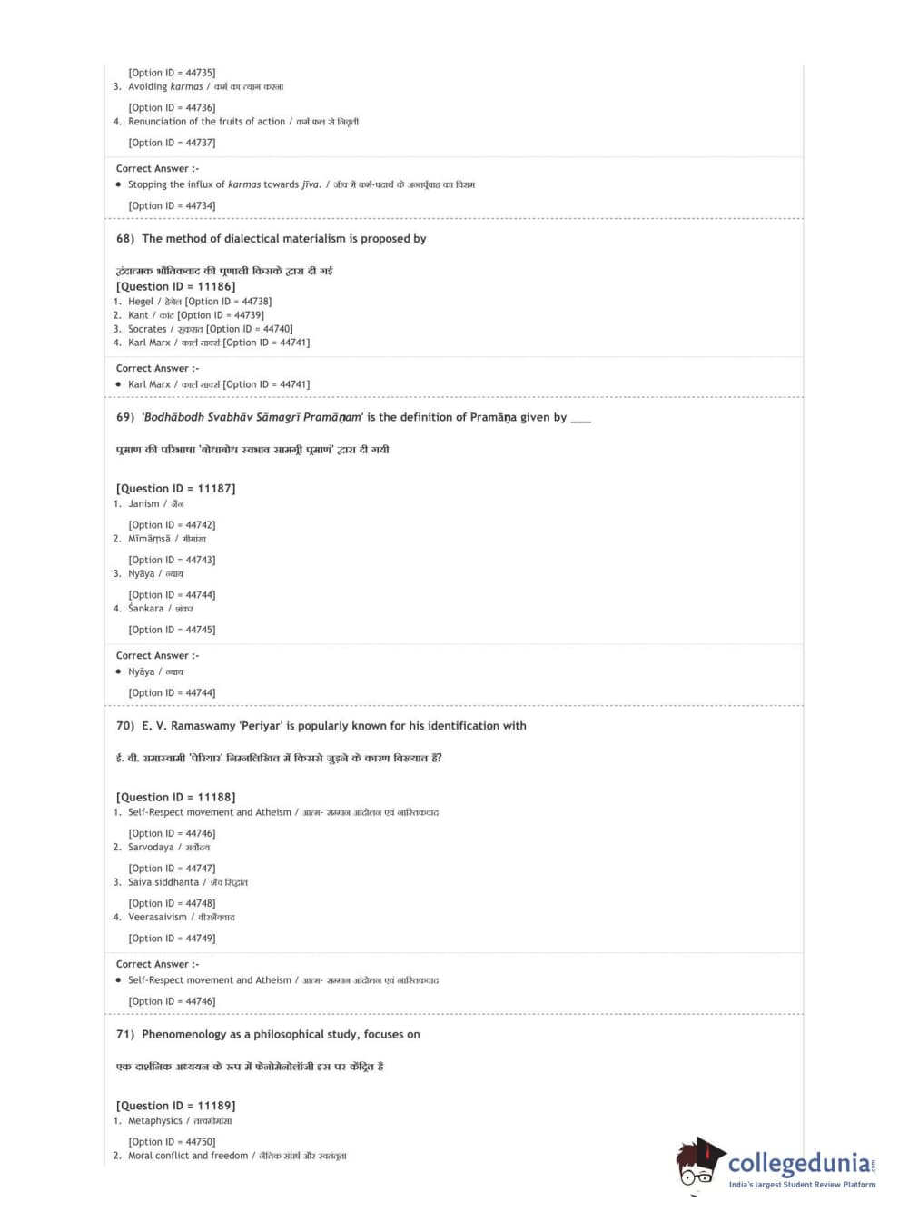 DUET 2020 M.A. Philosophy Question Paper with Answer Key PDF Shift 1