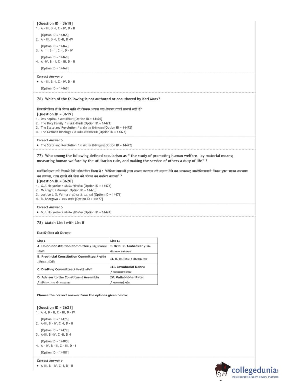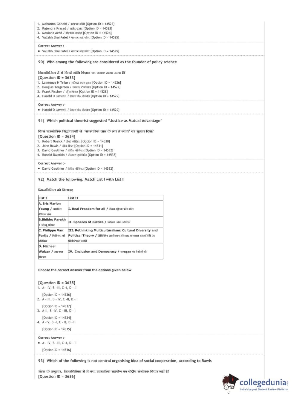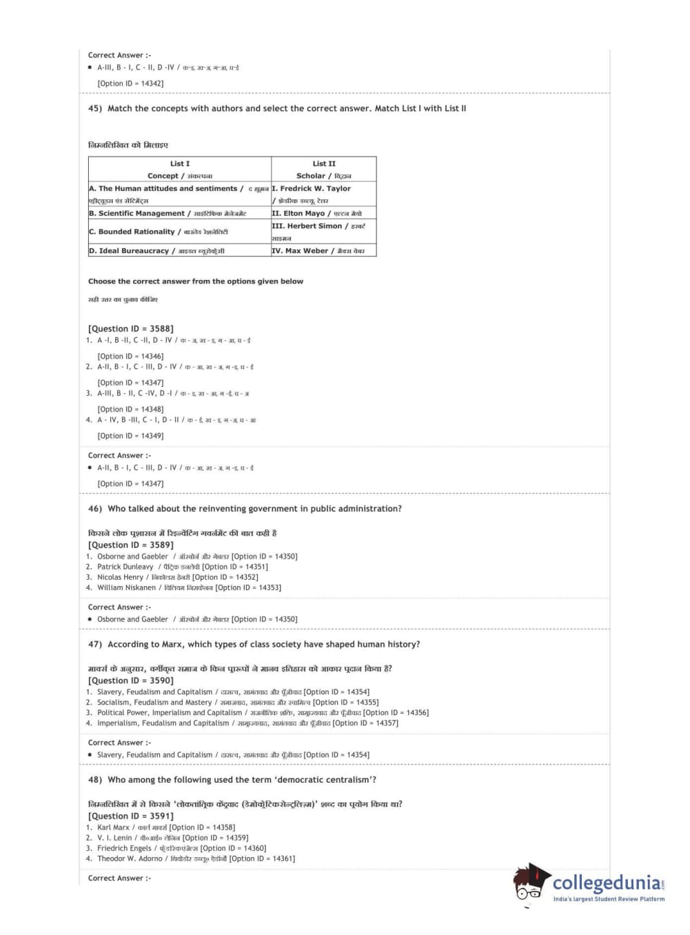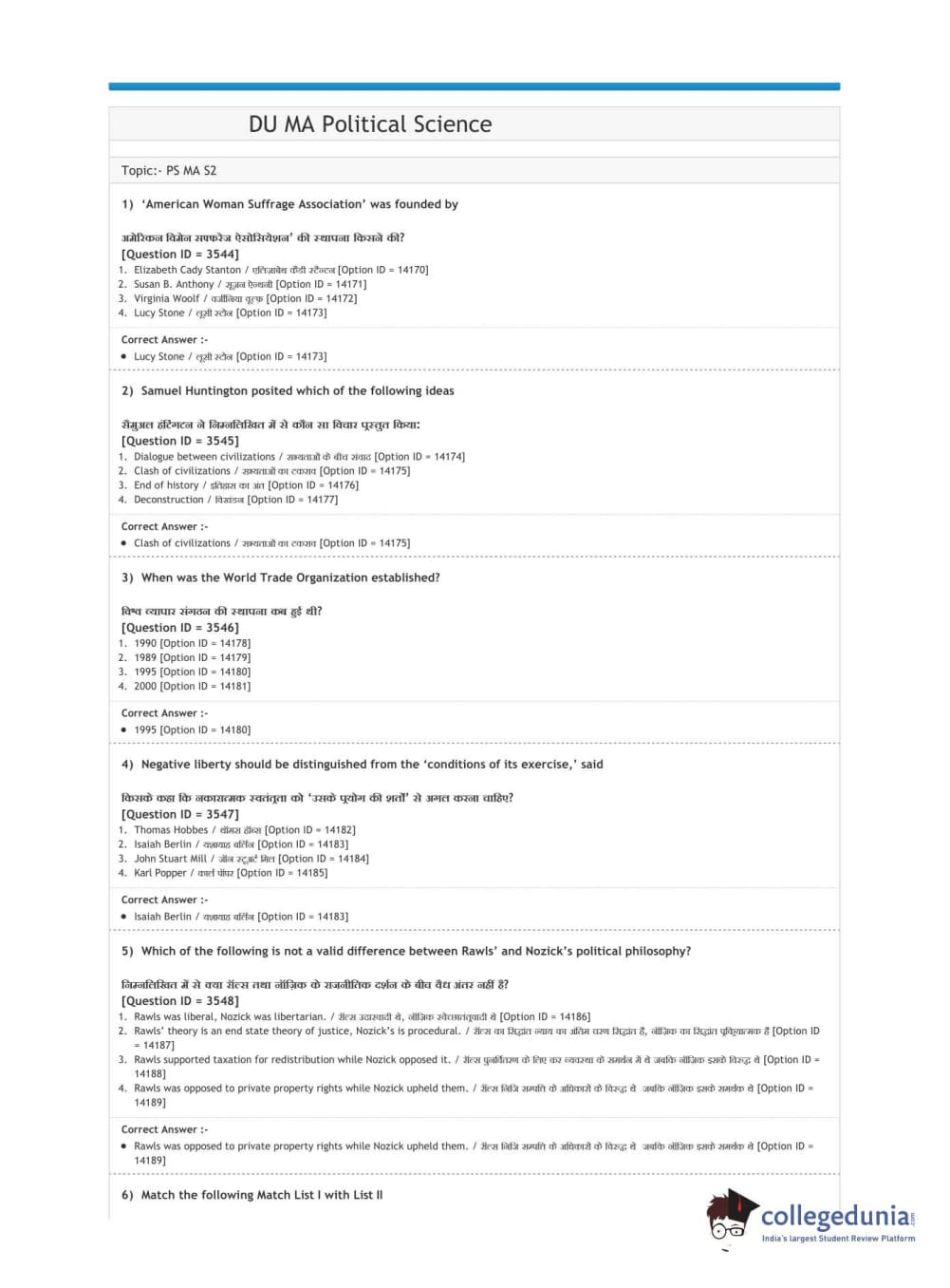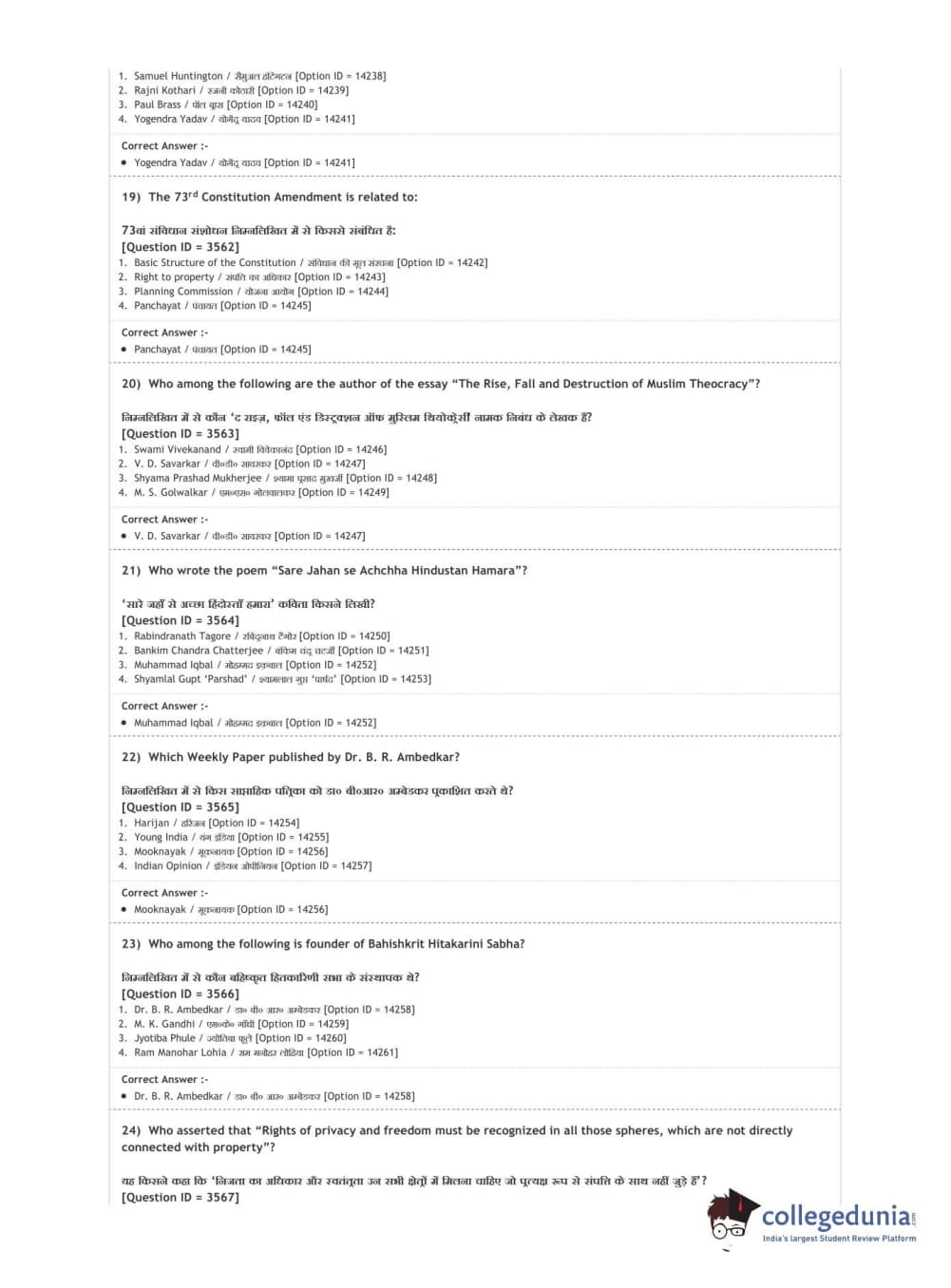 DUET 2020 M.A. Political Science Question Paper with Answer Key PDF Shift 2