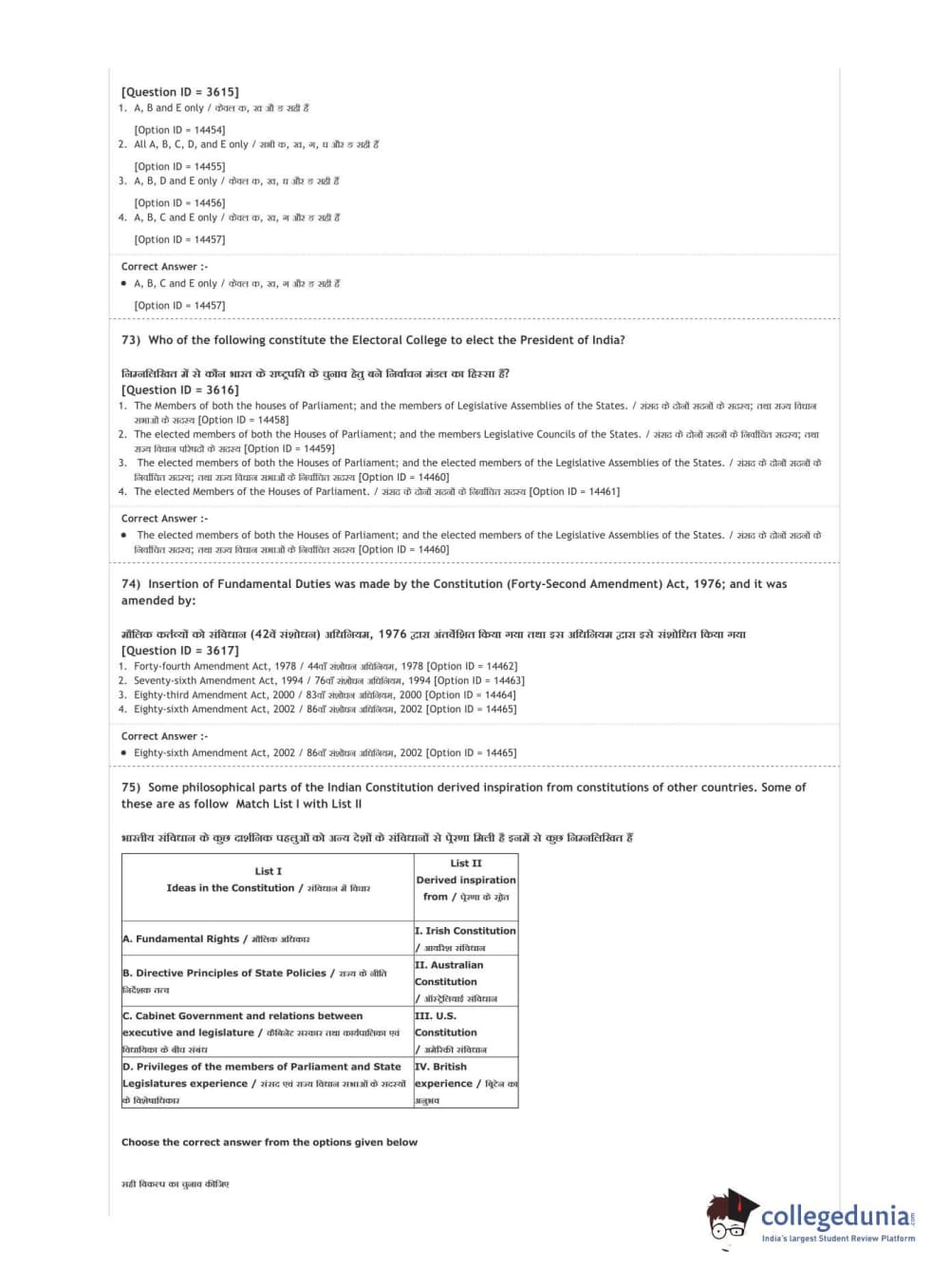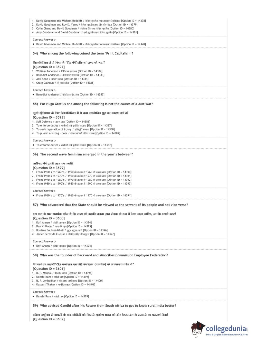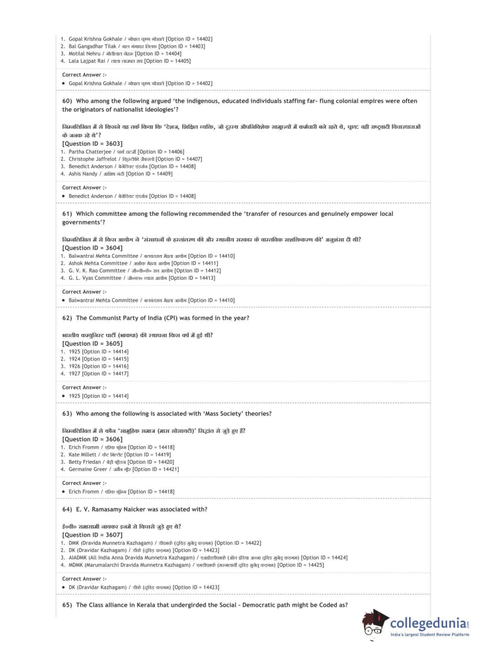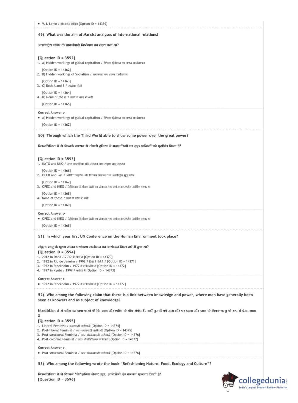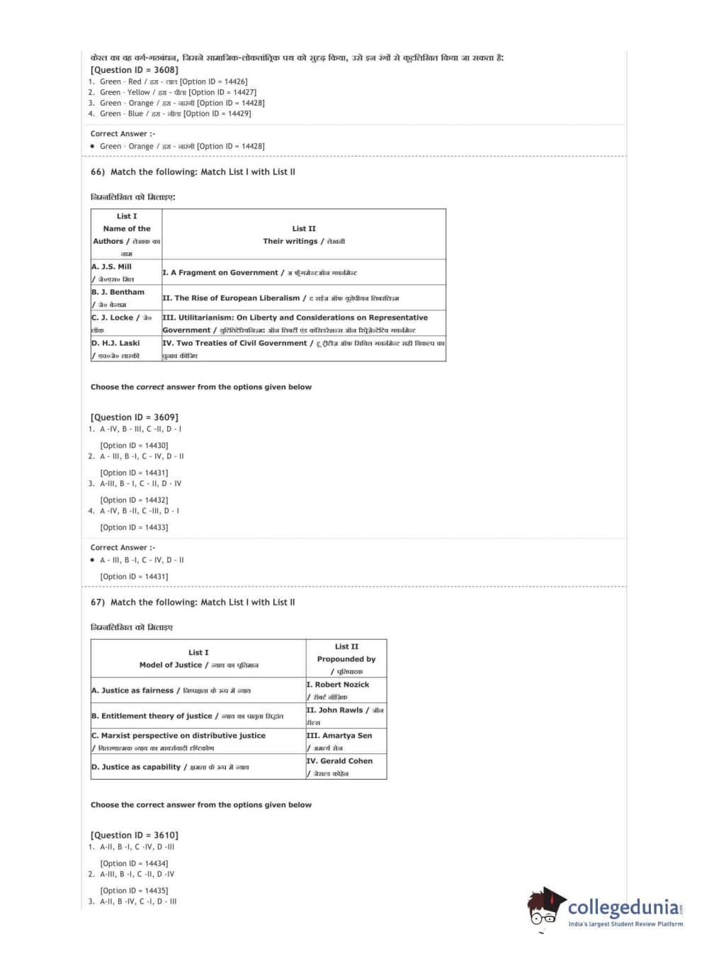 DUET 2020 M.A. Political Science Question Paper with Answer Key PDF Shift 2