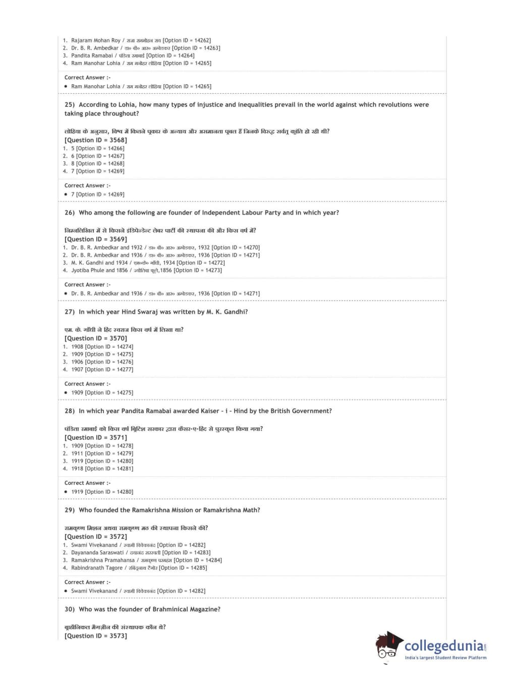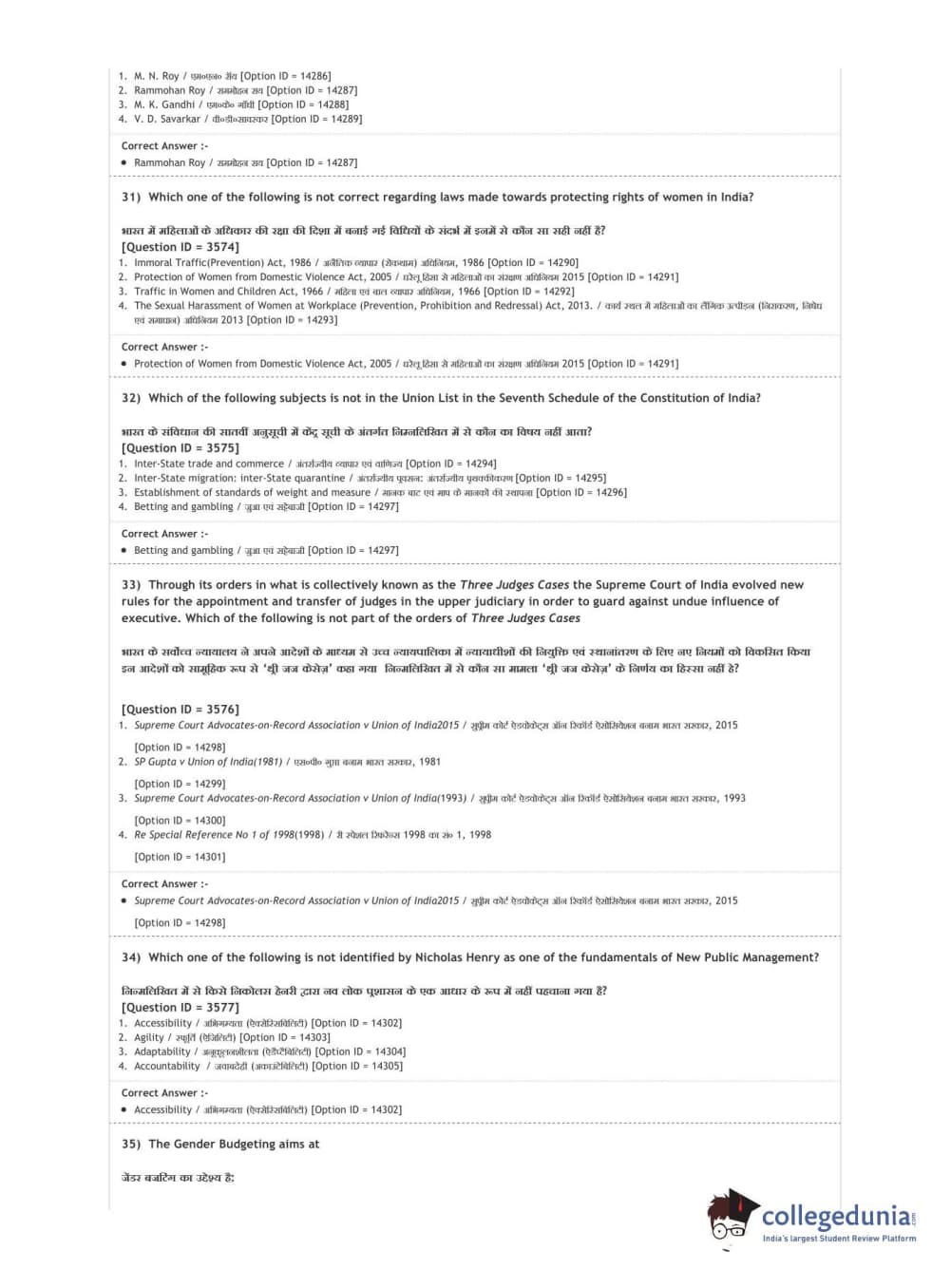 | DUET Subject | Question Paper with Answer Key PDF |