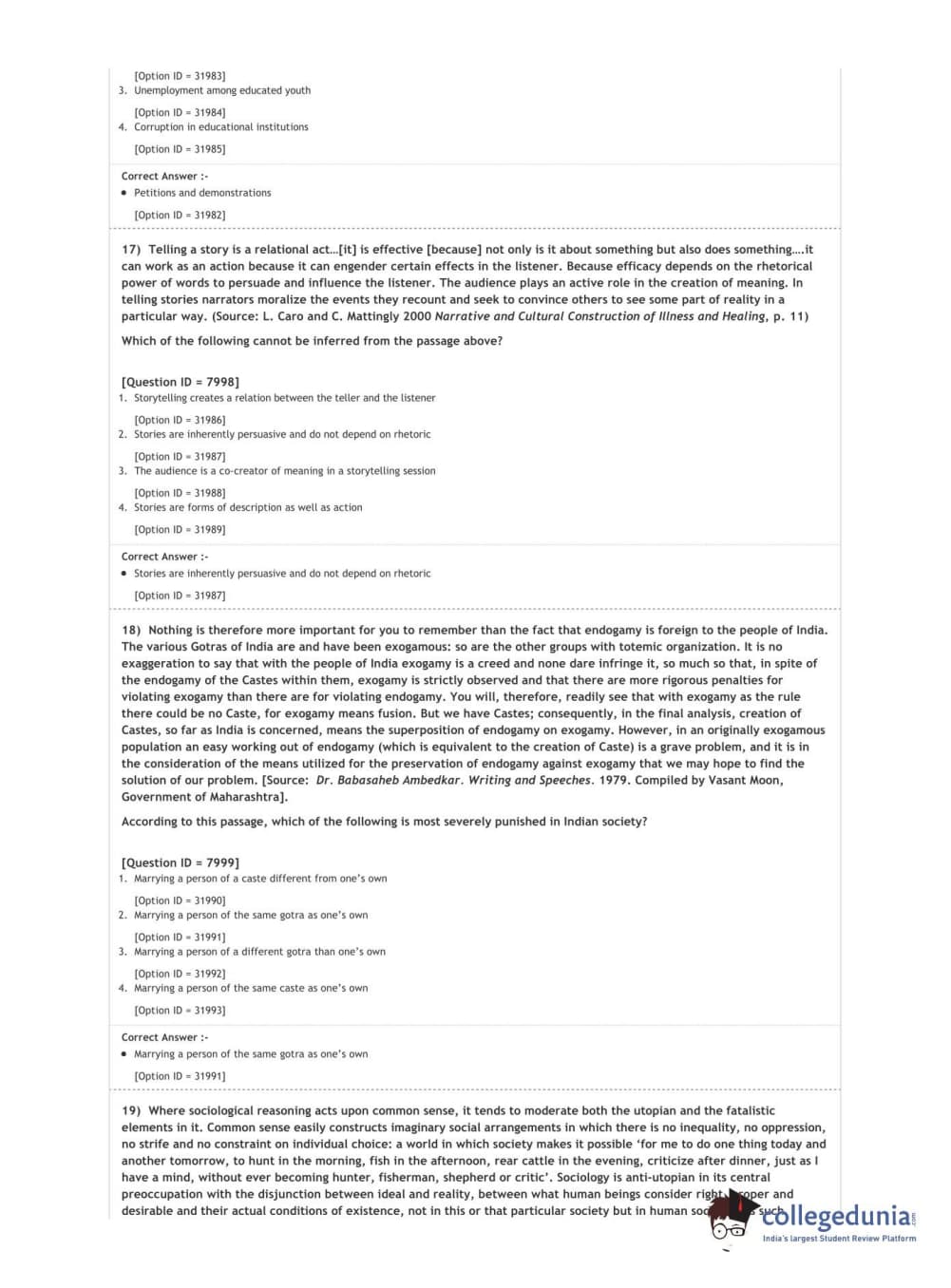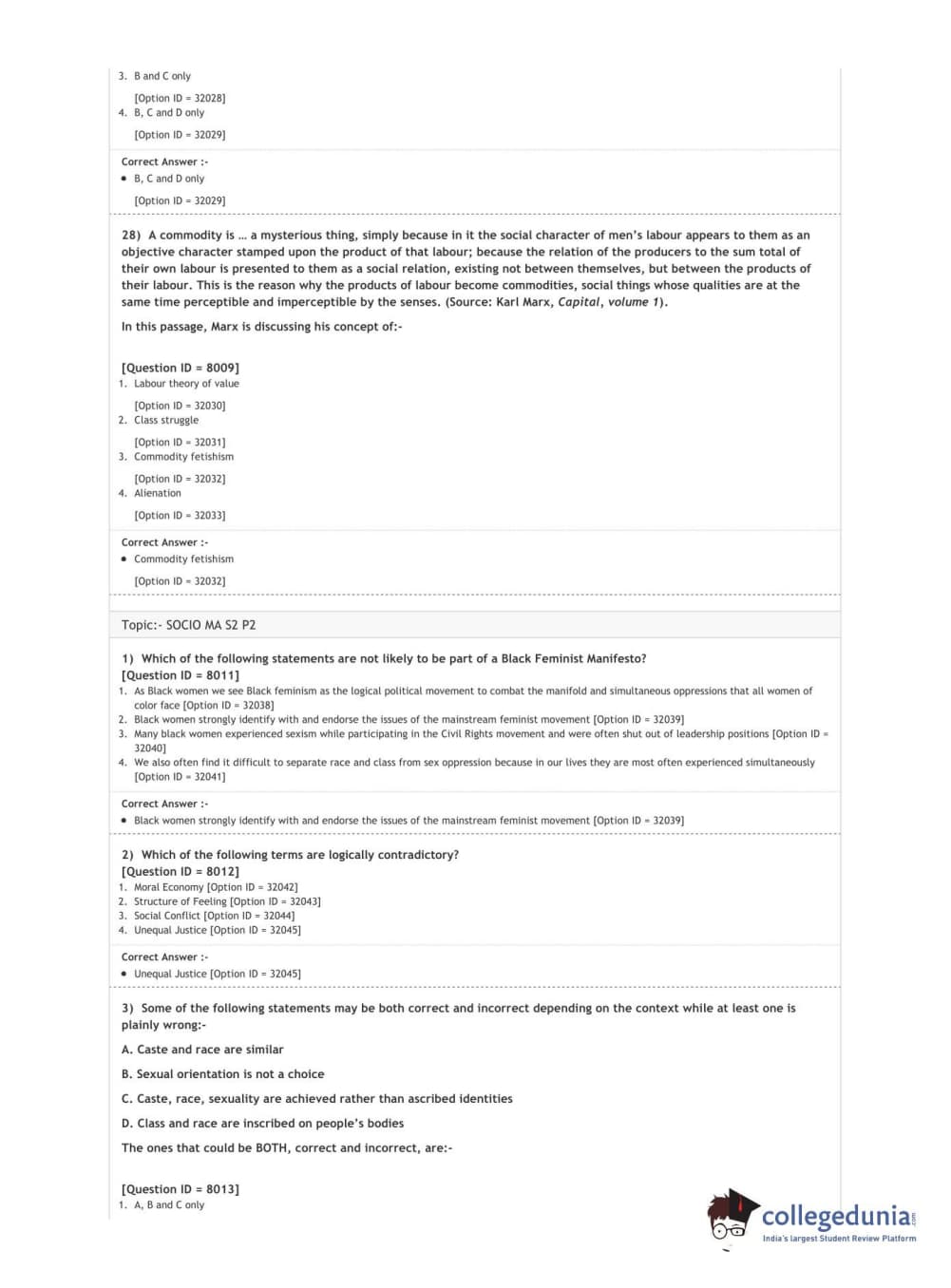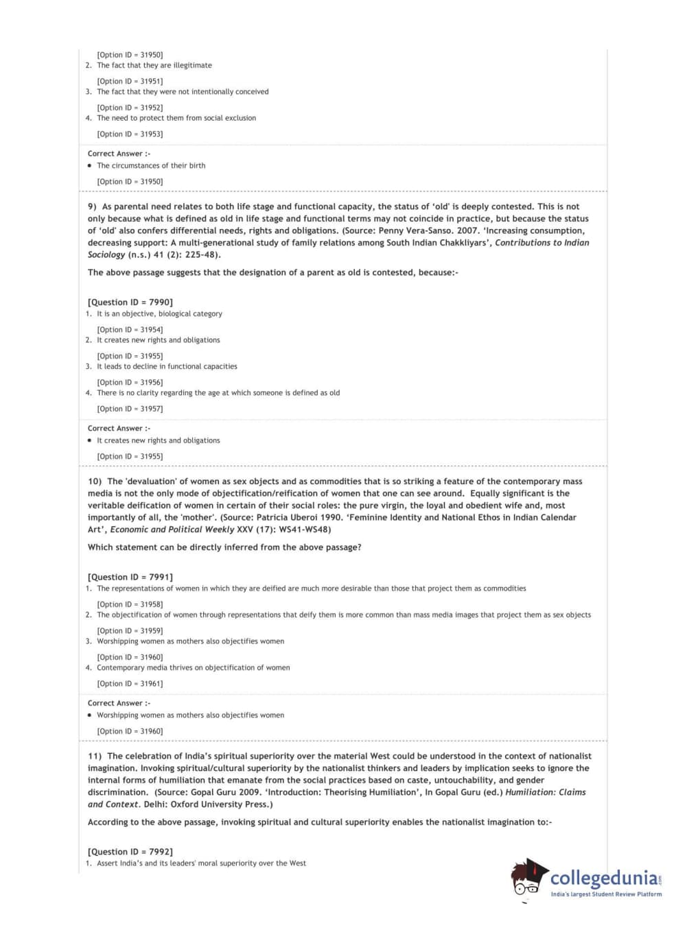 DUET 2020 M.A. Sociology Question Paper with Answer Key PDF Shift 3