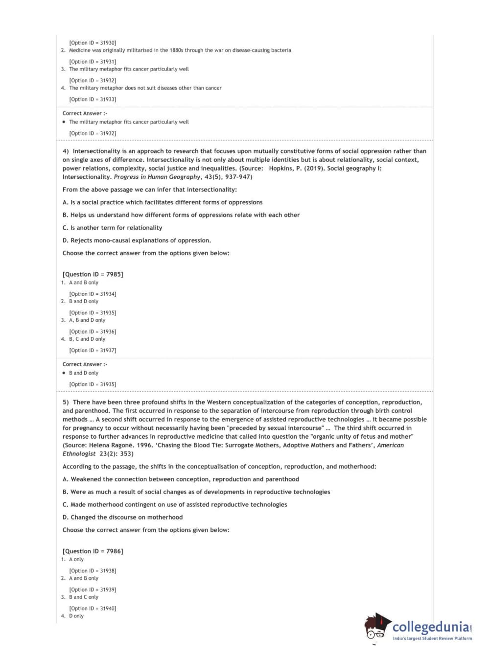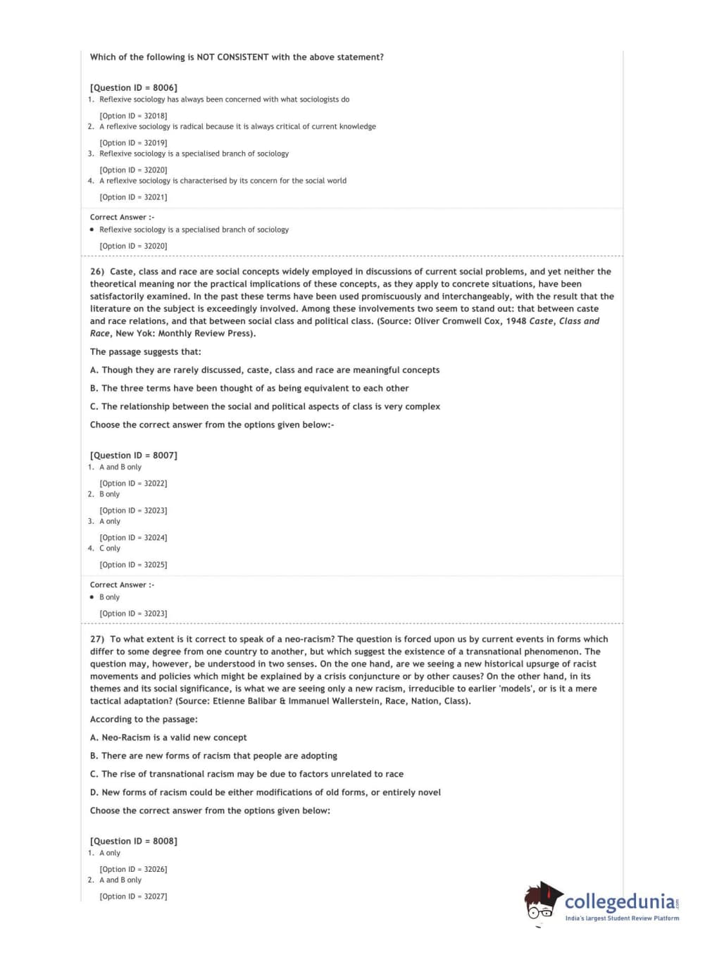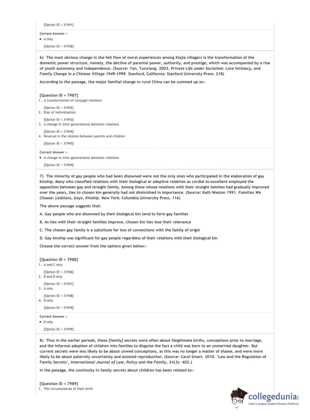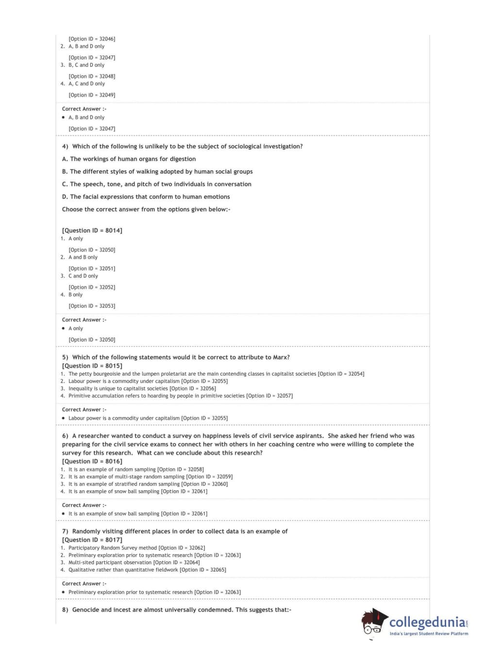 DUET 2020 M.A. Sociology Question Paper with Answer Key PDF Shift 3