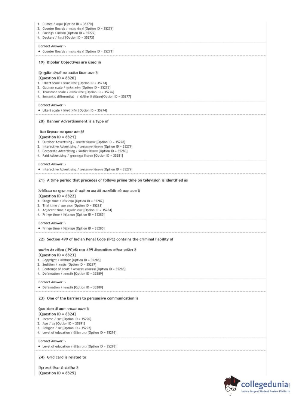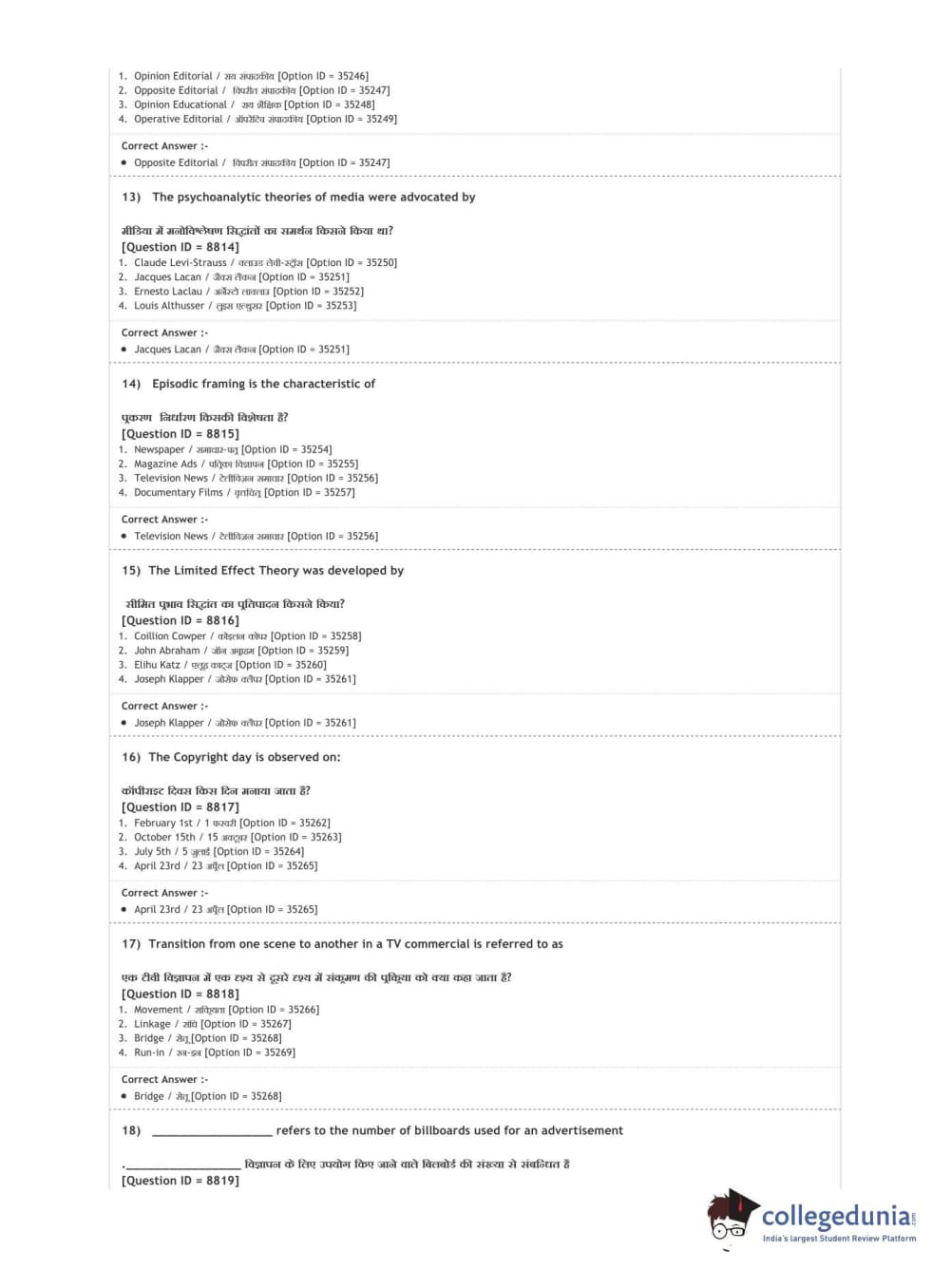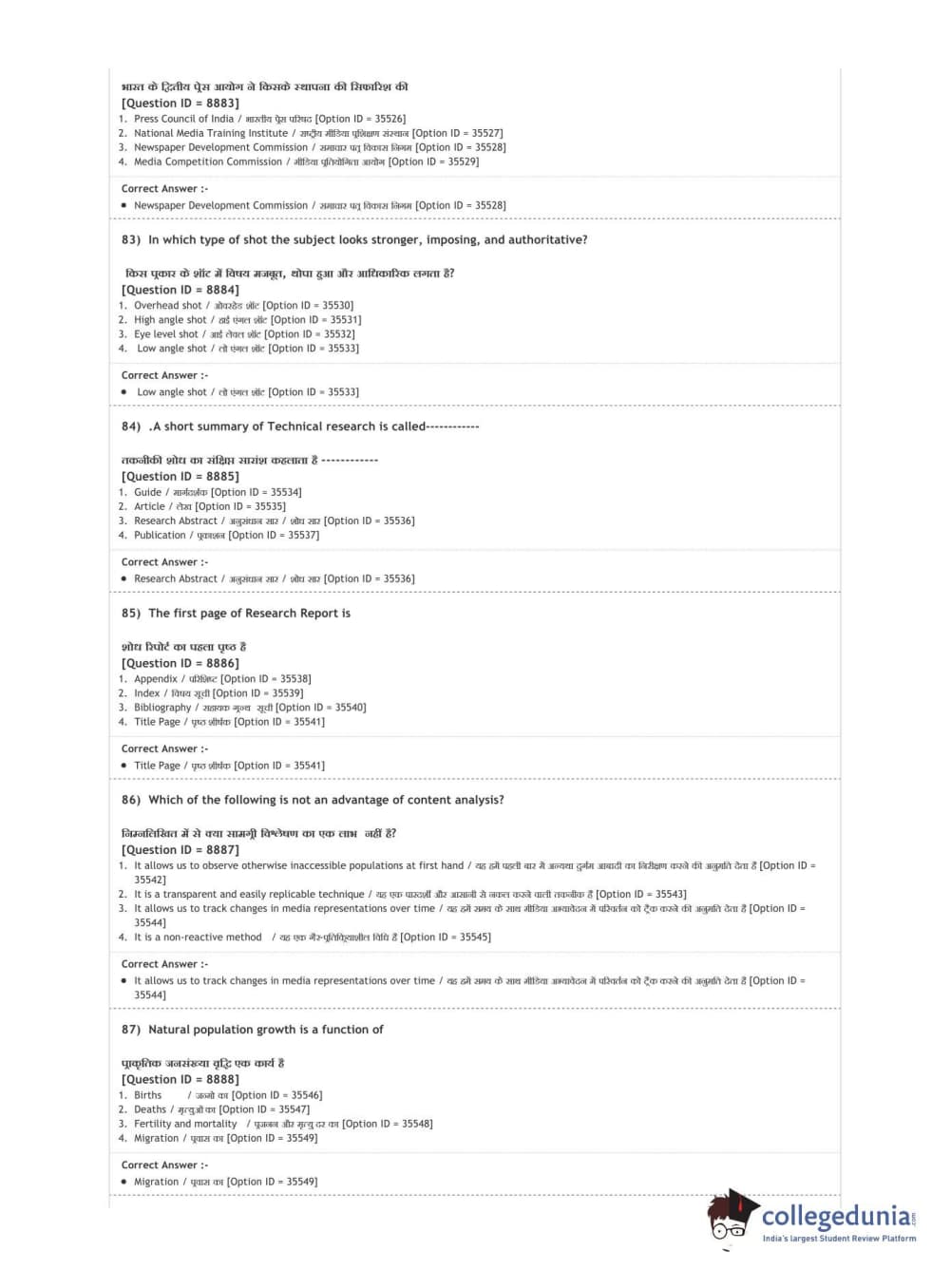 DUET 2020 Masters in Journalism Question paper with answer key pdf conducted on November 9, 2020 in Shift 1 is available for download. The exam was successfully organized by National Testing Agency (NTA). The question paper comprised a total of 100 questions.
