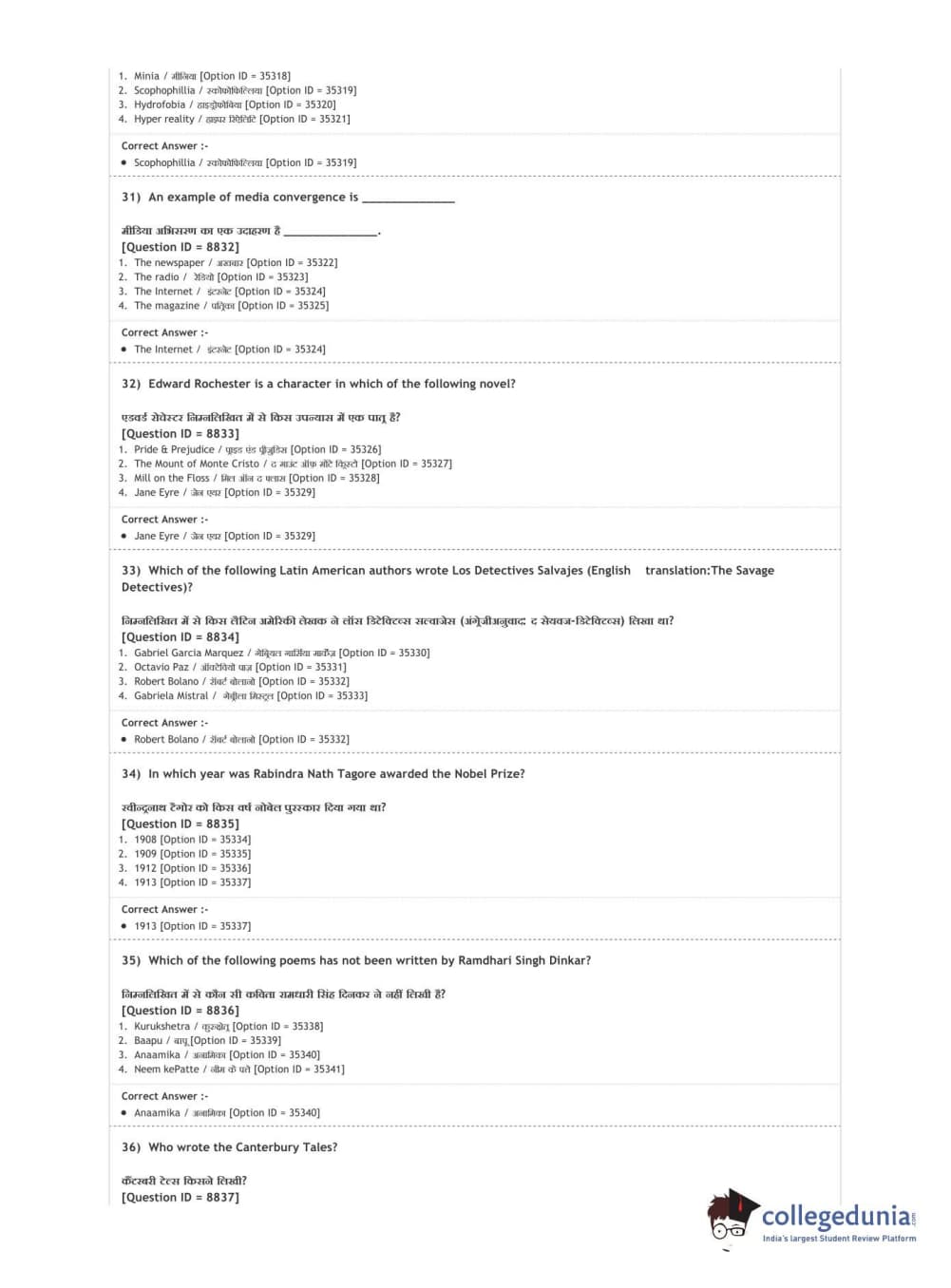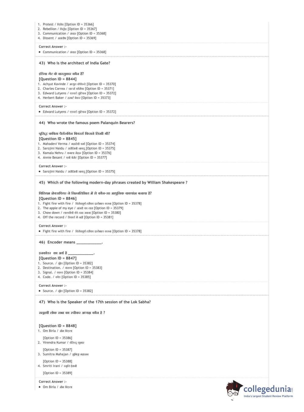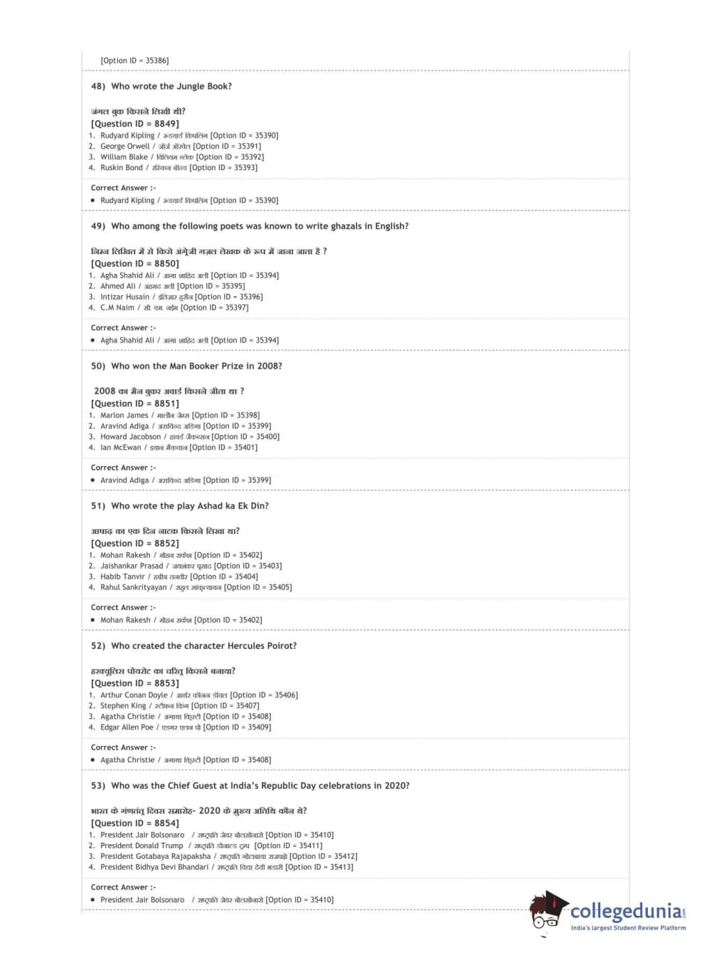 DUET 2020 Masters in Journalism Question paper with answer key pdf conducted on November 9, 2020 in Shift 1 is available for download. The exam was successfully organized by National Testing Agency (NTA). The question paper comprised a total of 100 questions.