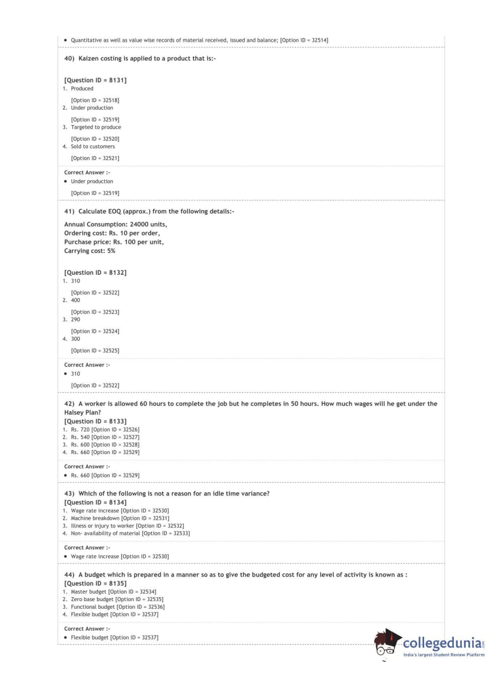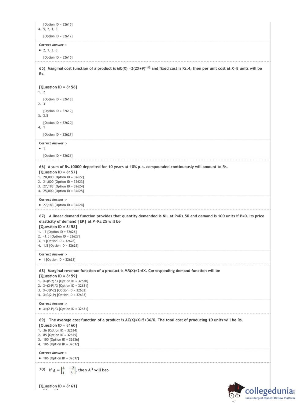 DUET 2020 M.Com. Question Paper with Answer Key PDF Shift 3