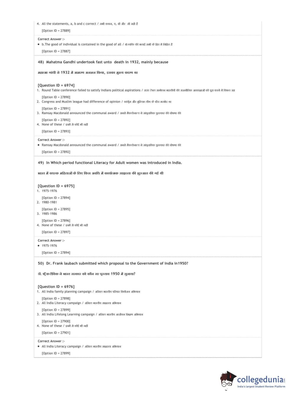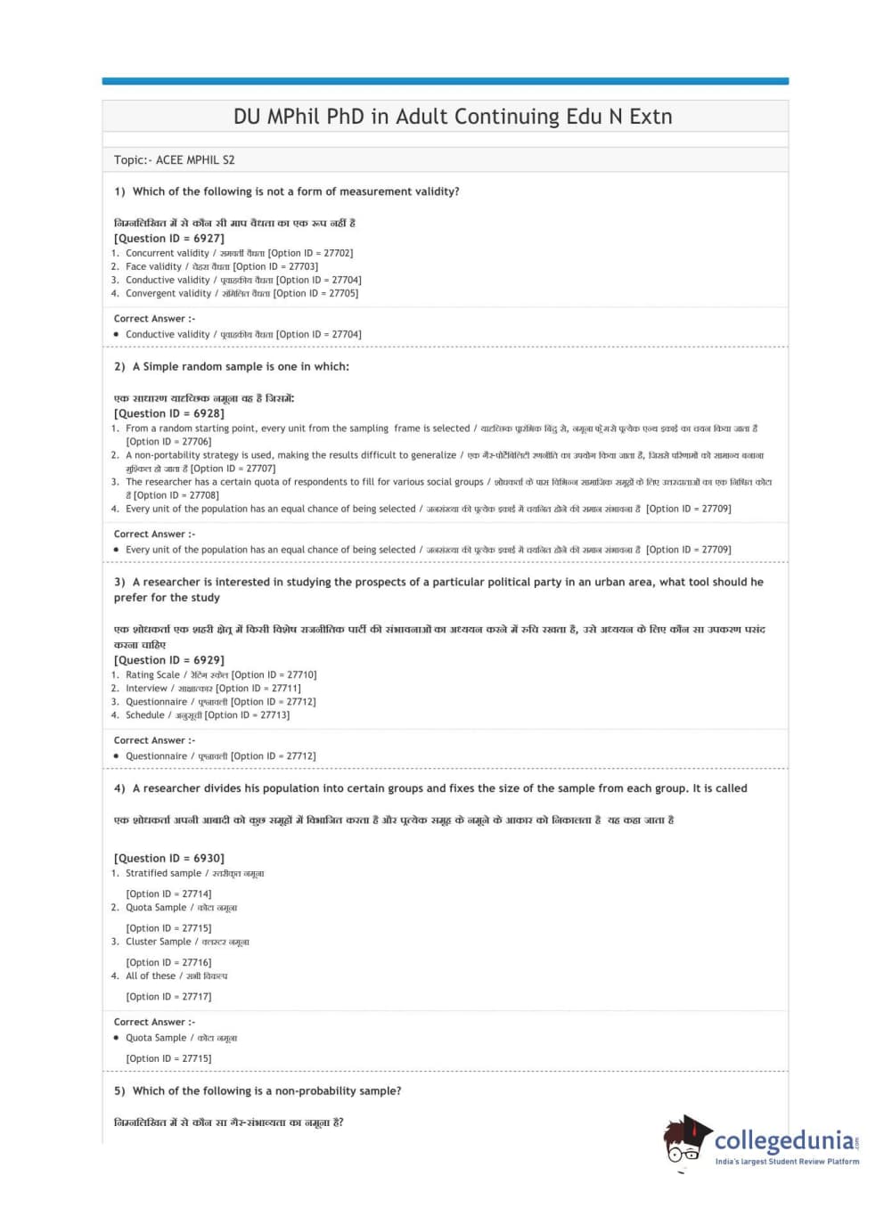 DUET 2020 M.Phil./Ph.D. in Adult Continuing Education & Extension Question paper with answer key pdf conducted on August 9, 2020 in Shift 3 is available for download. The exam was successfully organized by National Testing Agency (NTA). The question paper comprised a total of 50 questions.