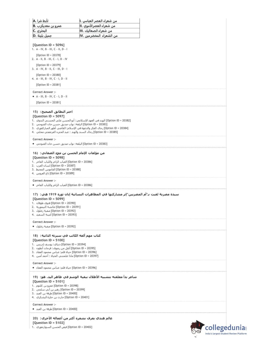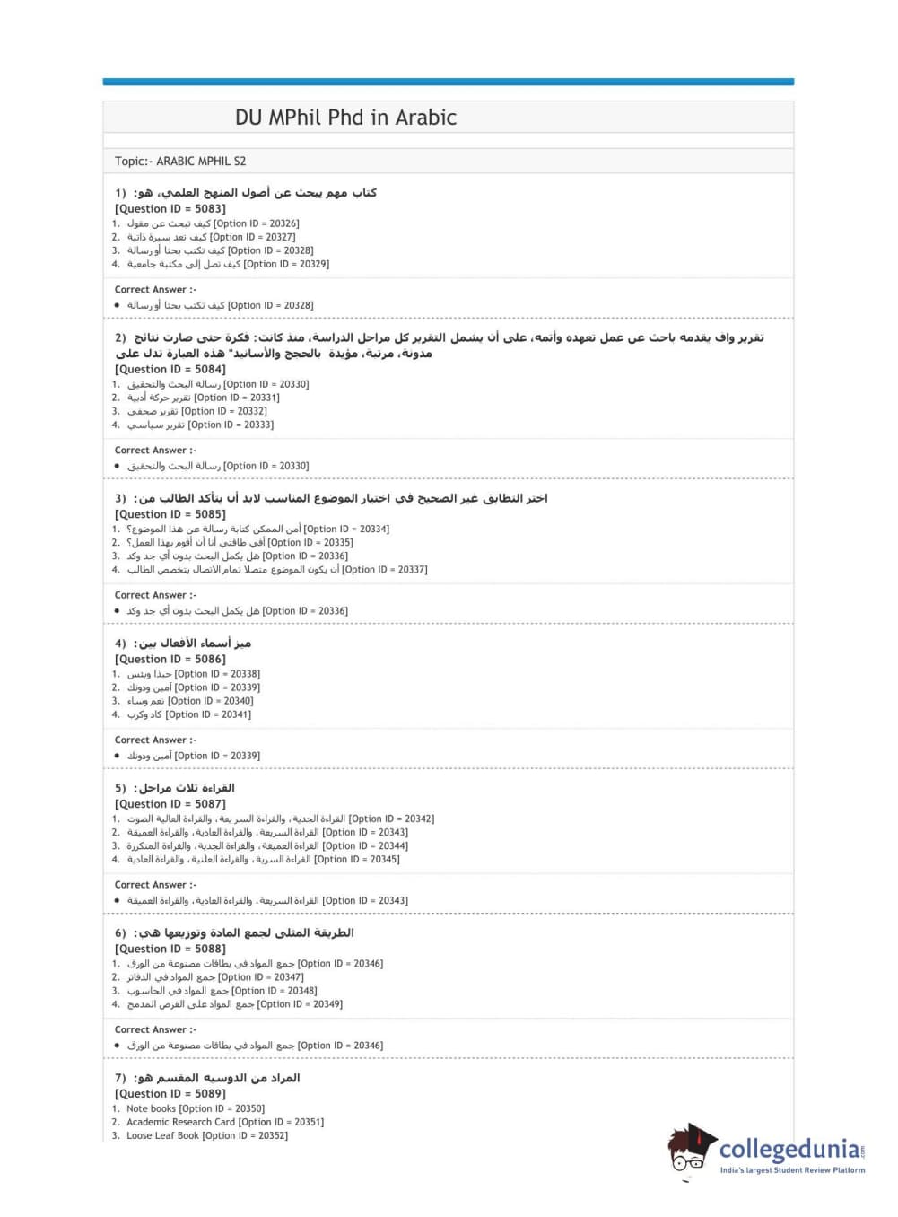 DUET 2020 M.Phil./Ph.D. in Arabic Question Paper with Answer Key PDF Shift 3