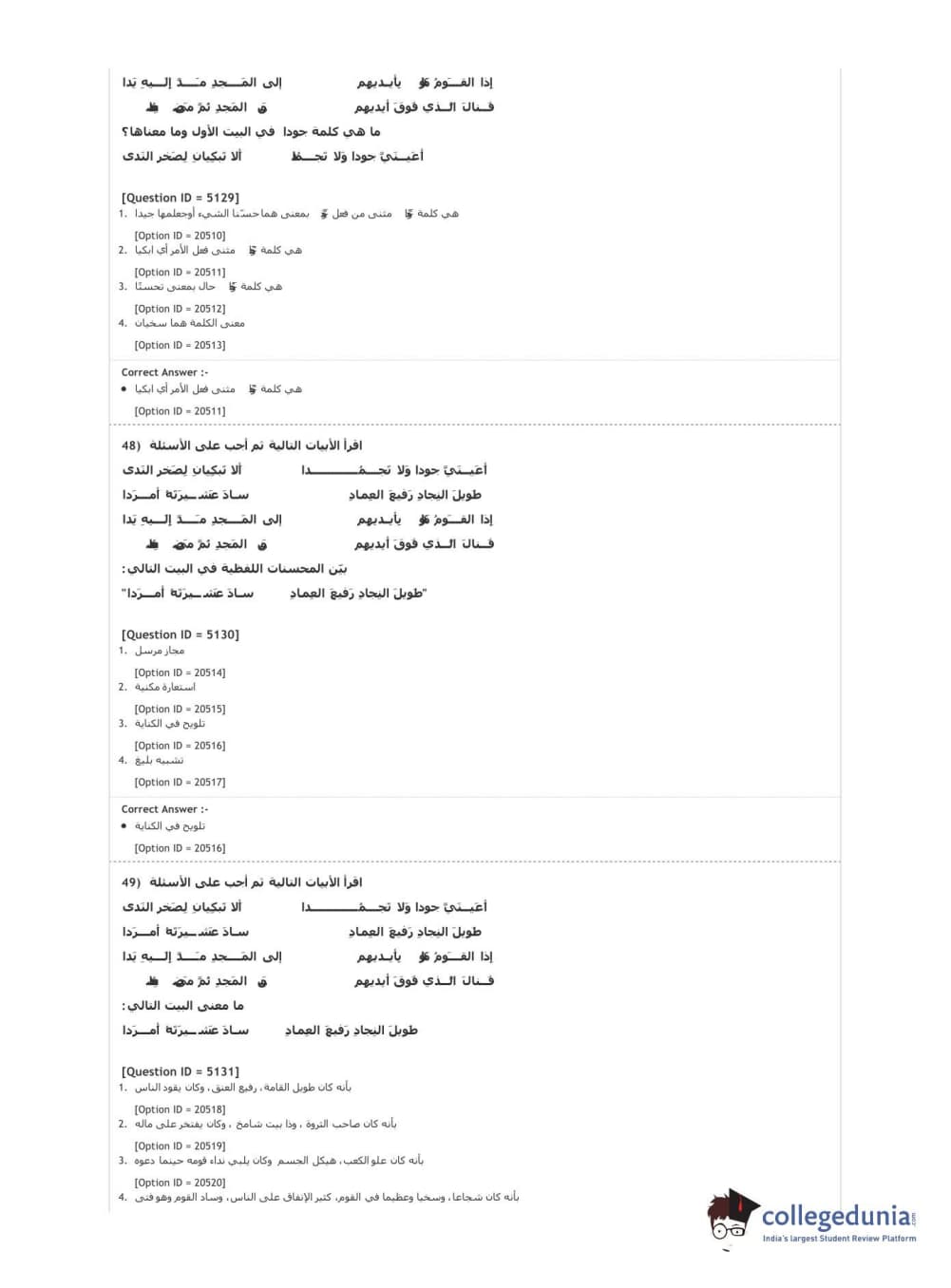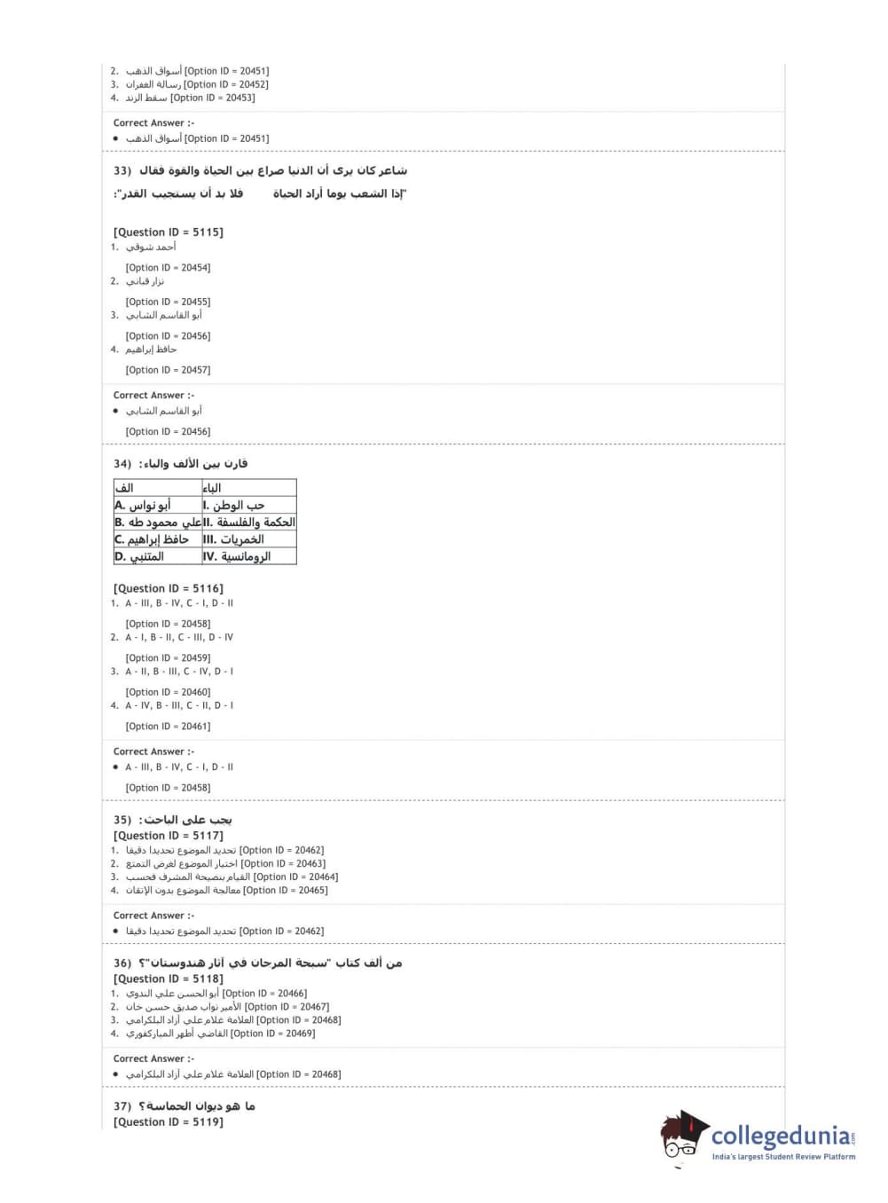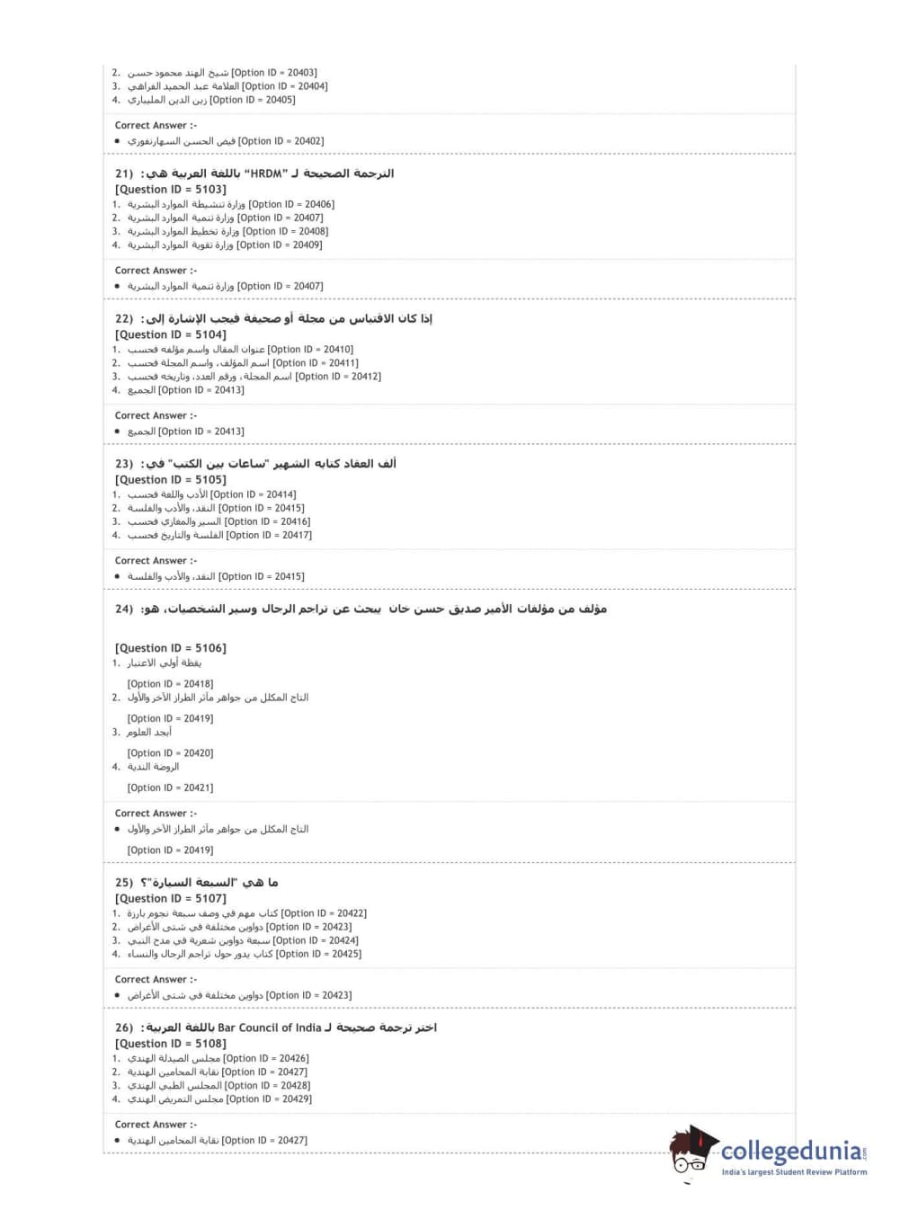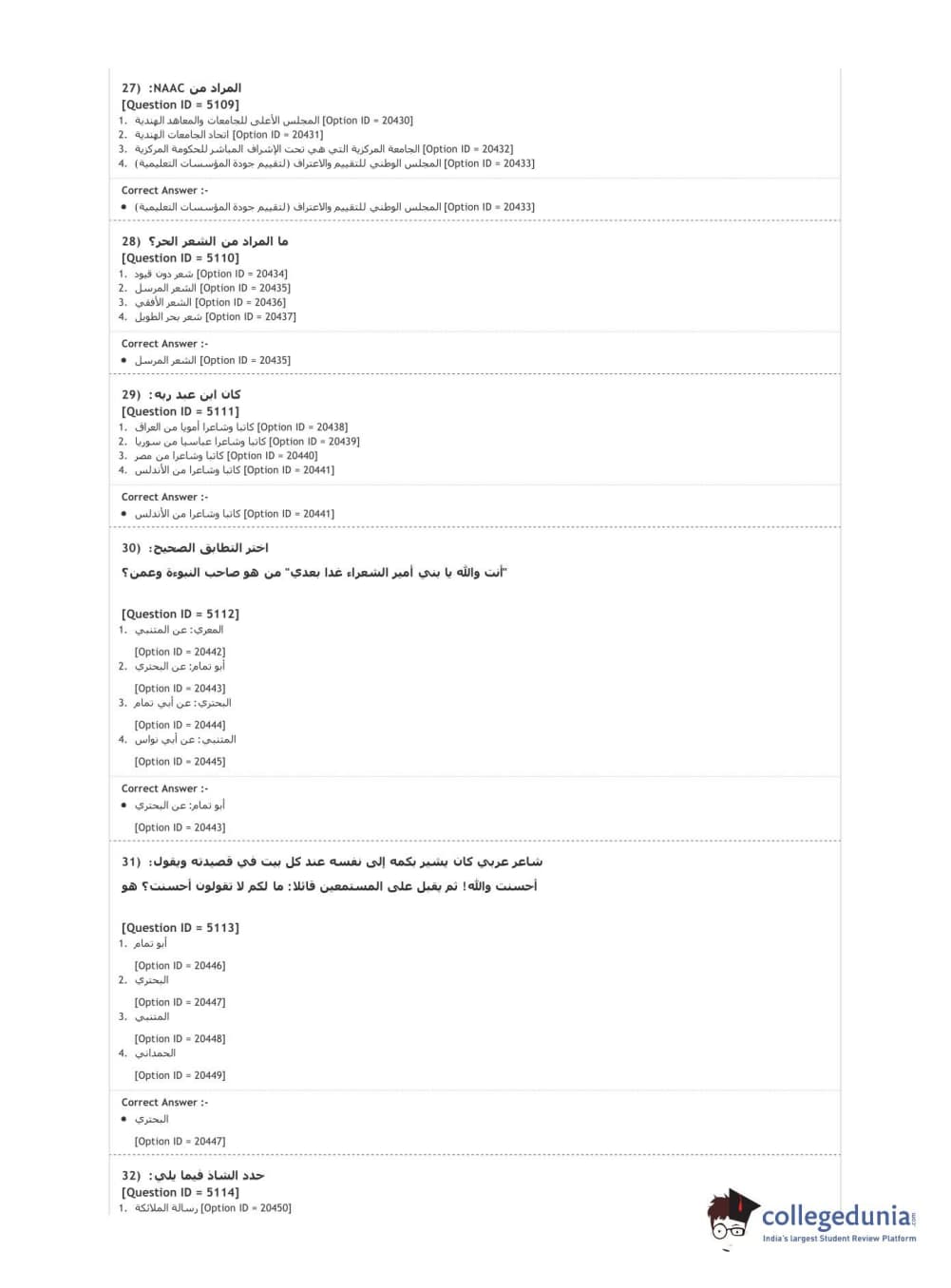 DUET 2020 M.Phil./Ph.D. in Arabic Question paper with answer key pdf conducted on October 9, 2020 in Shift 3 is available for download. The exam was successfully organized by National Testing Agency (NTA). The question paper comprised a total of 50 questions.