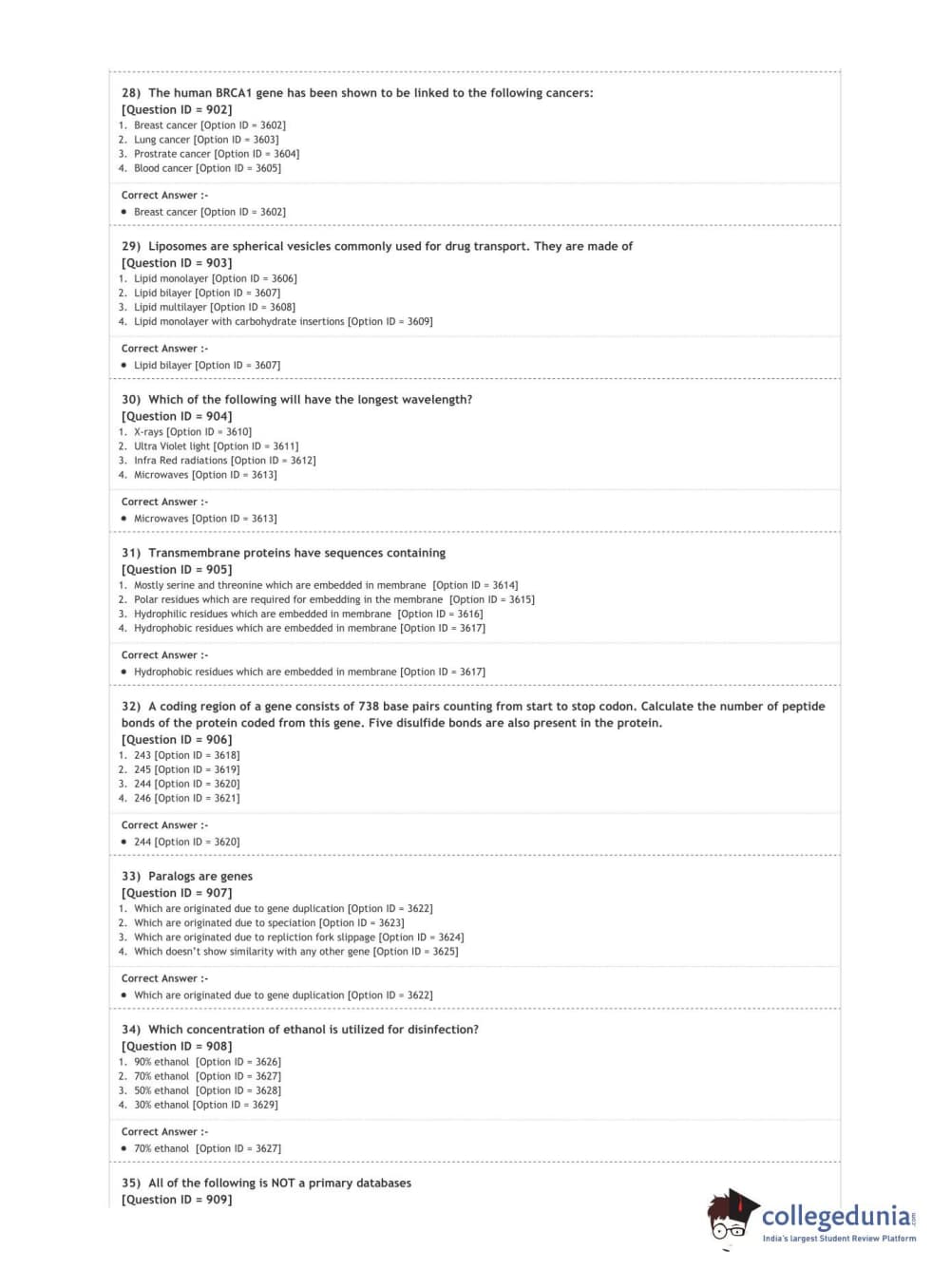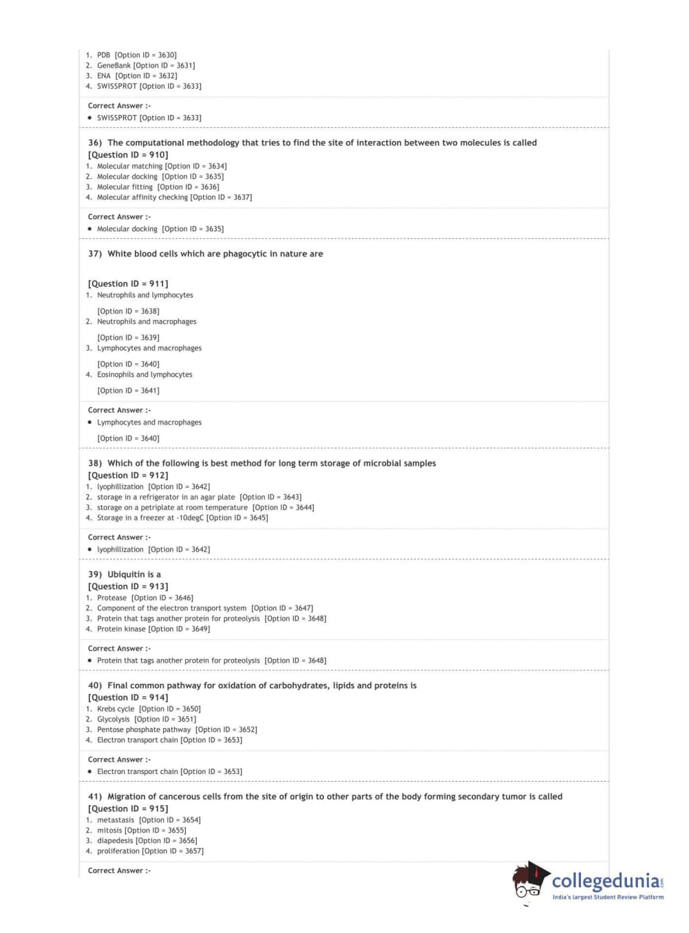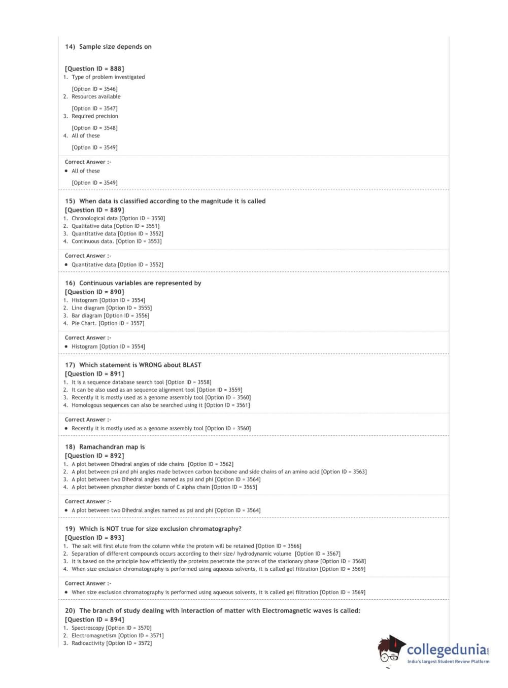 DUET 2020 M.Phil./Ph.D. in Bio-Physics Question Paper with Answer Key PDF Shift 1
