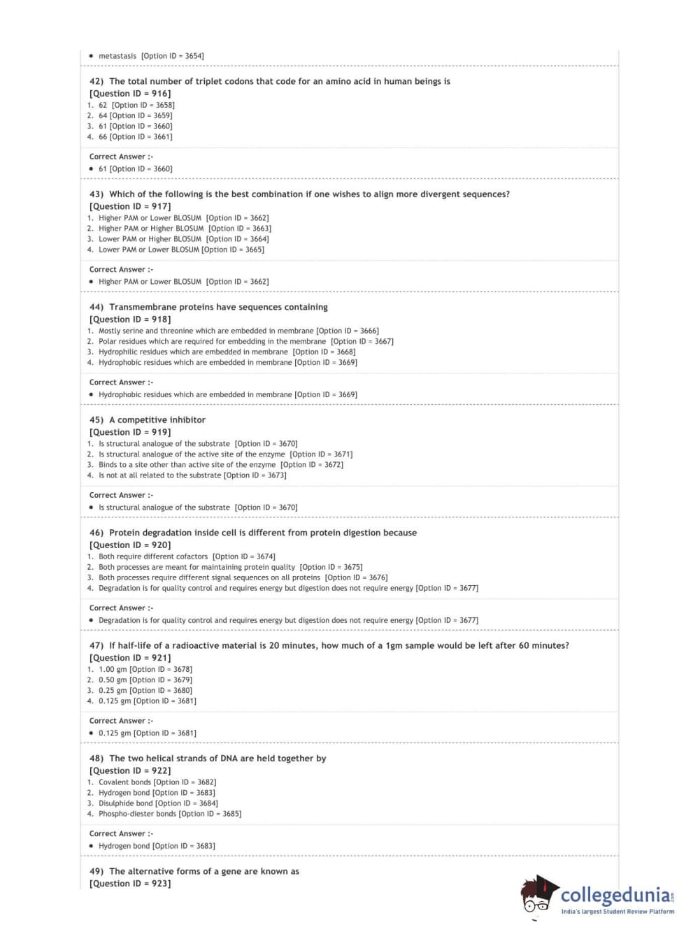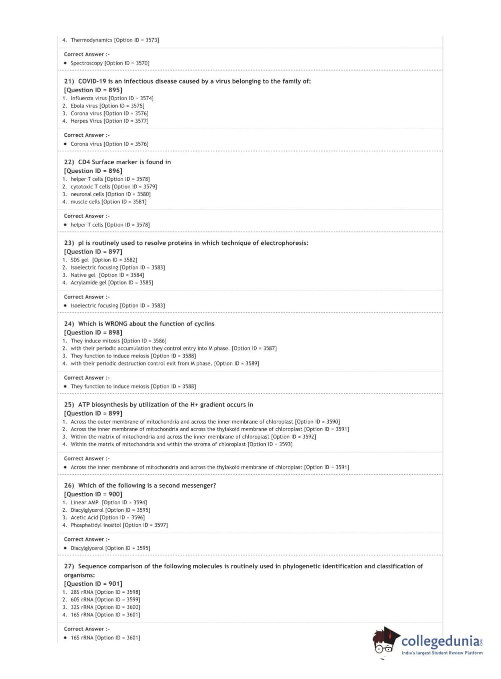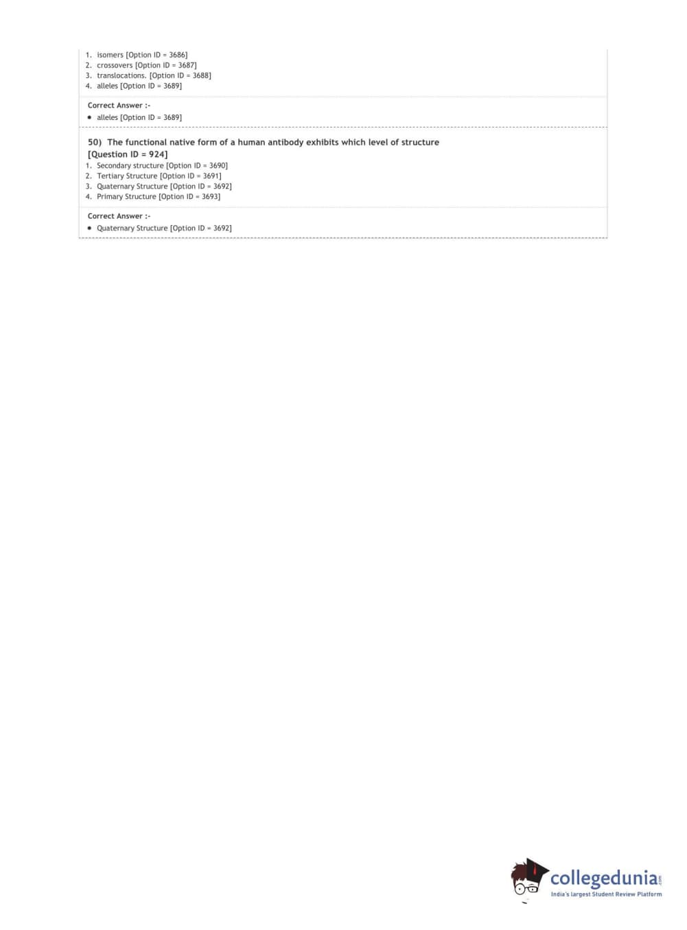 DUET 2020 M.Phil./Ph.D. in Bio-Physics Question Paper with Answer Key PDF Shift 1