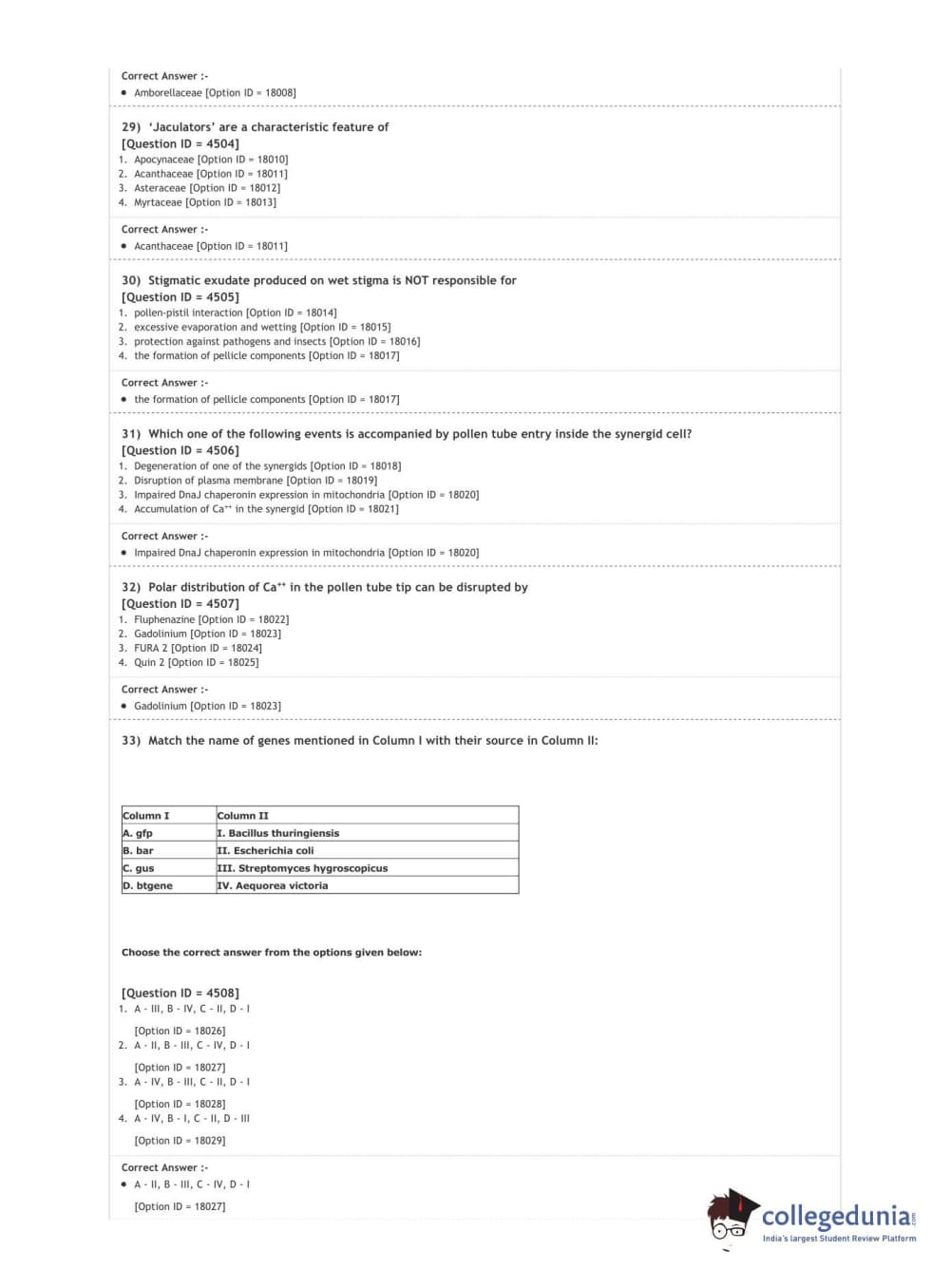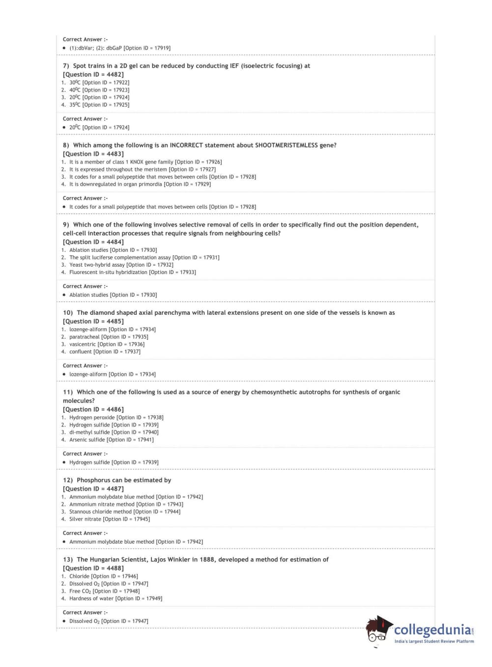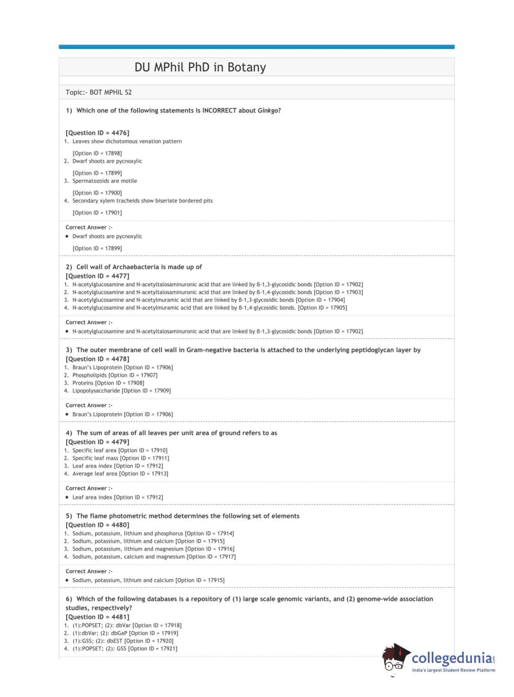 DUET 2020 M.Phil./Ph.D. in Botany Question Paper with Answer Key PDF Shift 1