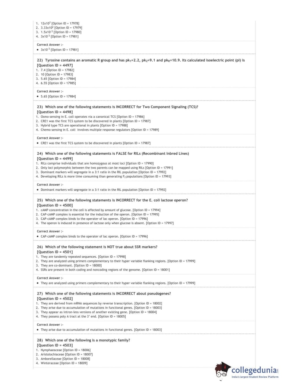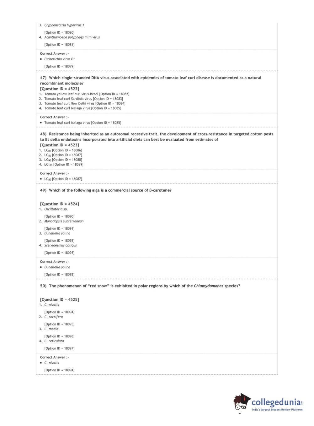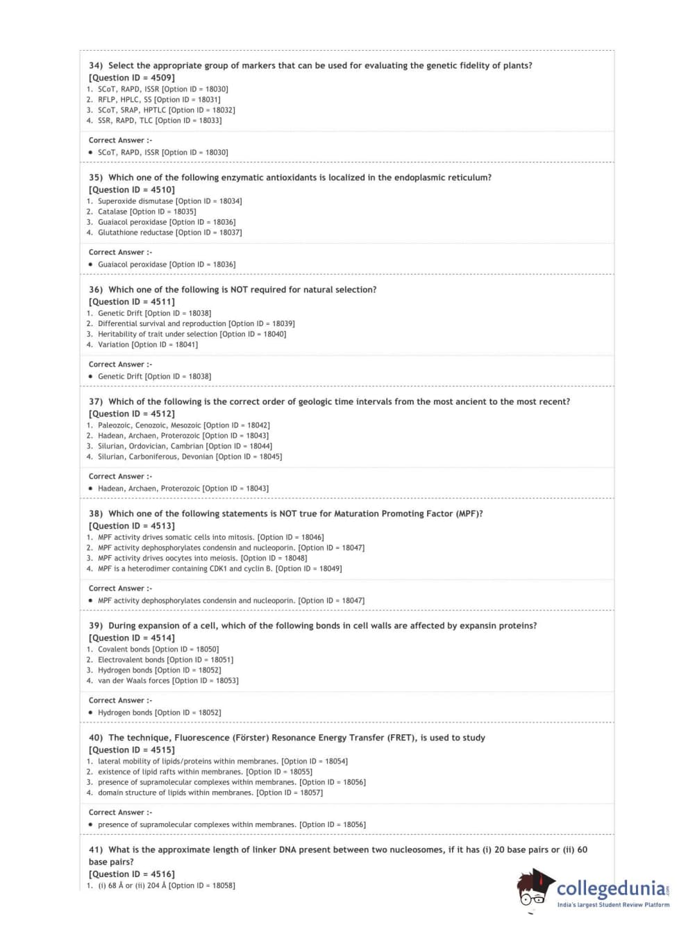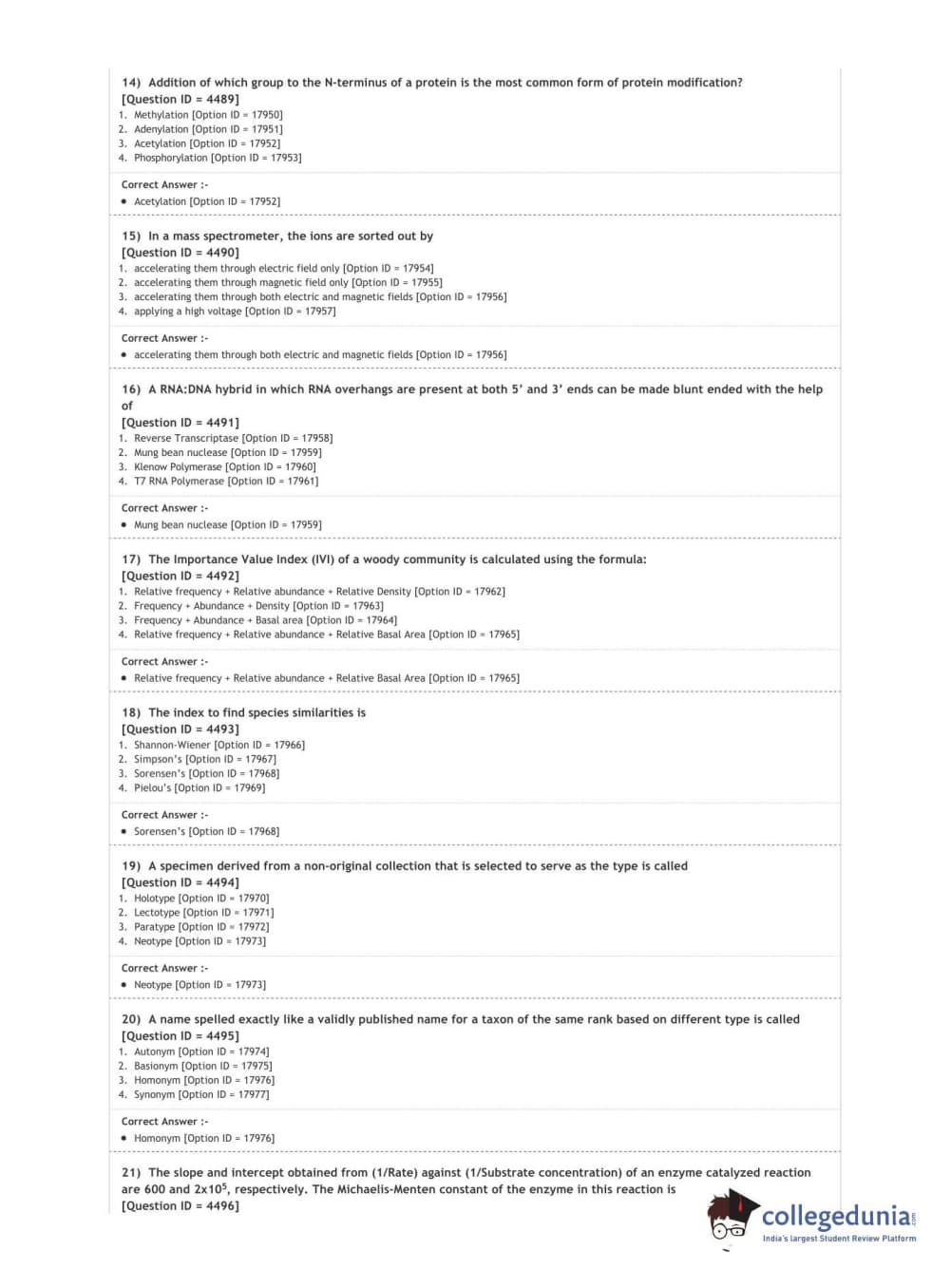 DUET 2020 M.Phil./Ph.D. in Botany Question Paper with Answer Key PDF Shift 1