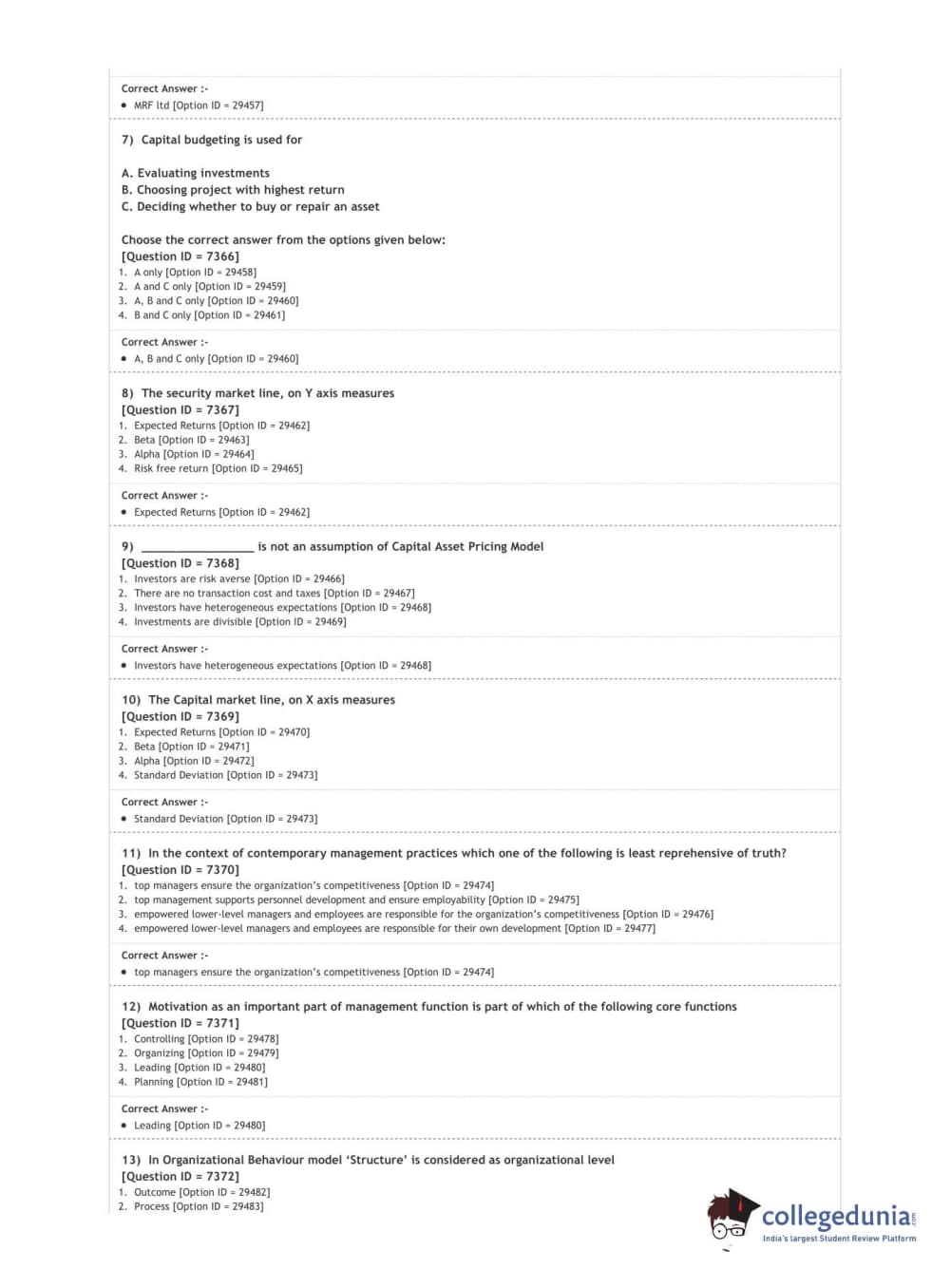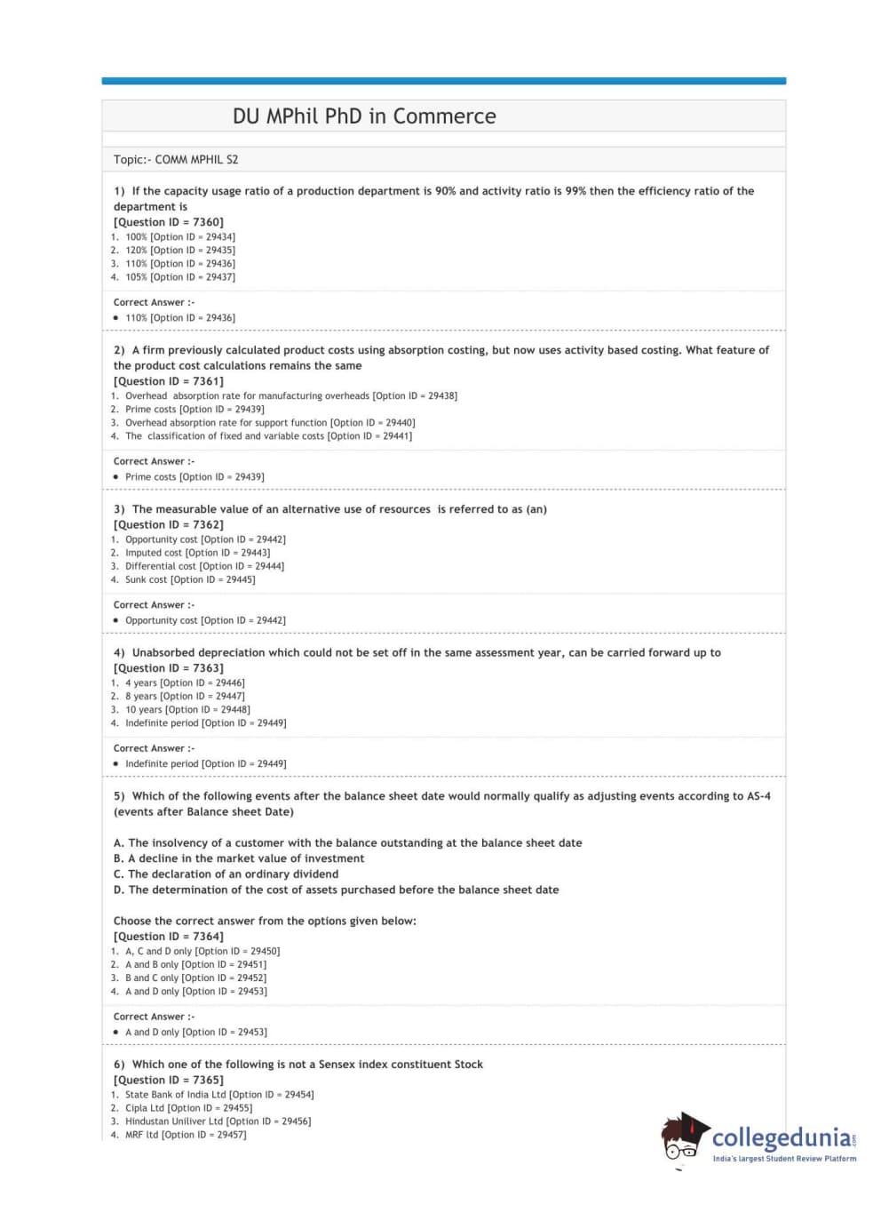 DUET 2020 M.Phil./Ph.D. in Commerce Question Paper with Answer Key PDF Shift 3