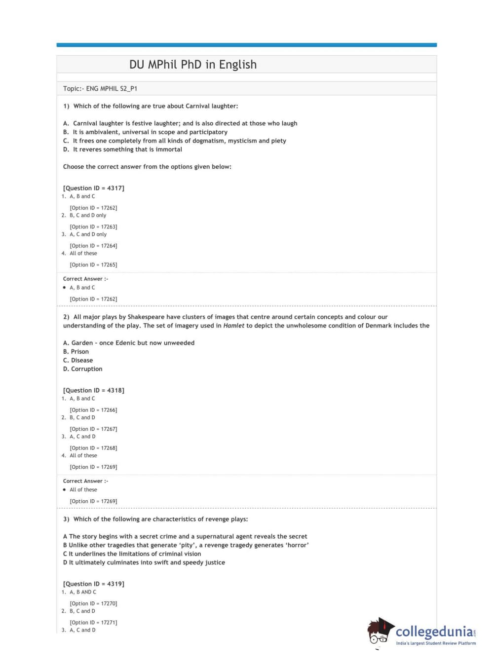 DUET 2020 M.Phil./Ph.D. in English Question paper with answer key pdf conducted on June 9, 2020 in Shift 1 is available for download. The exam was successfully organized by National Testing Agency (NTA). The question paper comprised a total of 50 questions.