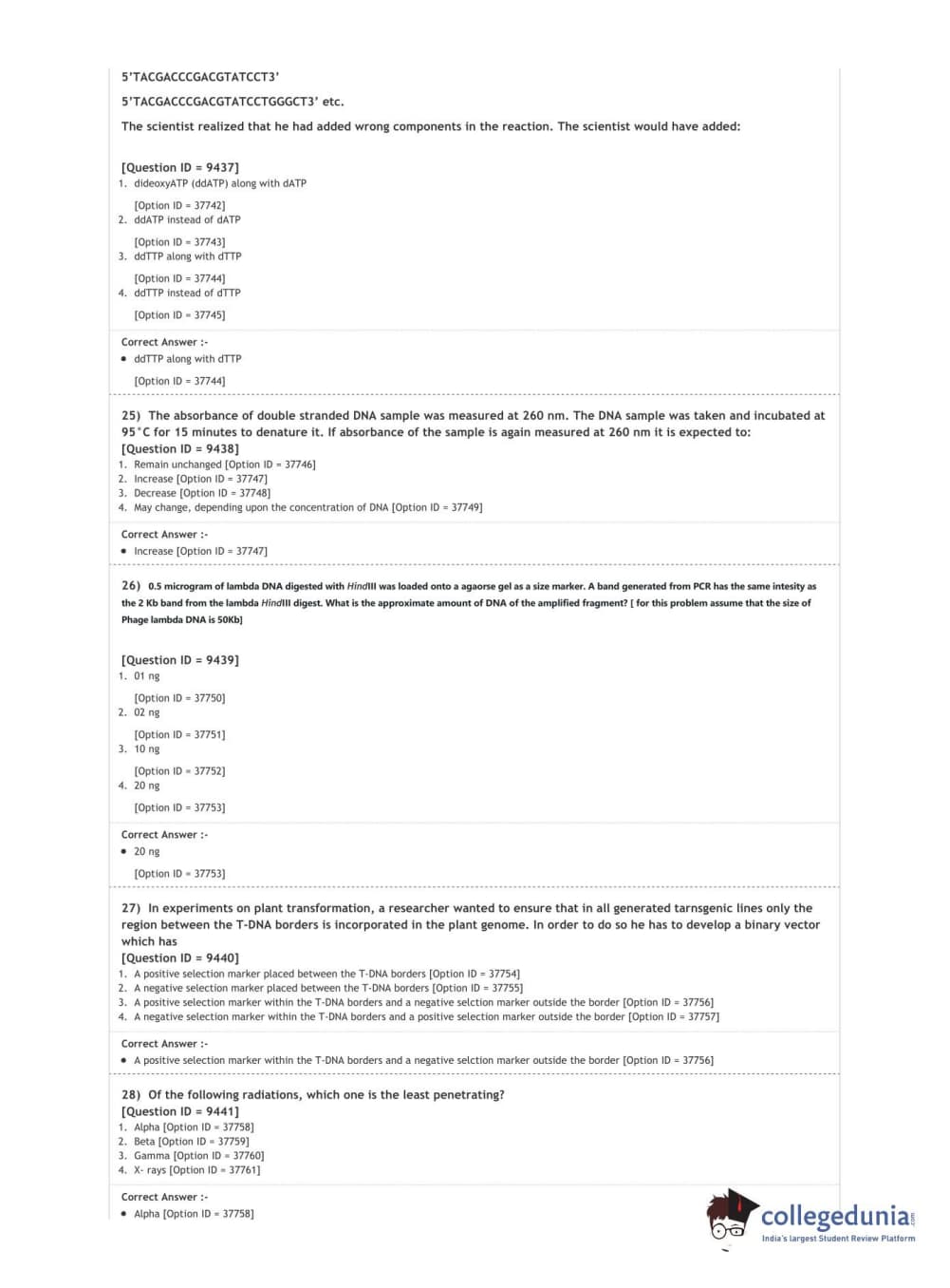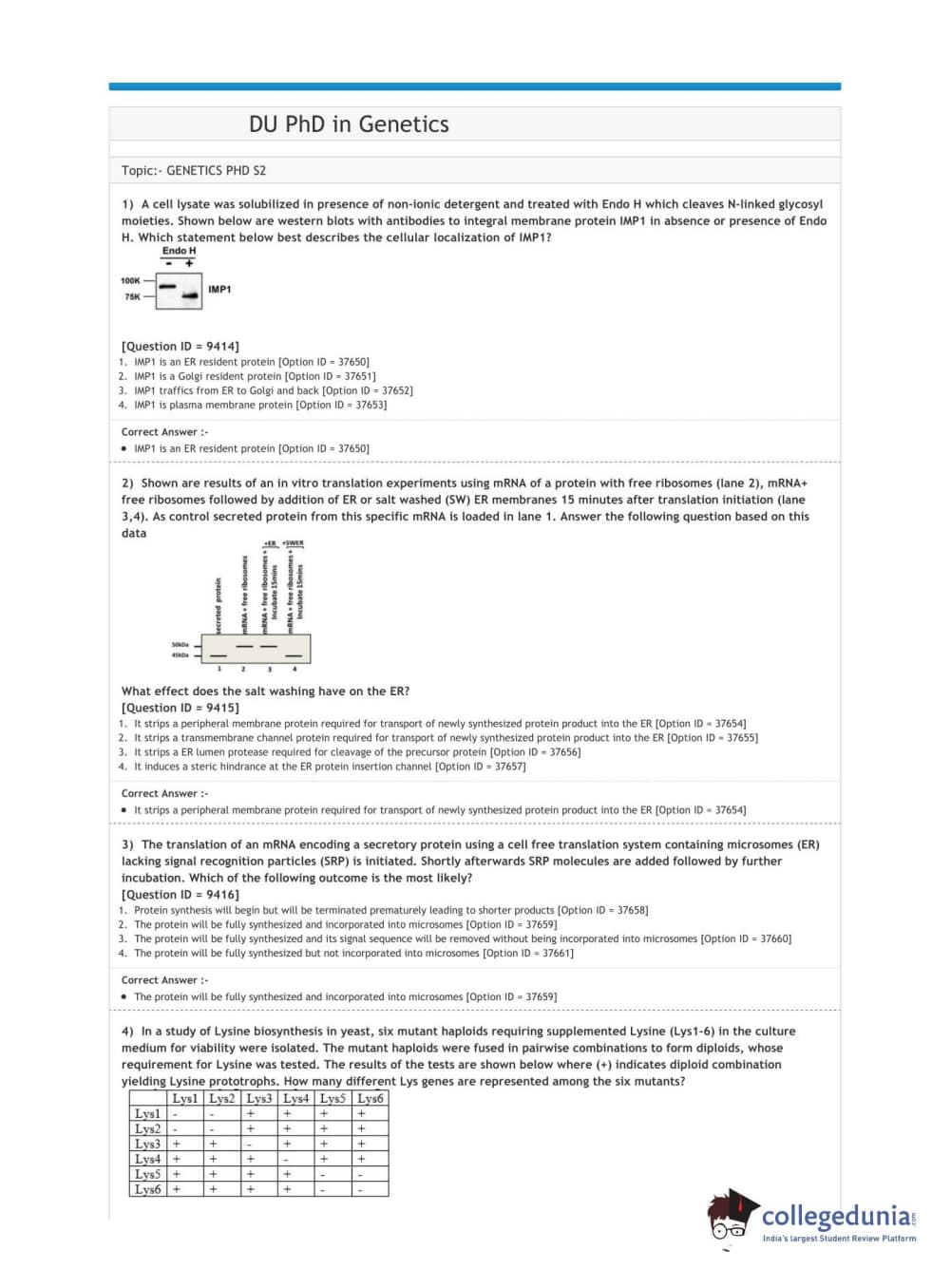 DUET 2020 M.Phil./Ph.D. in Genetics Question paper with answer key pdf conducted on June 9, 2020 in Shift 3 is available for download. The exam was successfully organized by National Testing Agency (NTA). The question paper comprised a total of 50 questions.