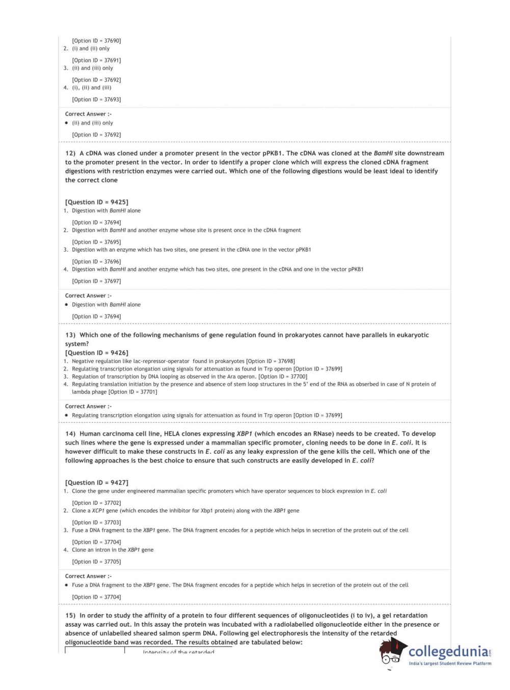 DUET 2020 M.Phil./Ph.D. in Genetics Question Paper with Answer Key PDF Shift 3