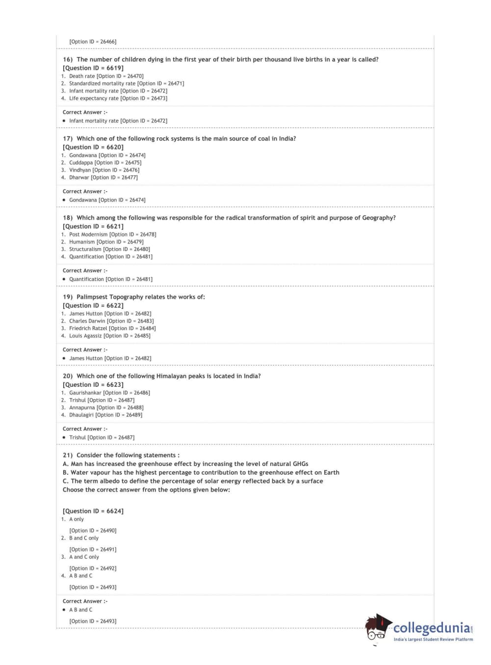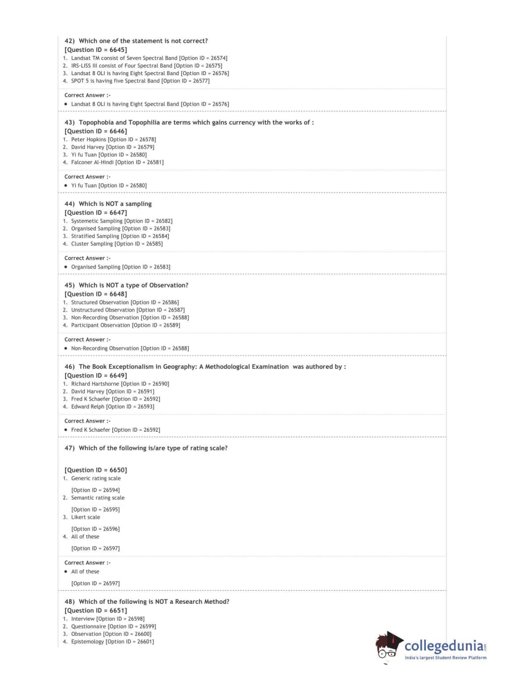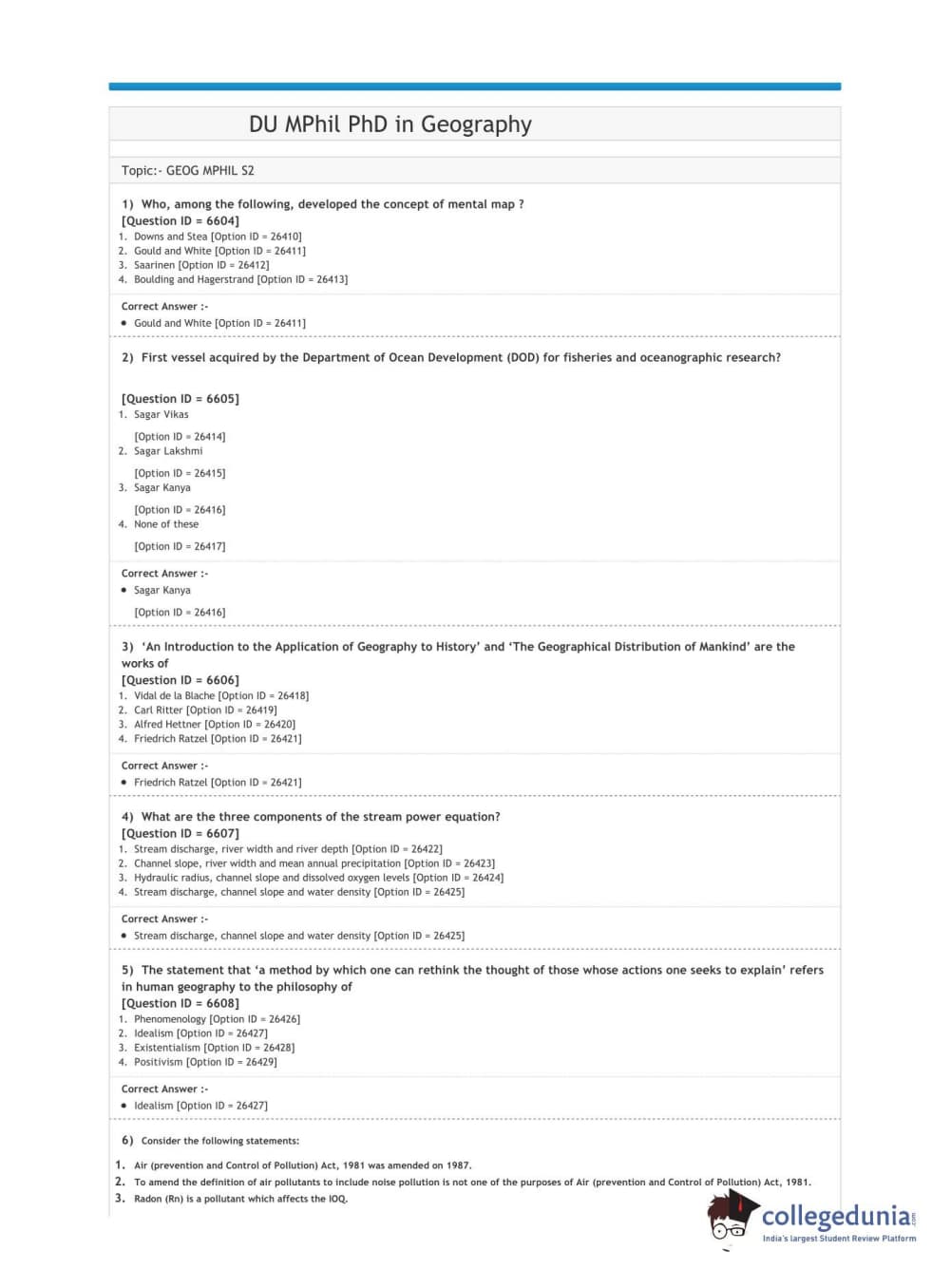DUET 2020 M.Phil./Ph.D. in Geography Question Paper with Answer Key PDF Shift 2
