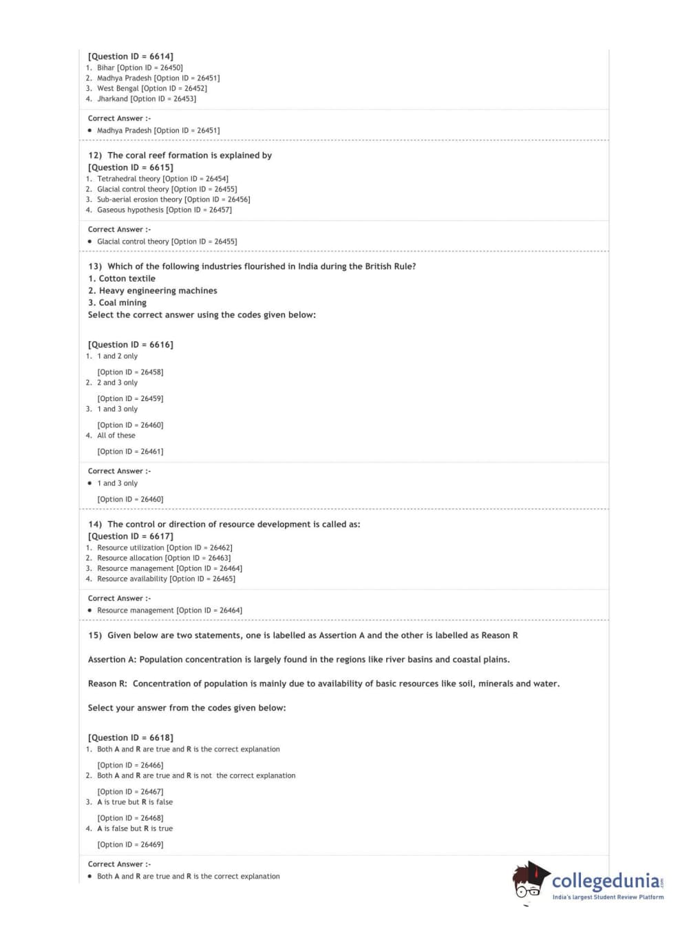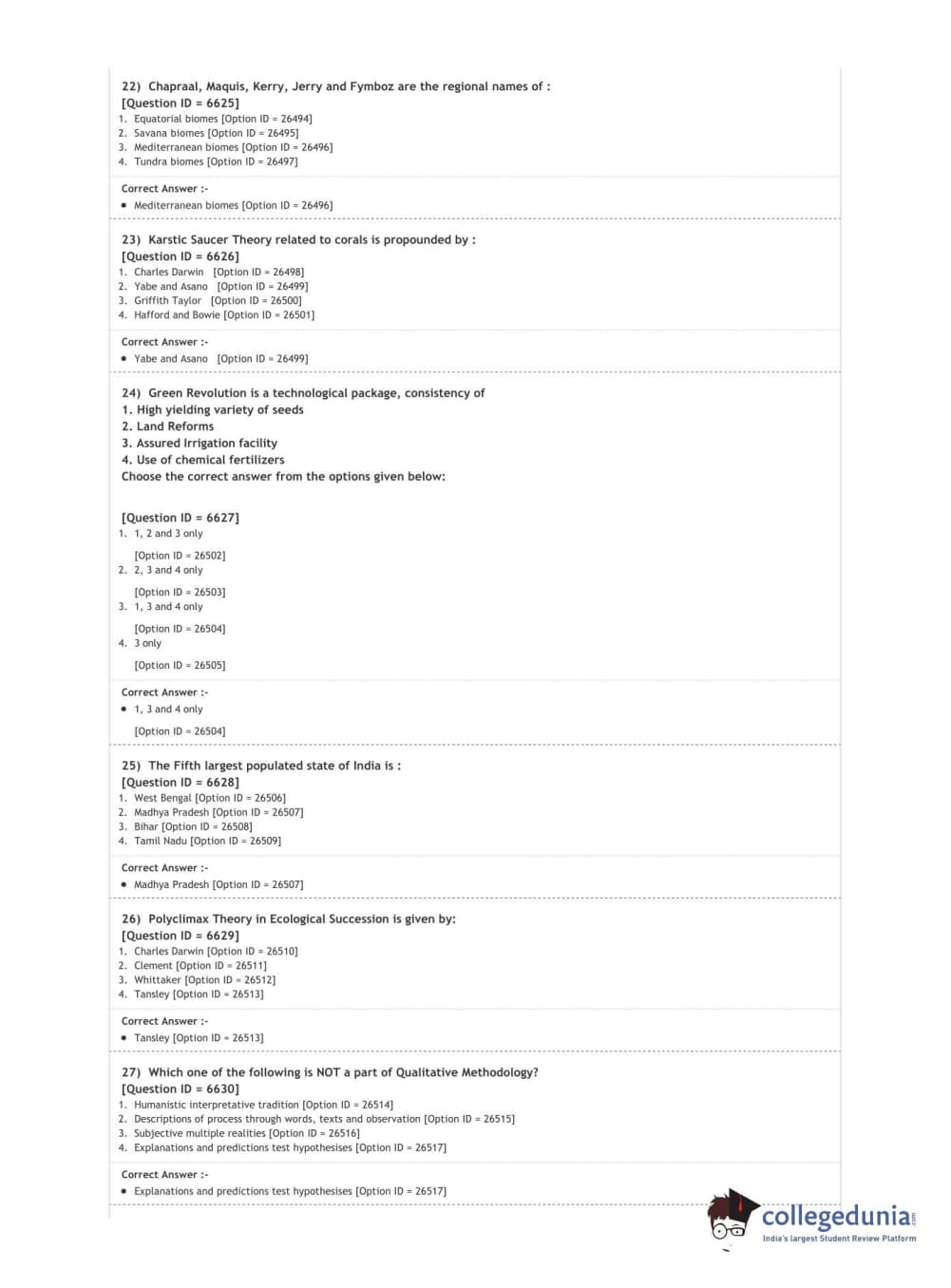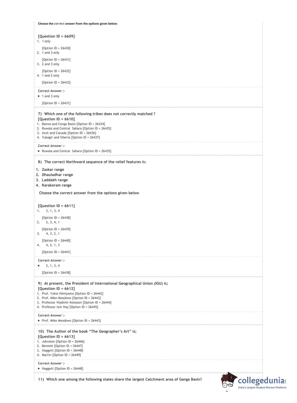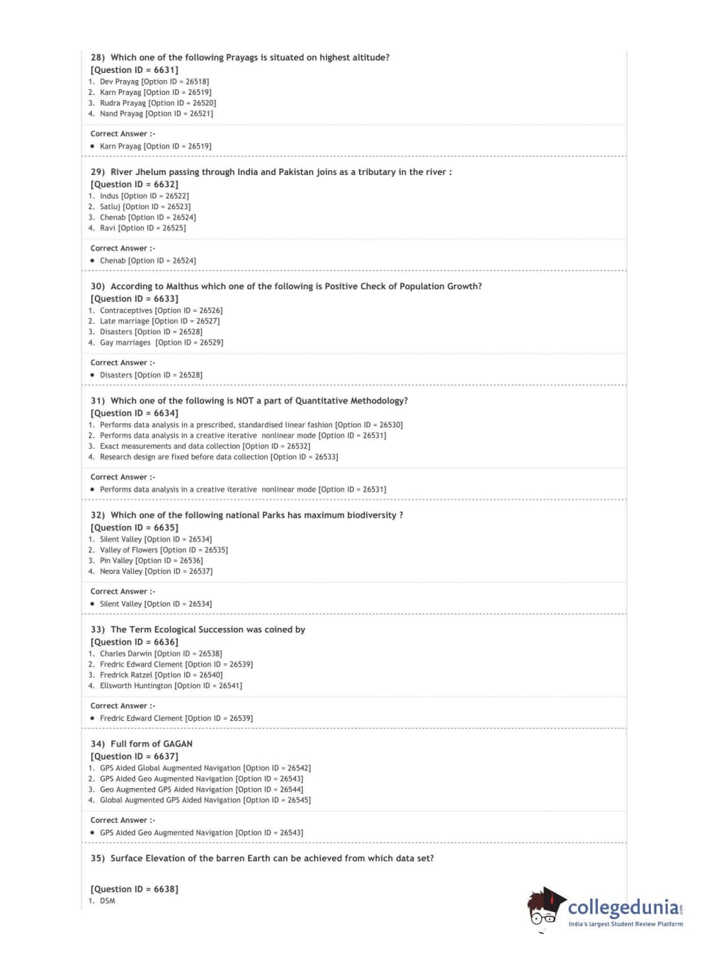 DUET 2020 M.Phil./Ph.D. in Geography Question Paper with Answer Key PDF Shift 2