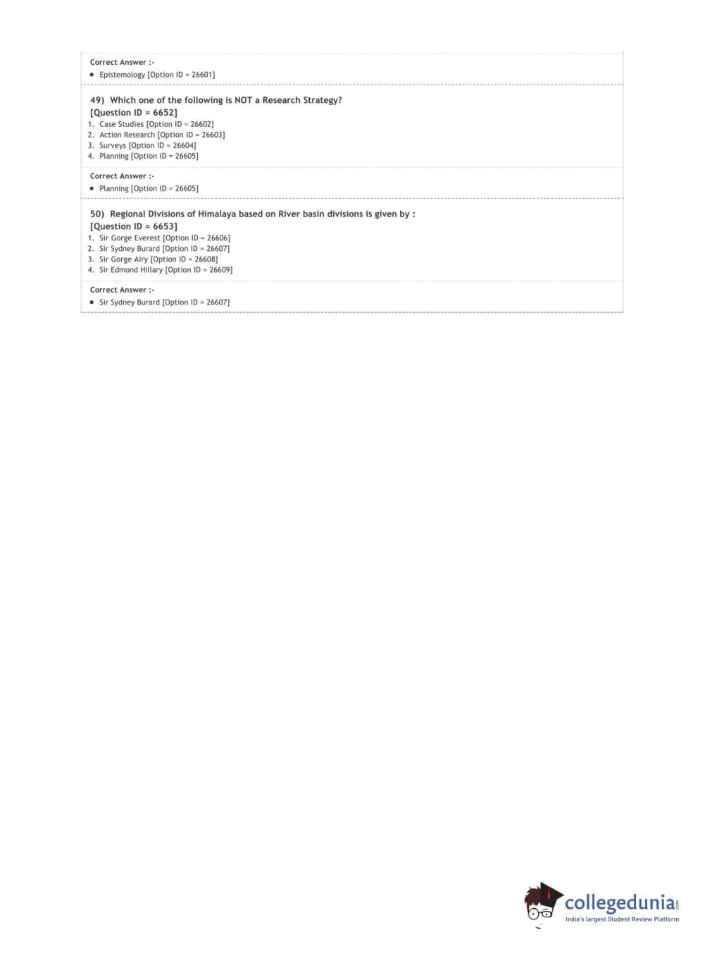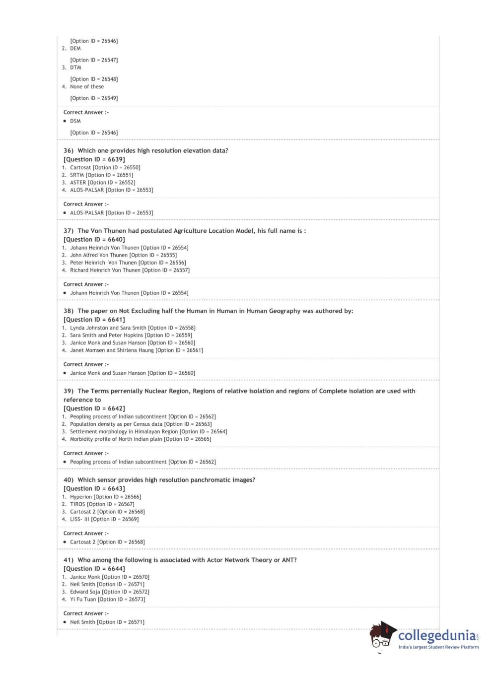 DUET 2020 M.Phil./Ph.D. in Geography Question paper with answer key pdf conducted on August 9, 2020 in Shift 2 is available for download. The exam was successfully organized by National Testing Agency (NTA). The question paper comprised a total of 50 questions.