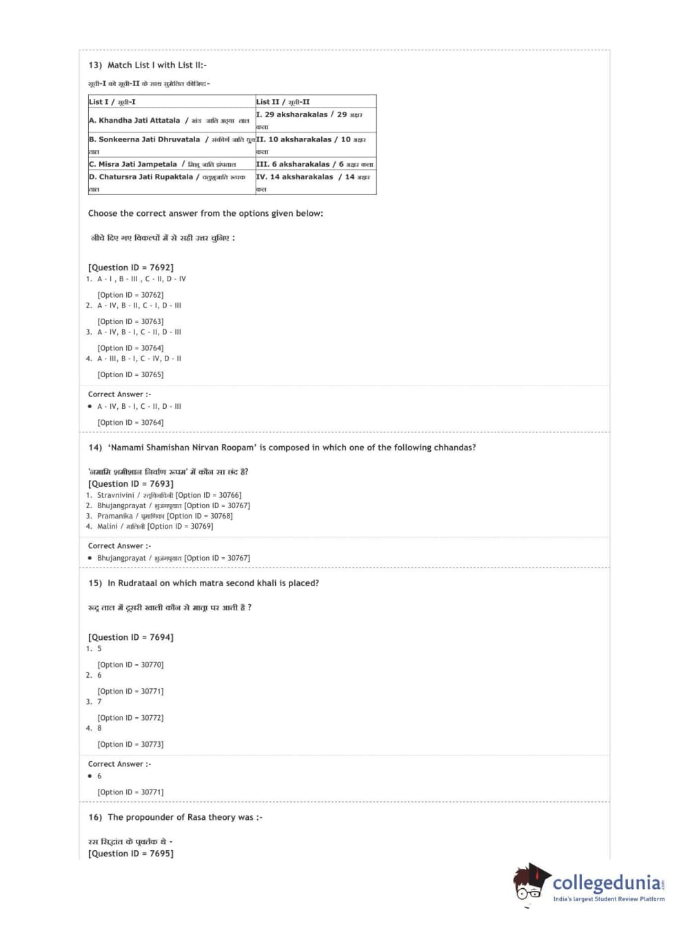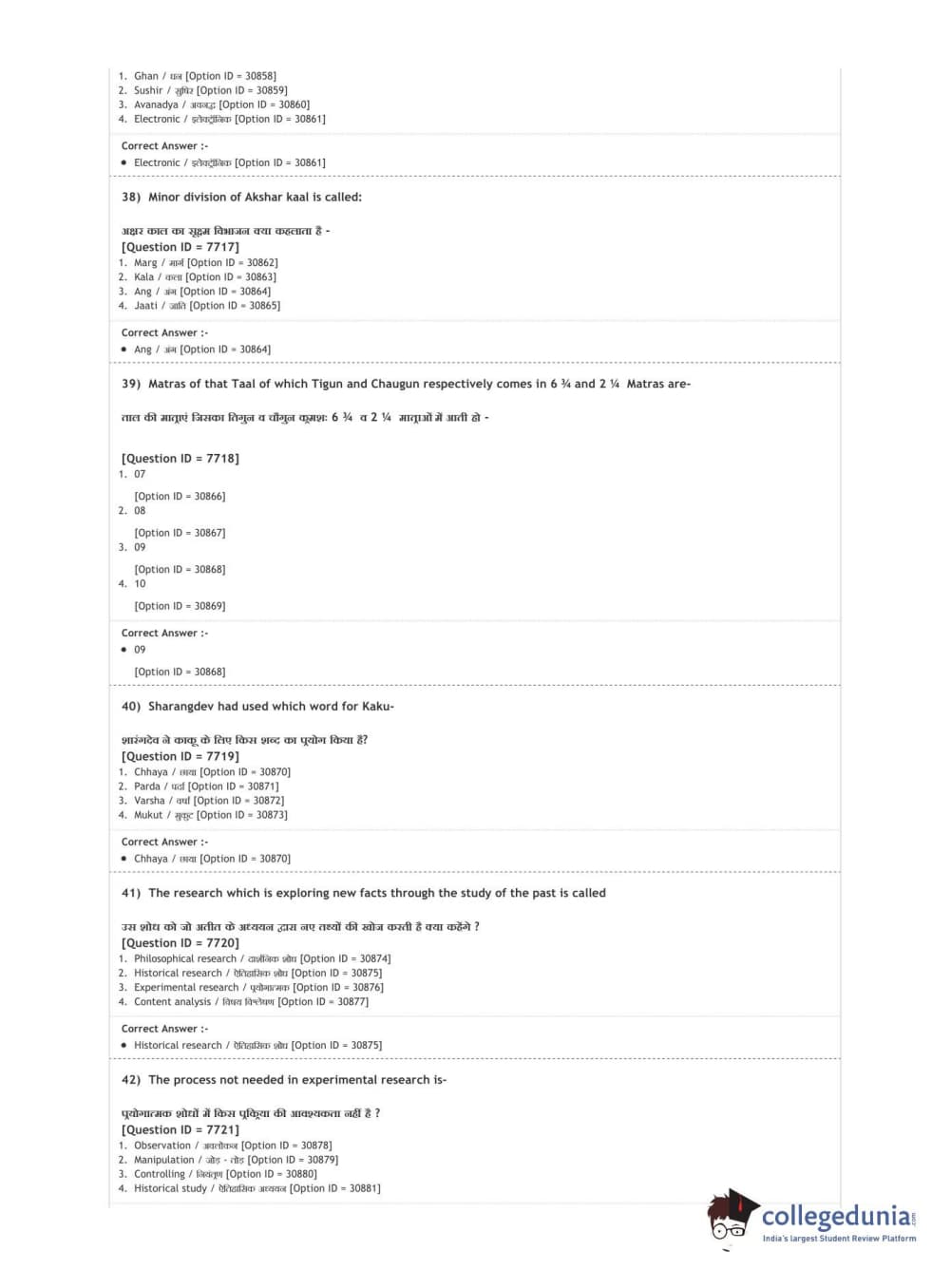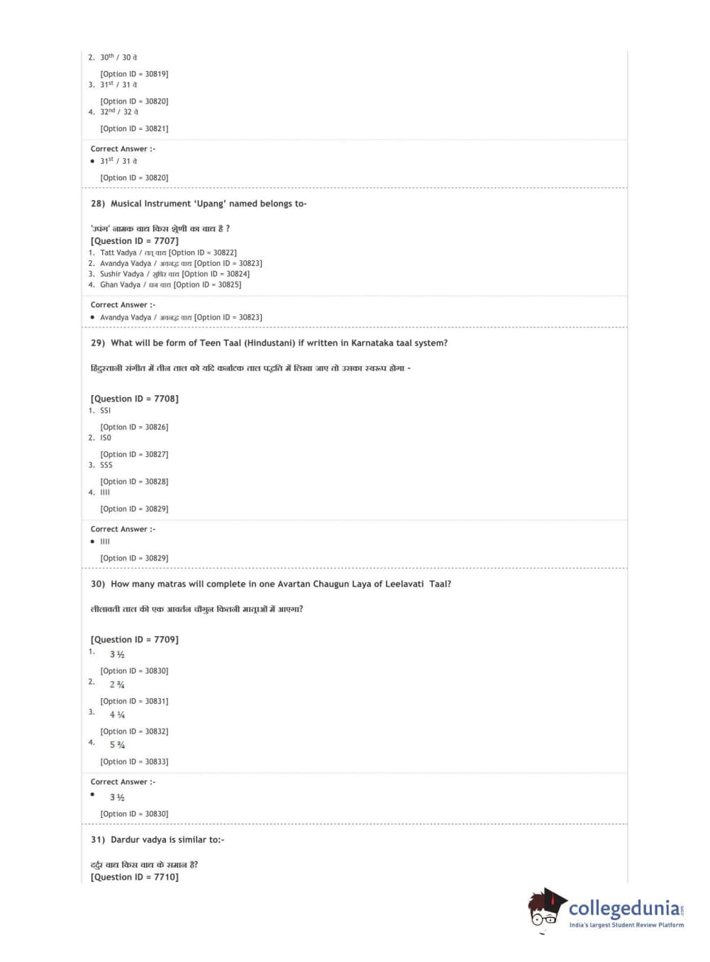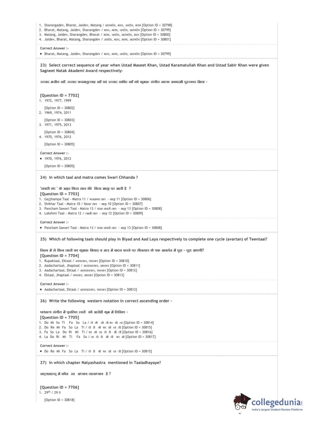 DUET 2020 M.Phil./Ph.D. in Hindustani Percussion Music Question Paper with Answer Key PDF Shift 2