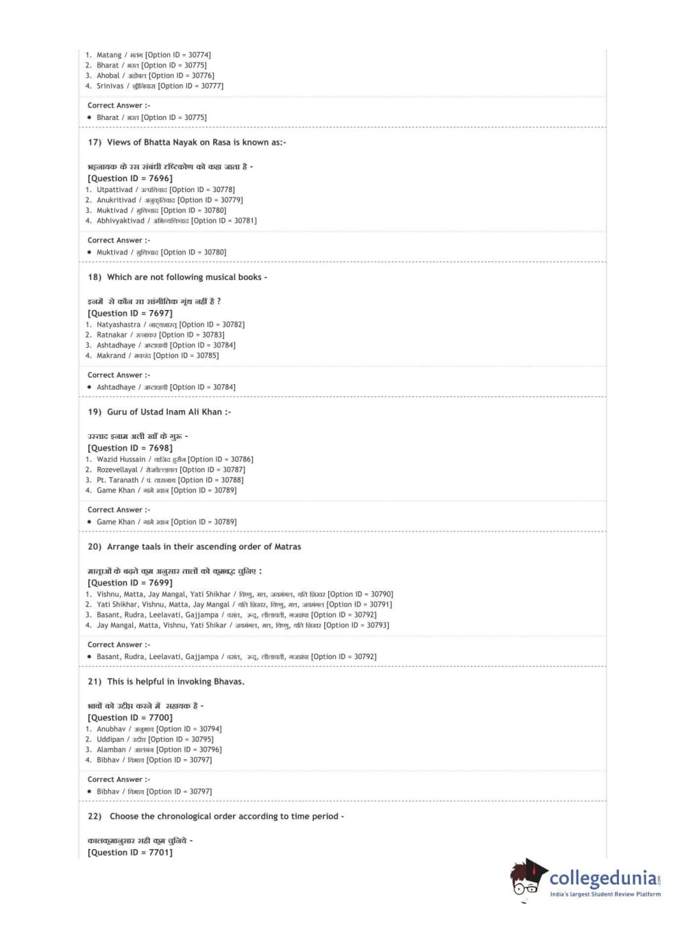 DUET 2020 M.Phil./Ph.D. in Hindustani Percussion Music Question paper with answer key pdf conducted on August 9, 2020 in Shift 2 is available for download. The exam was successfully organized by National Testing Agency (NTA). The question paper comprised a total of 50 questions.