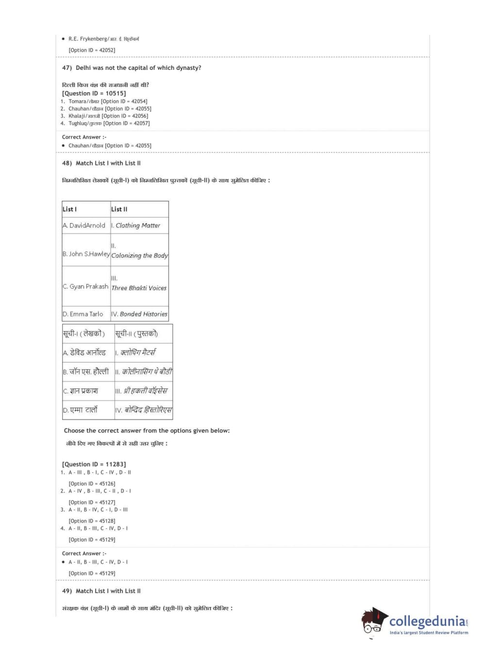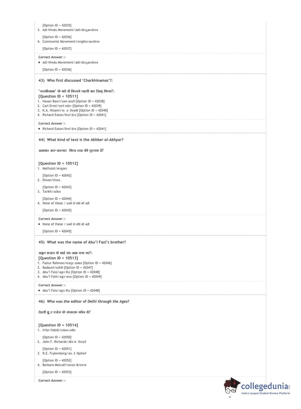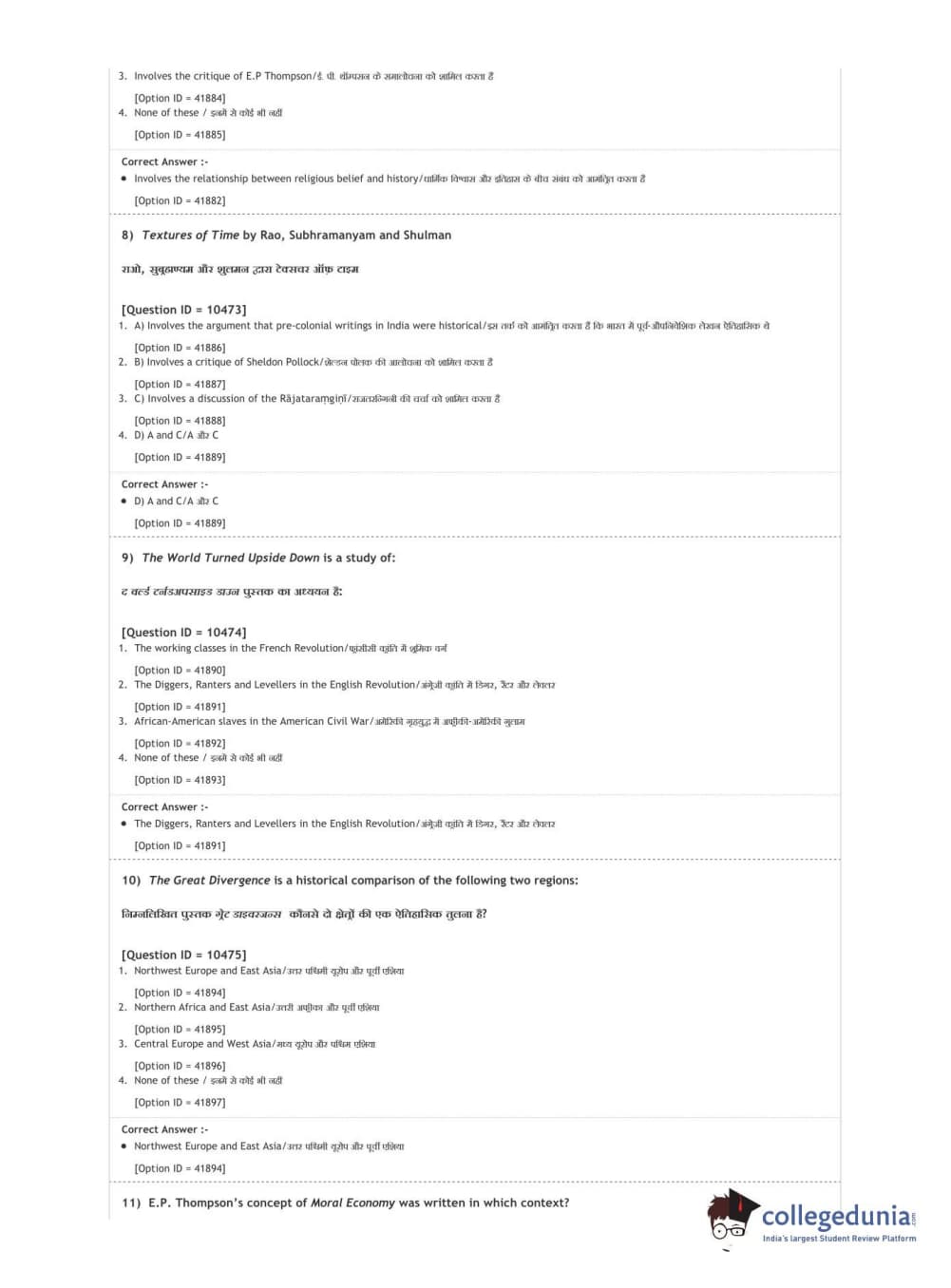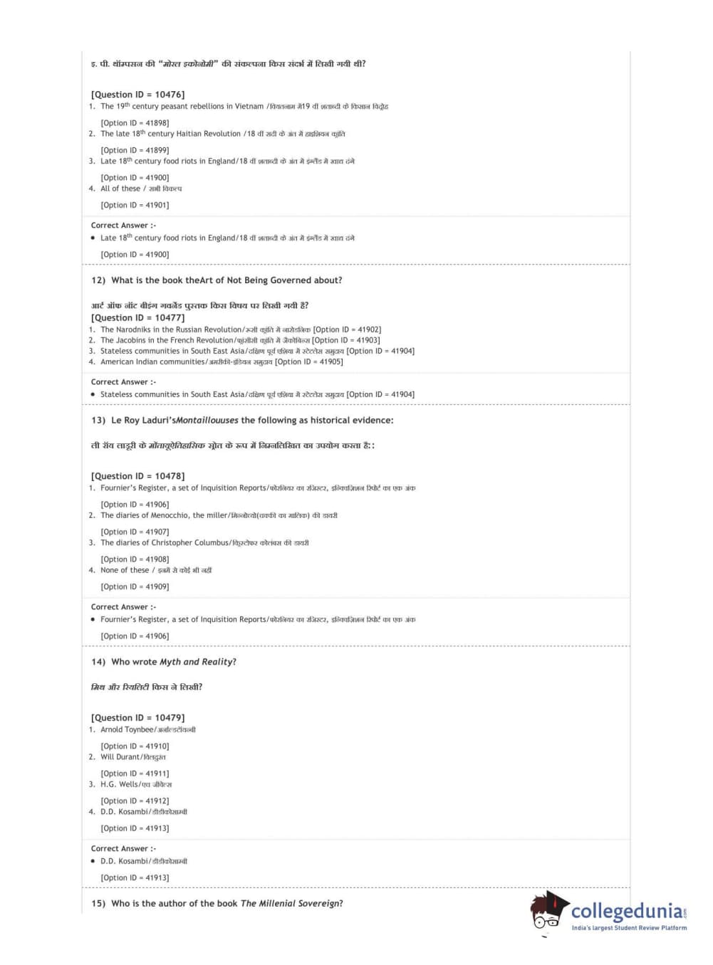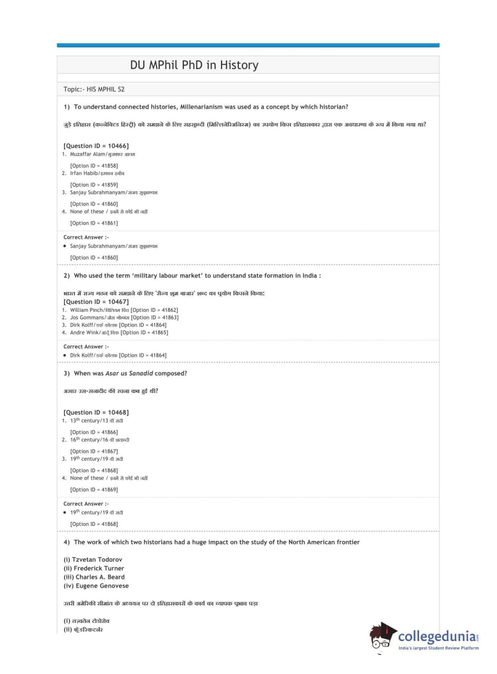 DUET 2020 M.Phil./Ph.D. in History Question Paper with Answer Key PDF Shift 2